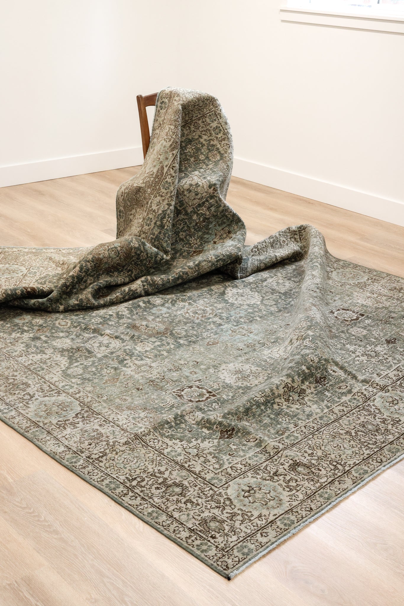 This rug has been professionally cleaned. Spot clean using the blotting technique, using a damp cloth. Take to a professional cleaner if the rug requires a deeper clean.