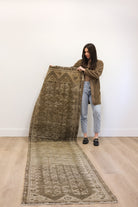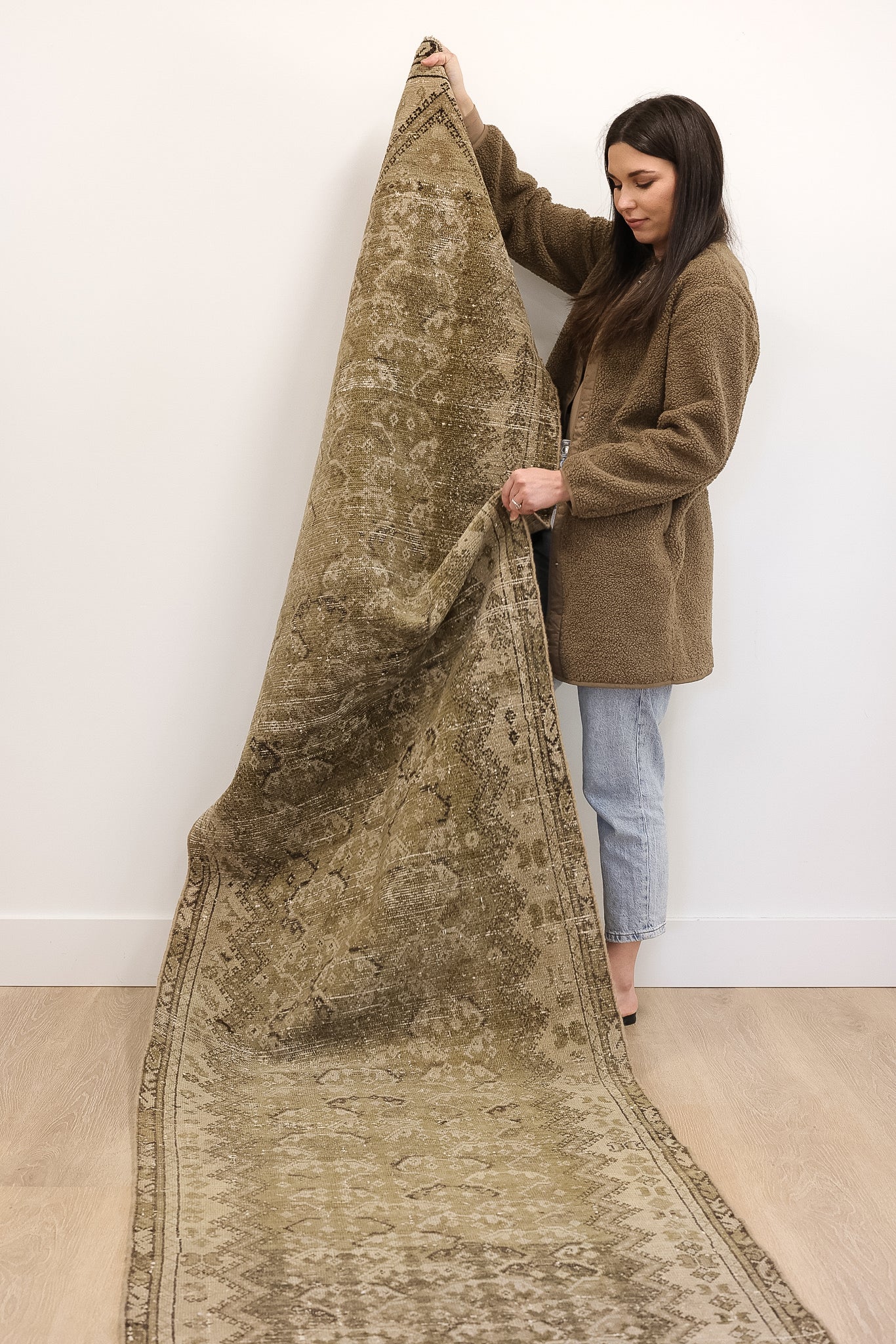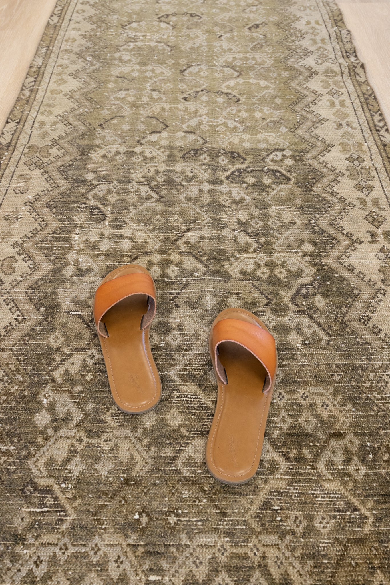 Because of the nature of this item, there may be slight imperfections in its wear, shape, dimensions, and color. Our rugs have been repaired over the years using various techniques. There might be evidence of these repairs through texture, look and feel. This is all part of the rich history and story of each artistic piece. These markings are not considered defective.