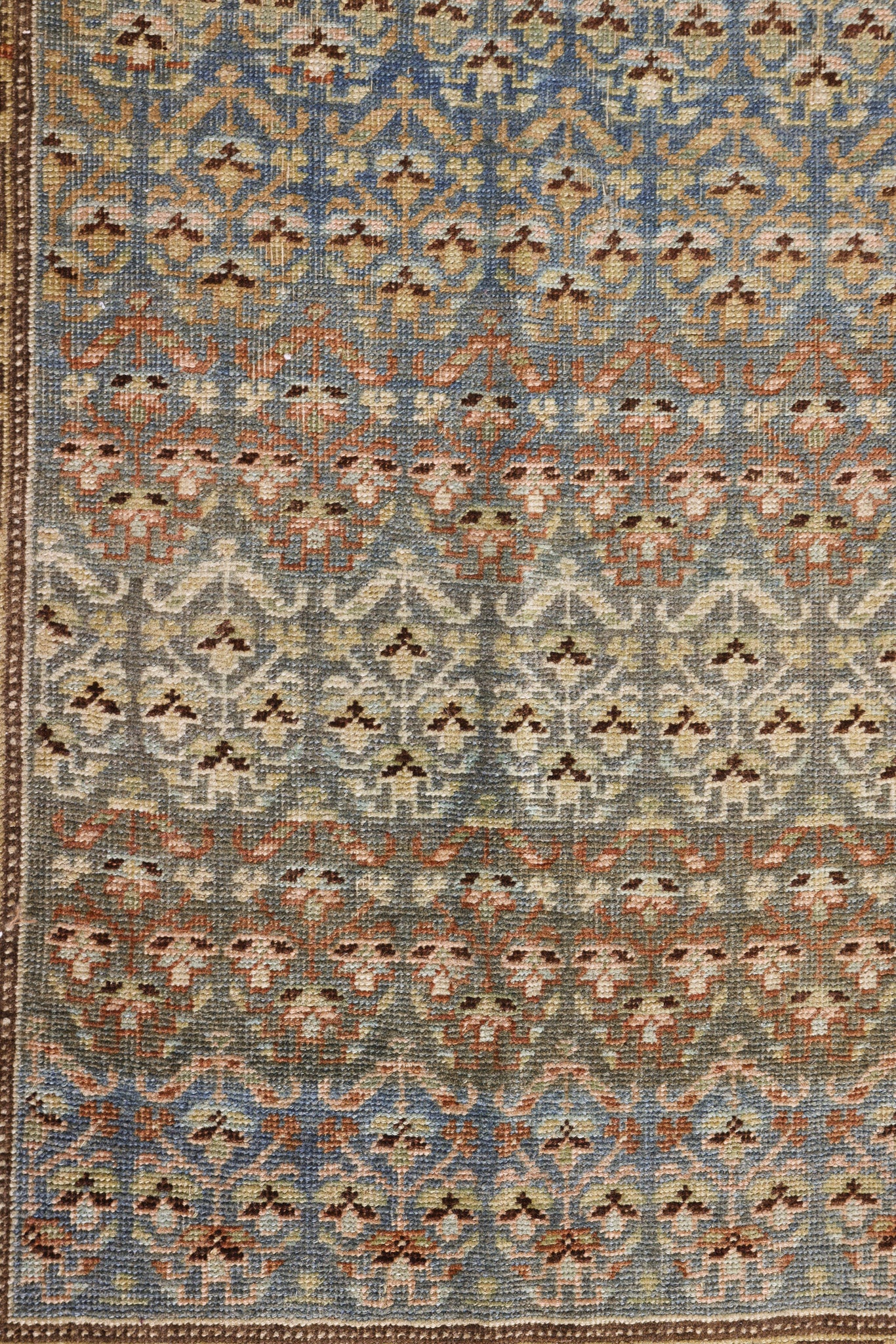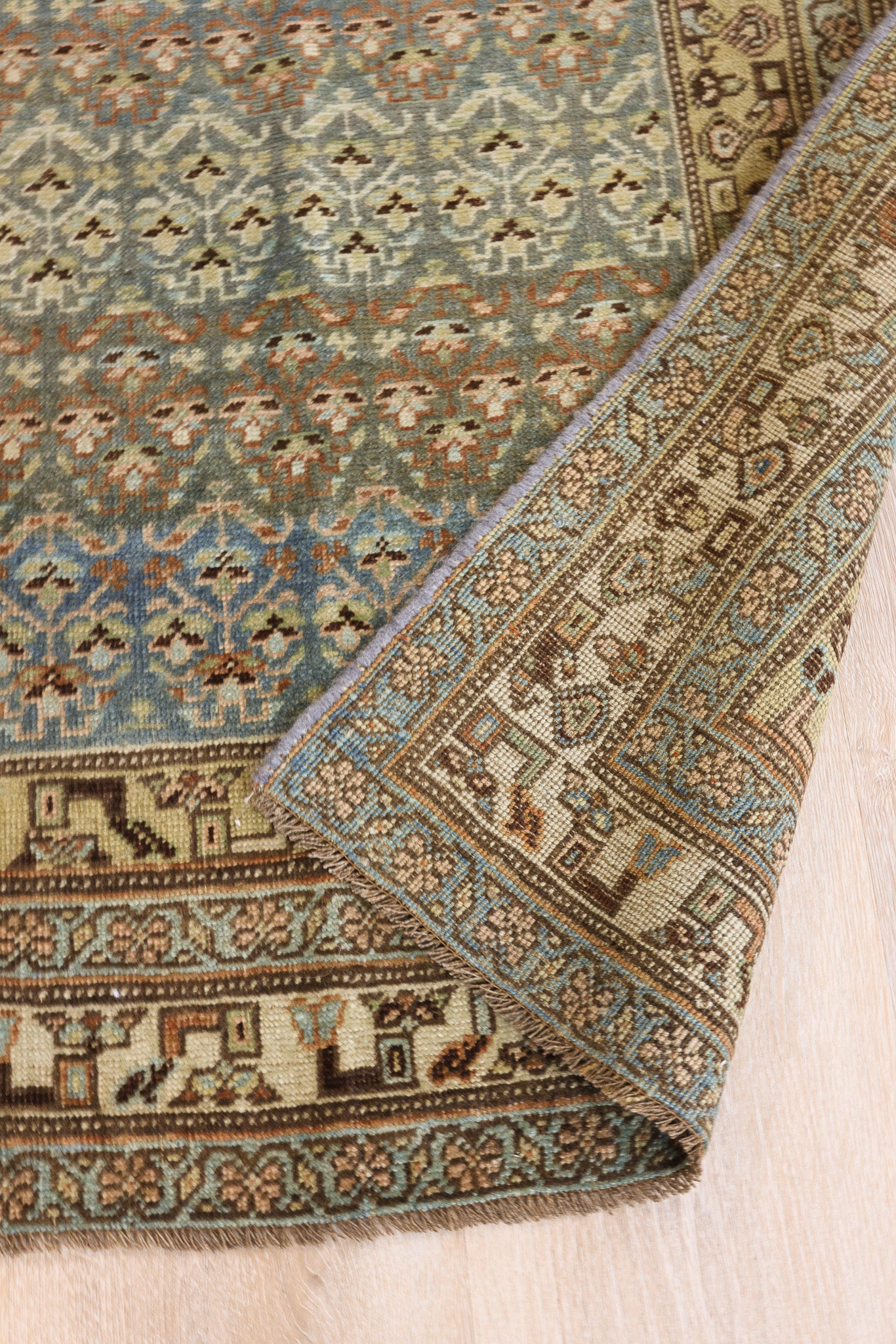 Please note that because this is a vintage rug, there may be slight imperfections in its wear, dimensions, and color. Our rugs have been repaired over the years, using various techniques. There might be evidence of these repairs through texture, look and feel. This is all part of the rich history and story of each artistic piece. These markings are not considered defective.