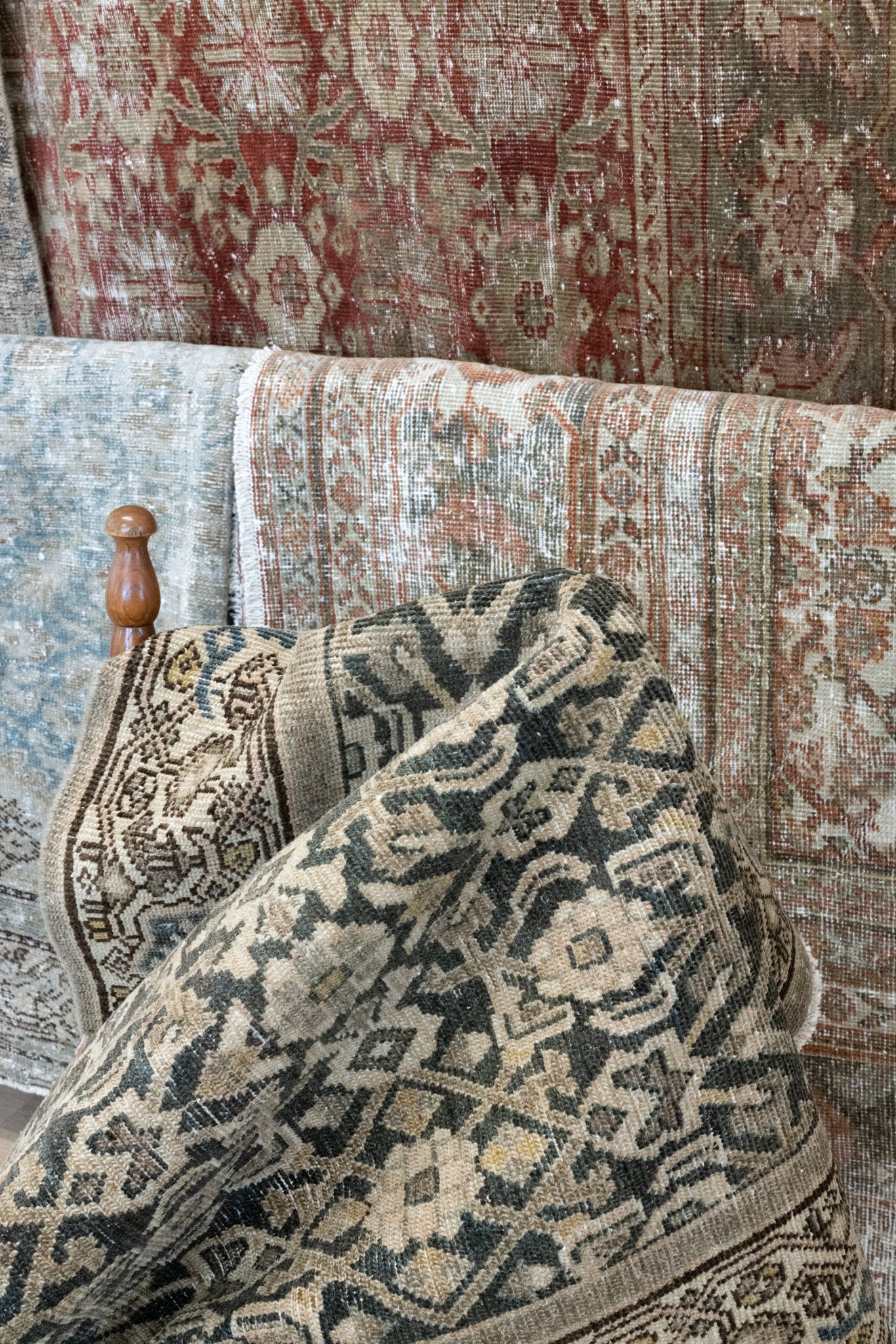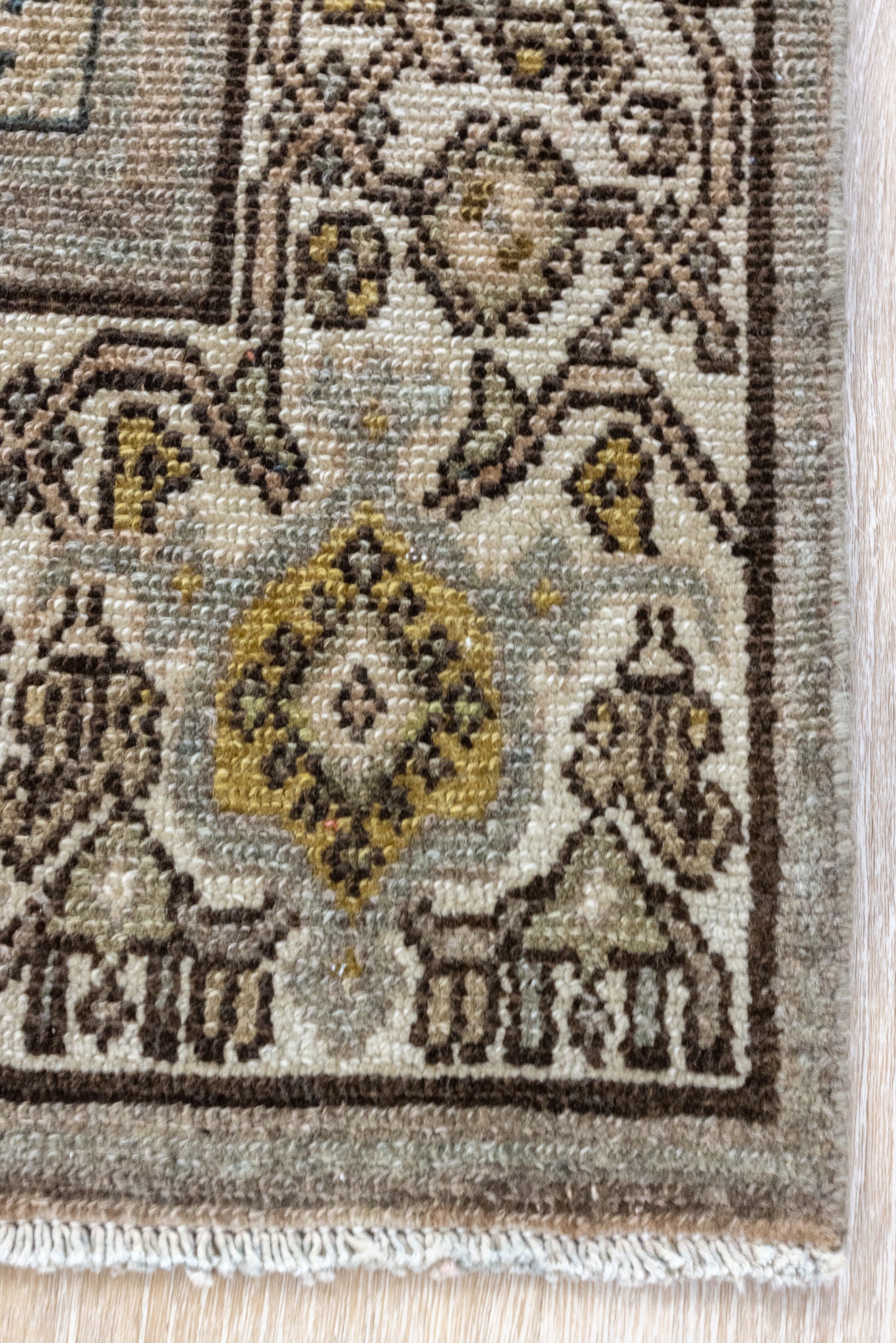 Because of the nature of this item, there may be slight imperfections in its wear, shape, dimensions, and color. Our rugs have been repaired over the years using various techniques. There might be evidence of these repairs through texture, look and feel. This is all part of the rich history and story of each artistic piece. These markings are not considered defective.