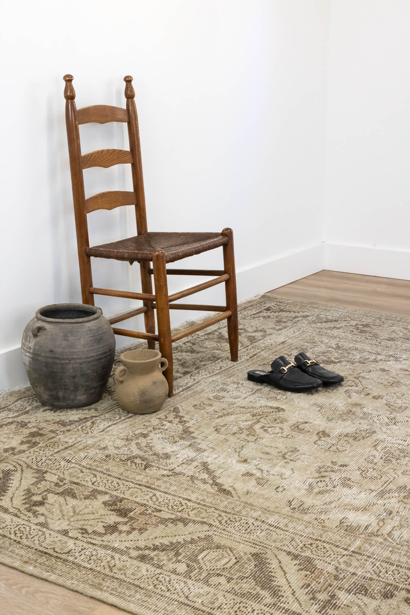 This rug has been professionally cleaned. Spot clean using the blotting technique, using a damp cloth. Take to a professional cleaner if the rug requires a deeper clean.