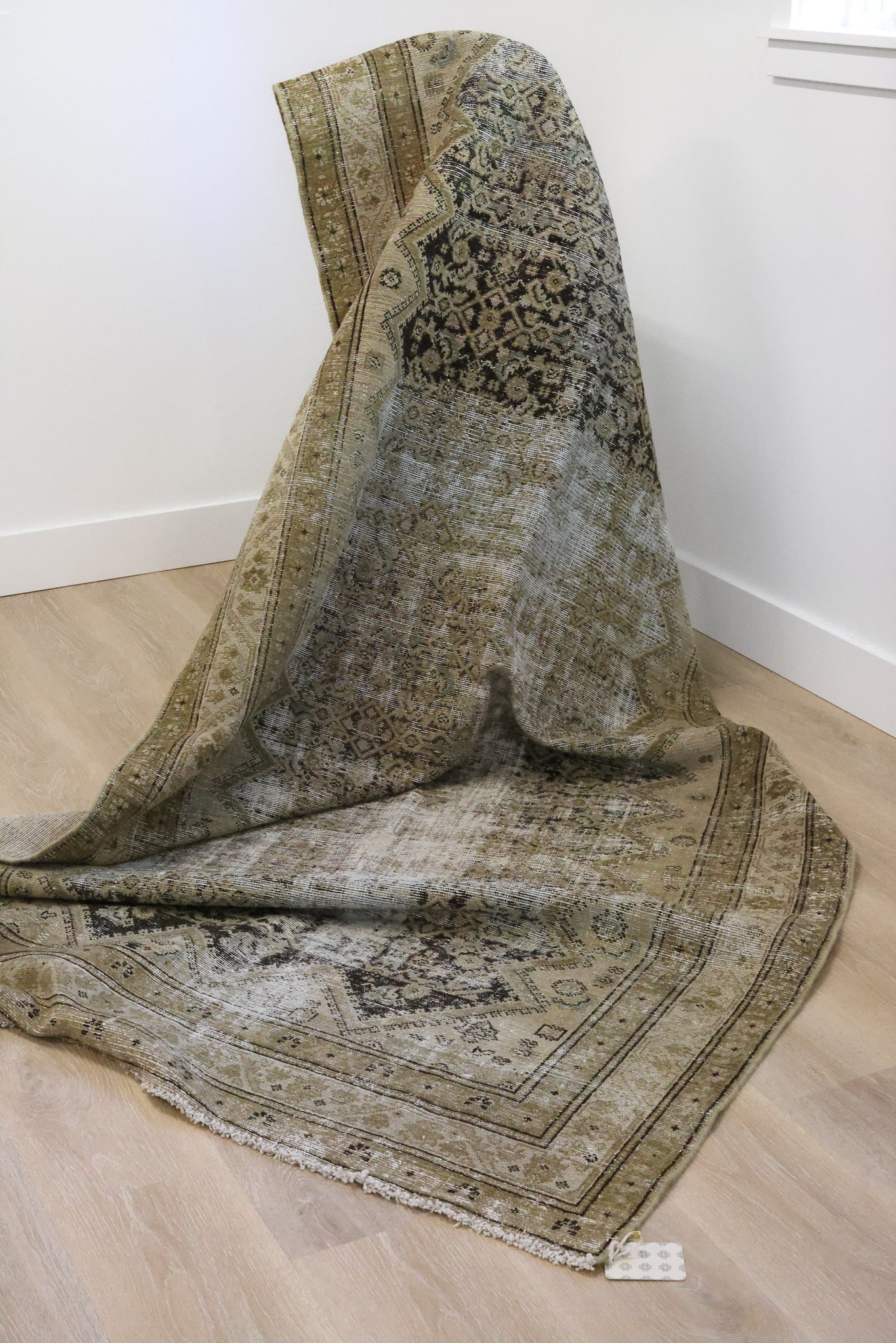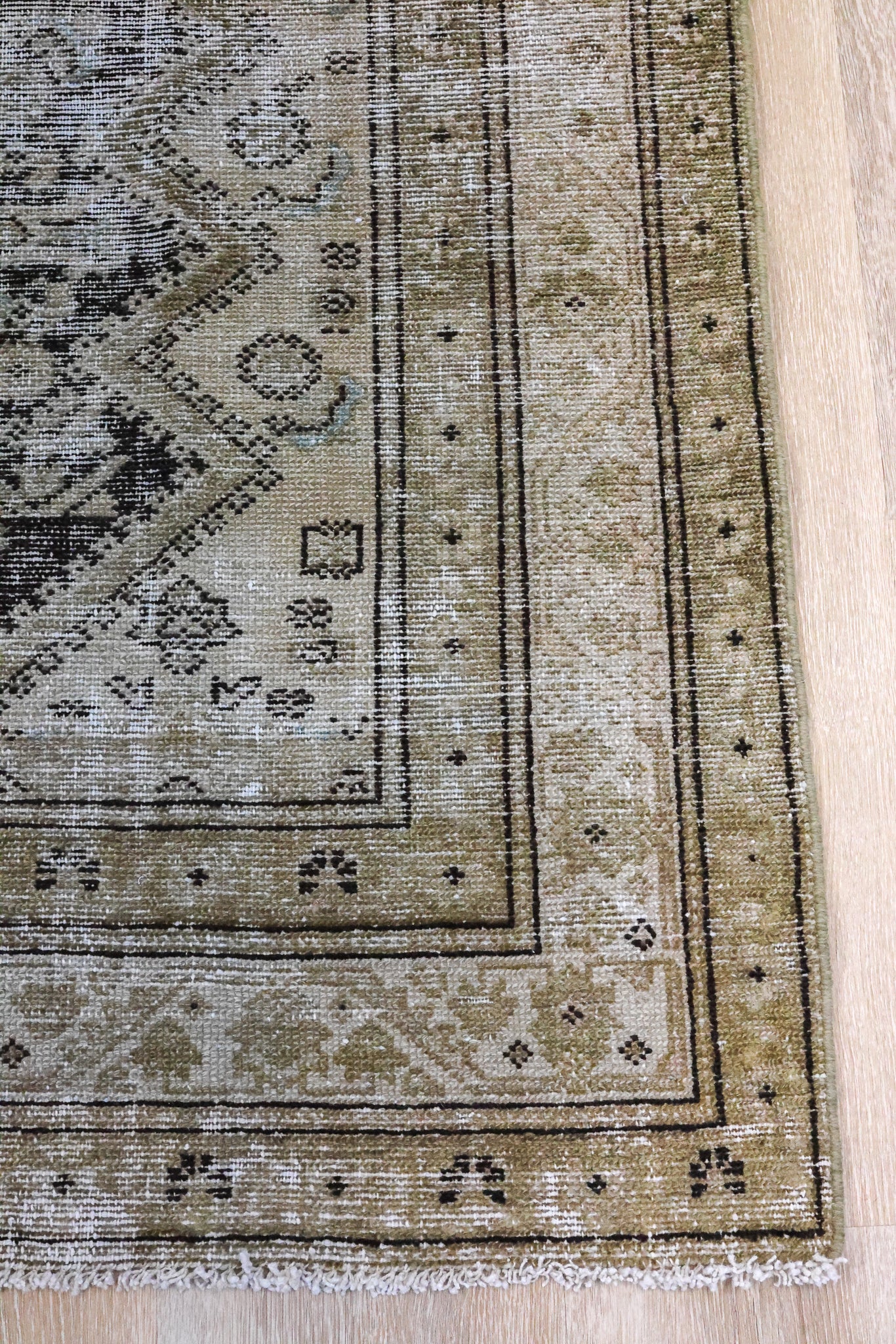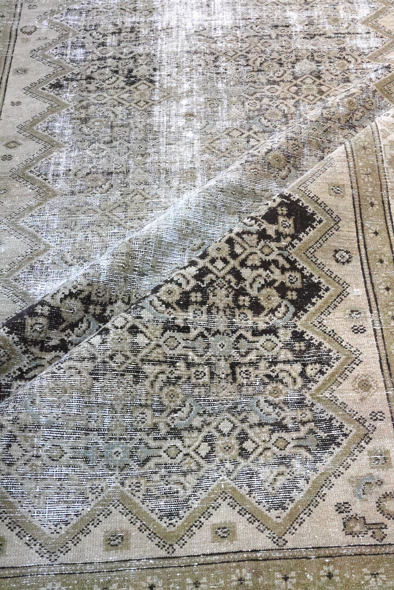 Please note that because this is a vintage rug, there may be slight imperfections in its wear, dimensions, and color. Our rugs have been repaired over the years, using various techniques. There might be evidence of these repairs through texture, look and feel. This is all part of the rich history and story of each artistic piece. These markings are not considered defective.