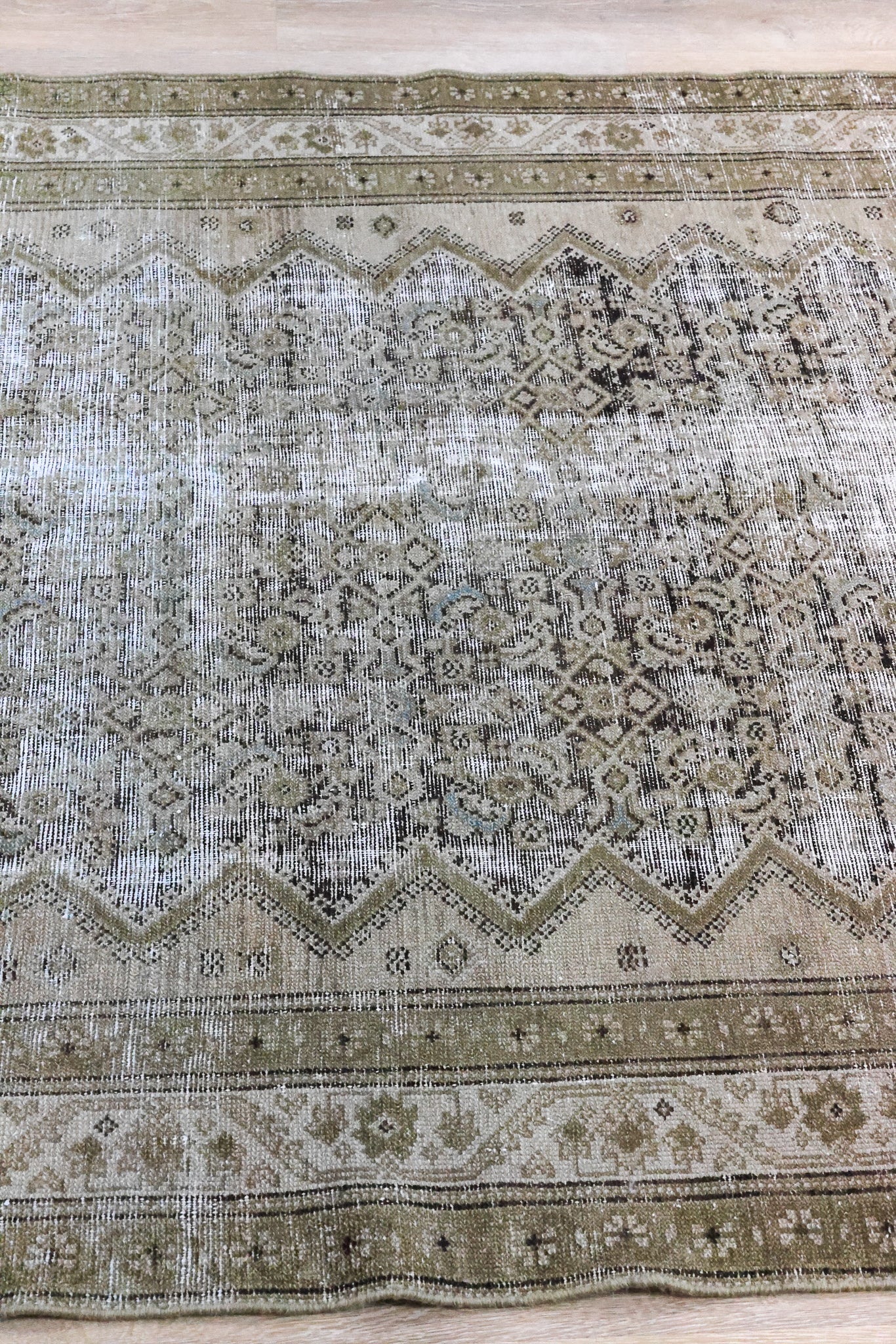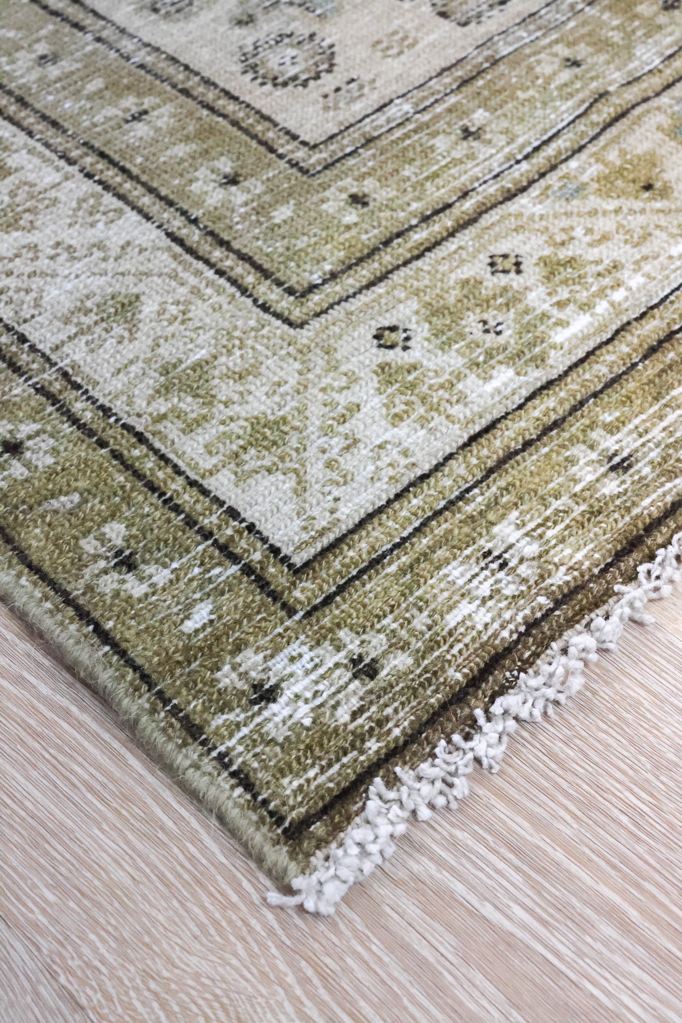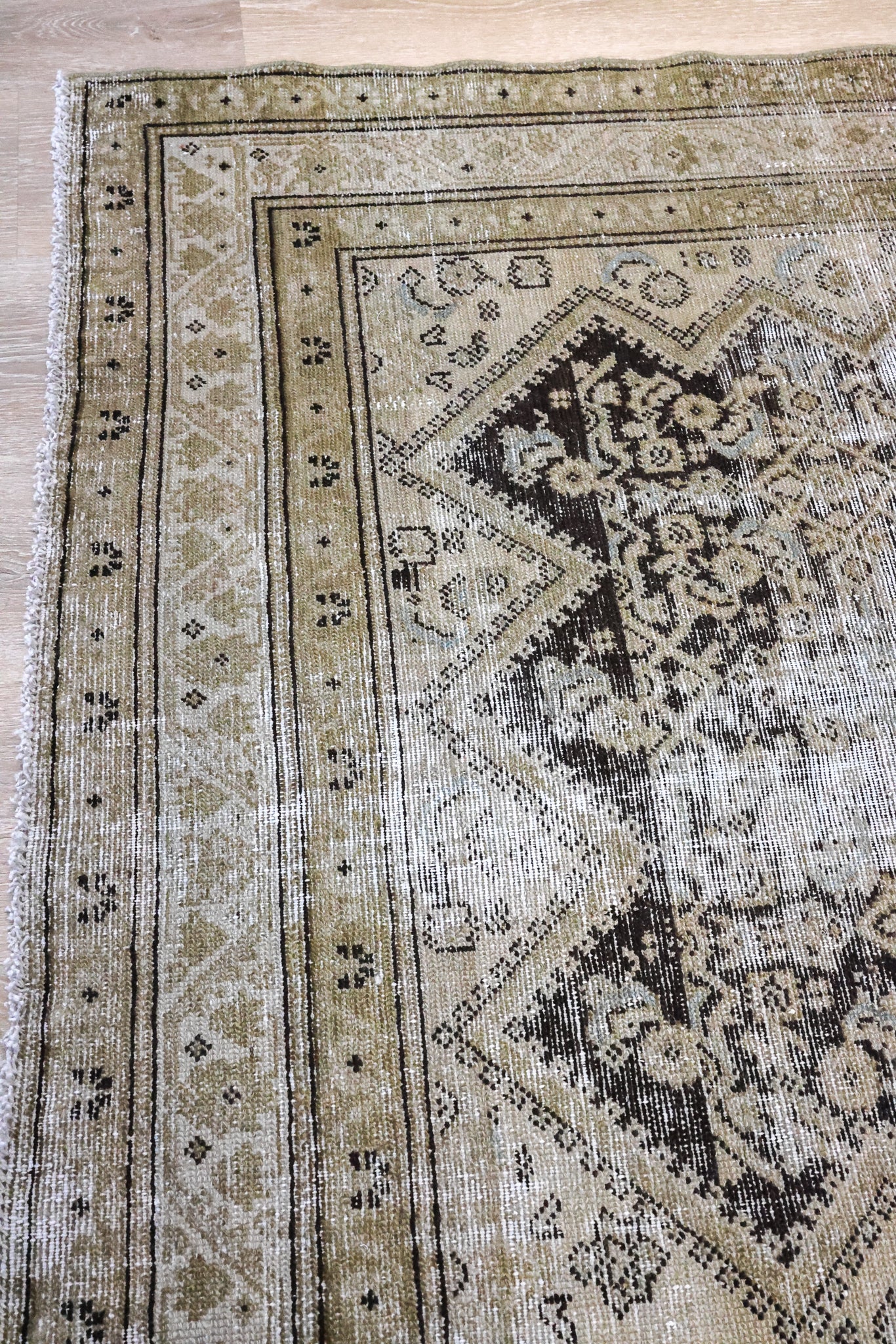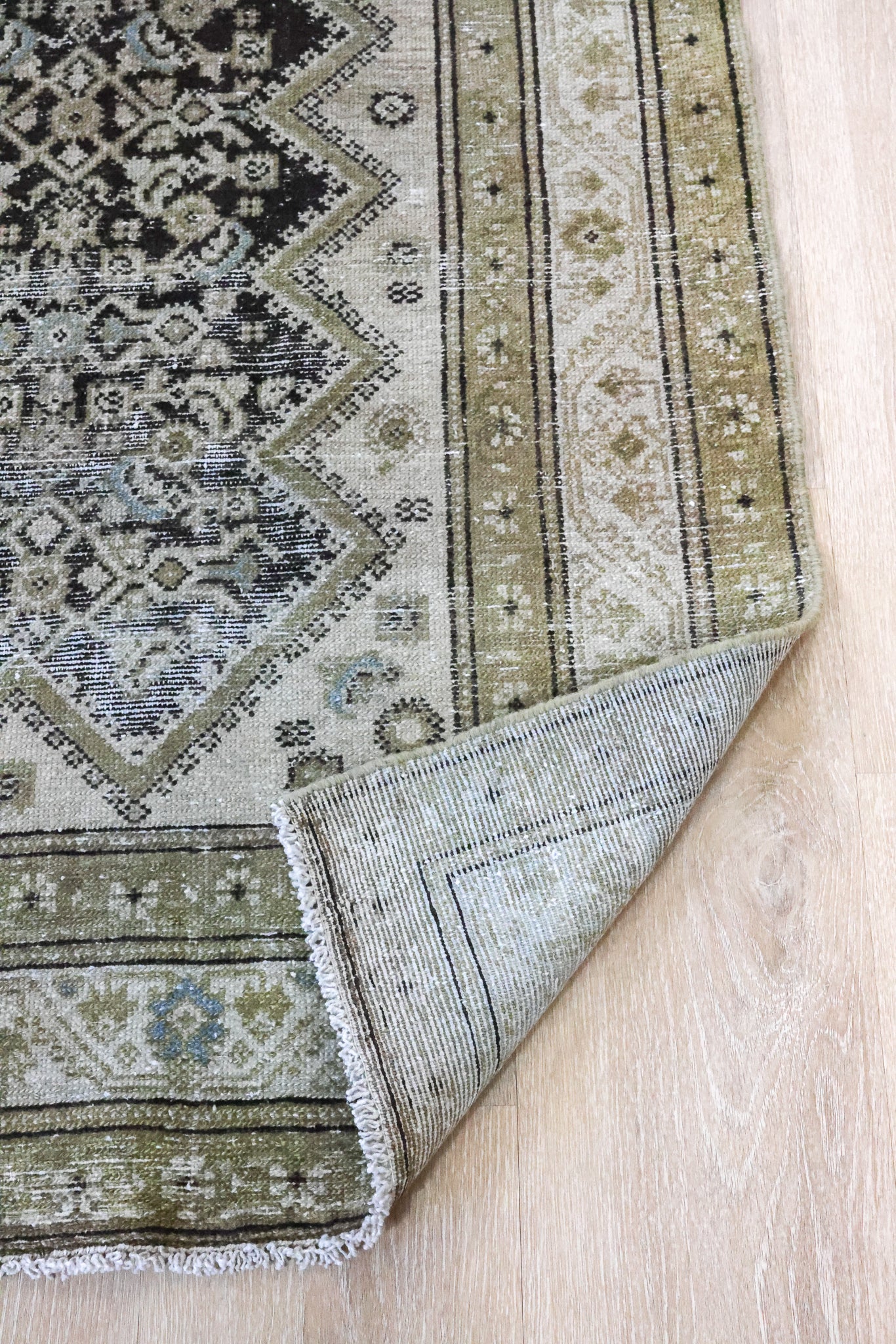 Please note that because this is a vintage rug, there may be slight imperfections in its wear, dimensions, and color. Our rugs have been repaired over the years, using various techniques. There might be evidence of these repairs through texture, look and feel. This is all part of the rich history and story of each artistic piece. These markings are not considered defective.