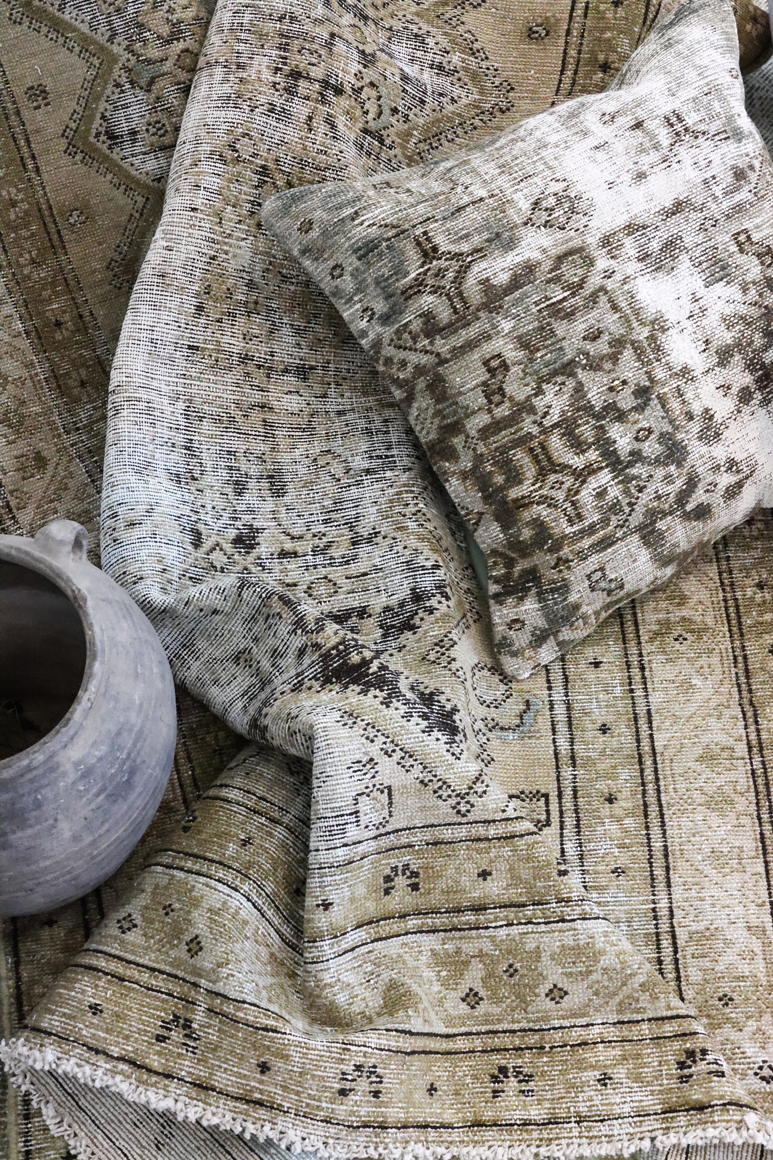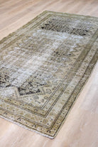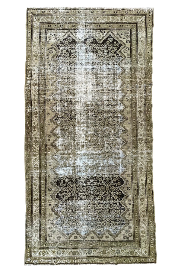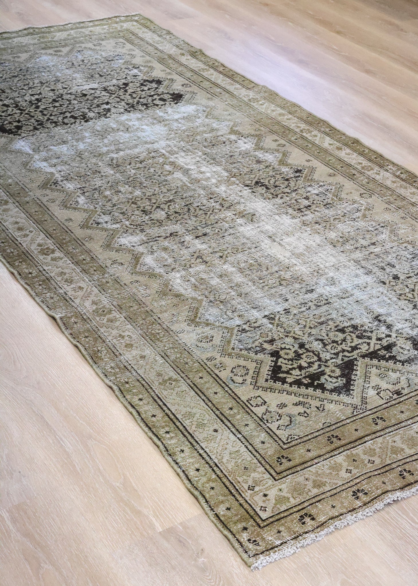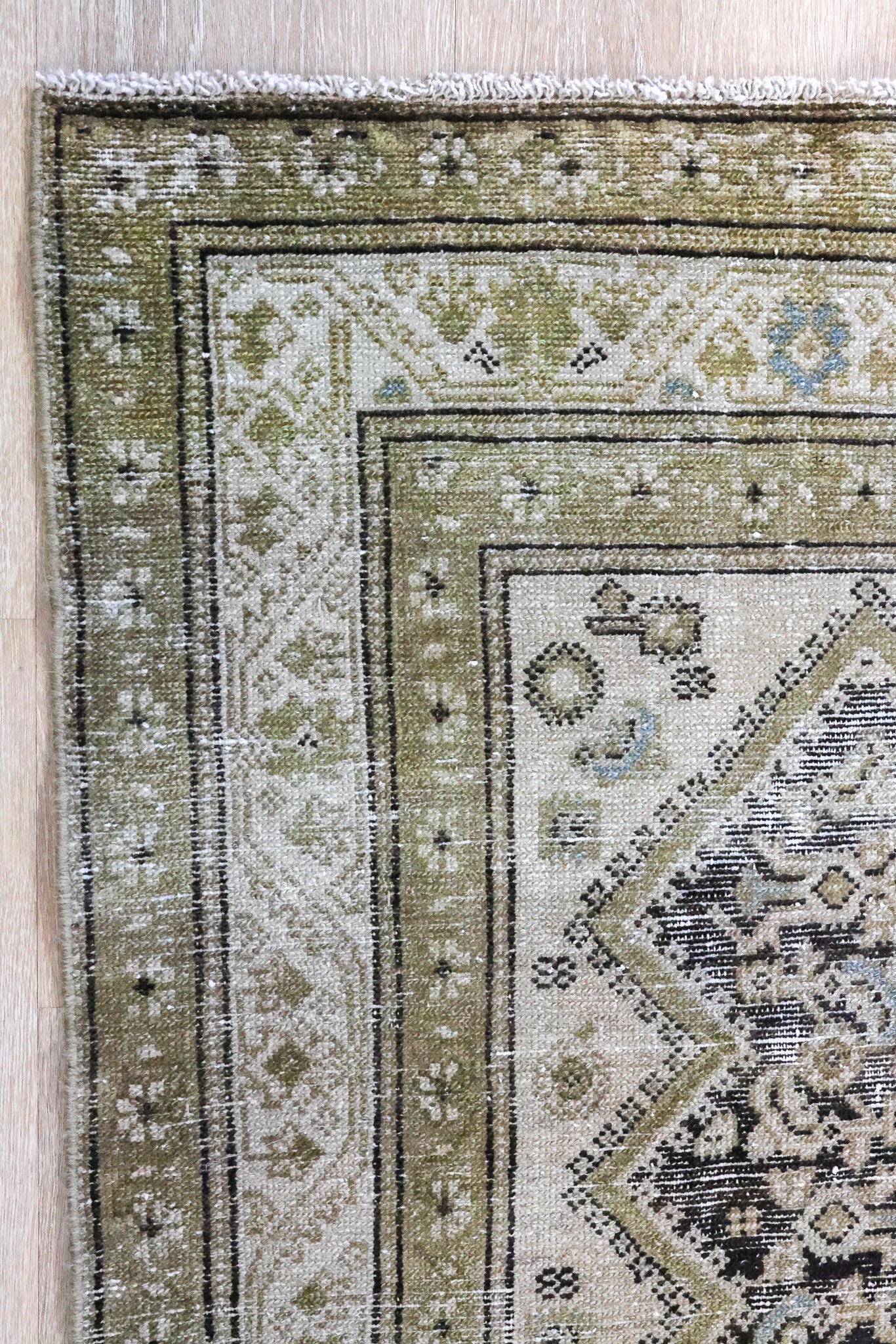 Please note that because this is a vintage rug, there may be slight imperfections in its wear, dimensions, and color. Our rugs have been repaired over the years, using various techniques. There might be evidence of these repairs through texture, look and feel. This is all part of the rich history and story of each artistic piece. These markings are not considered defective.