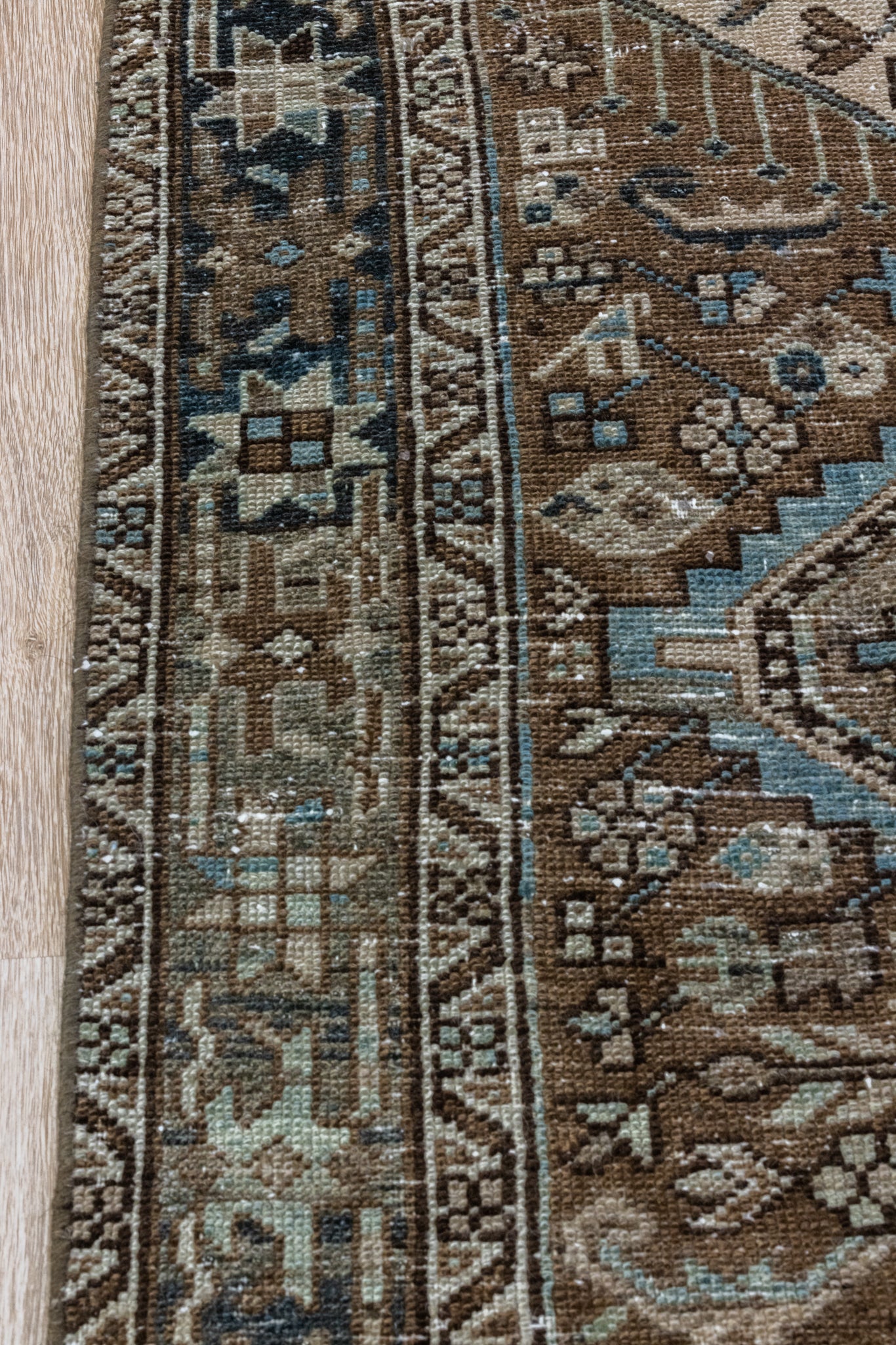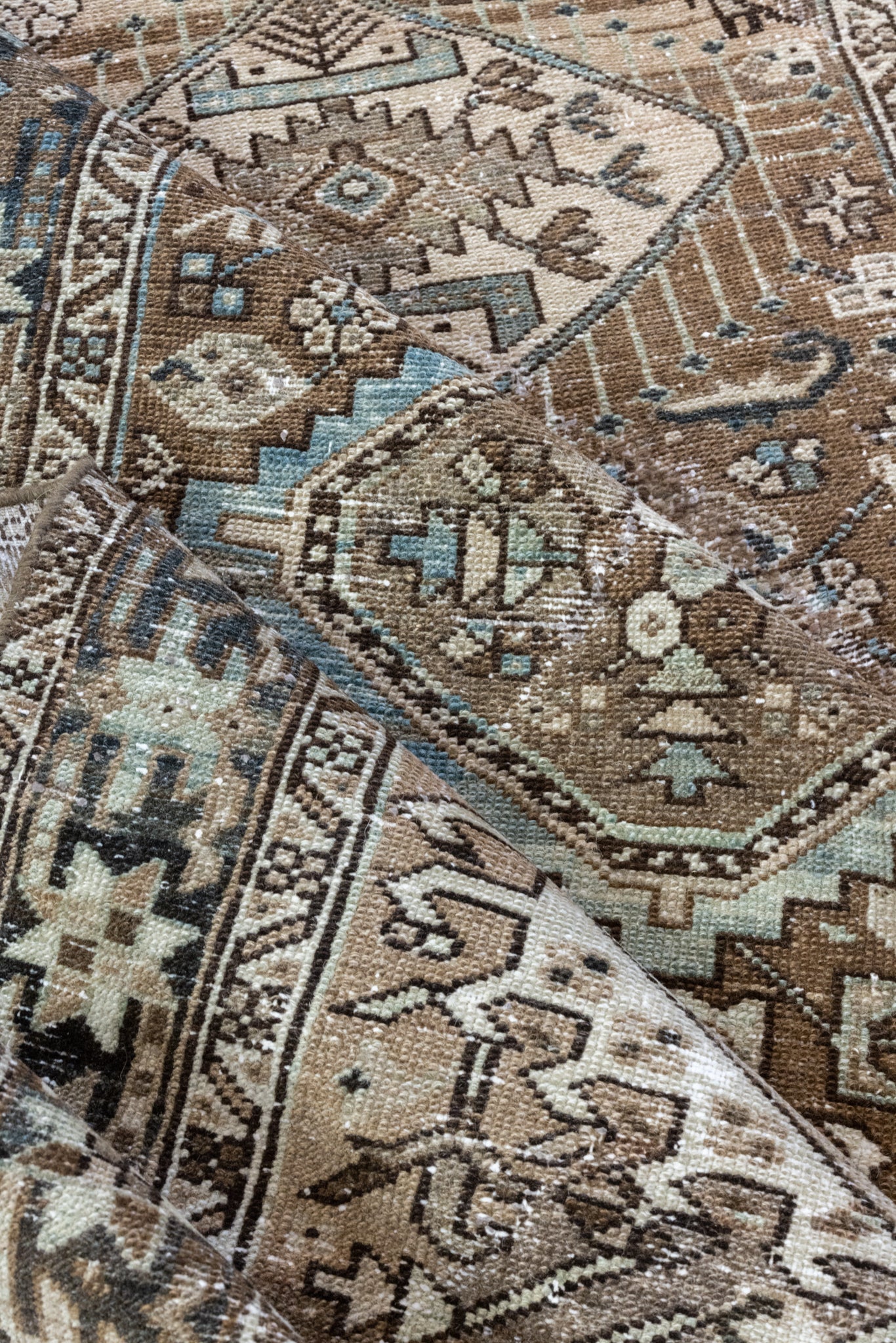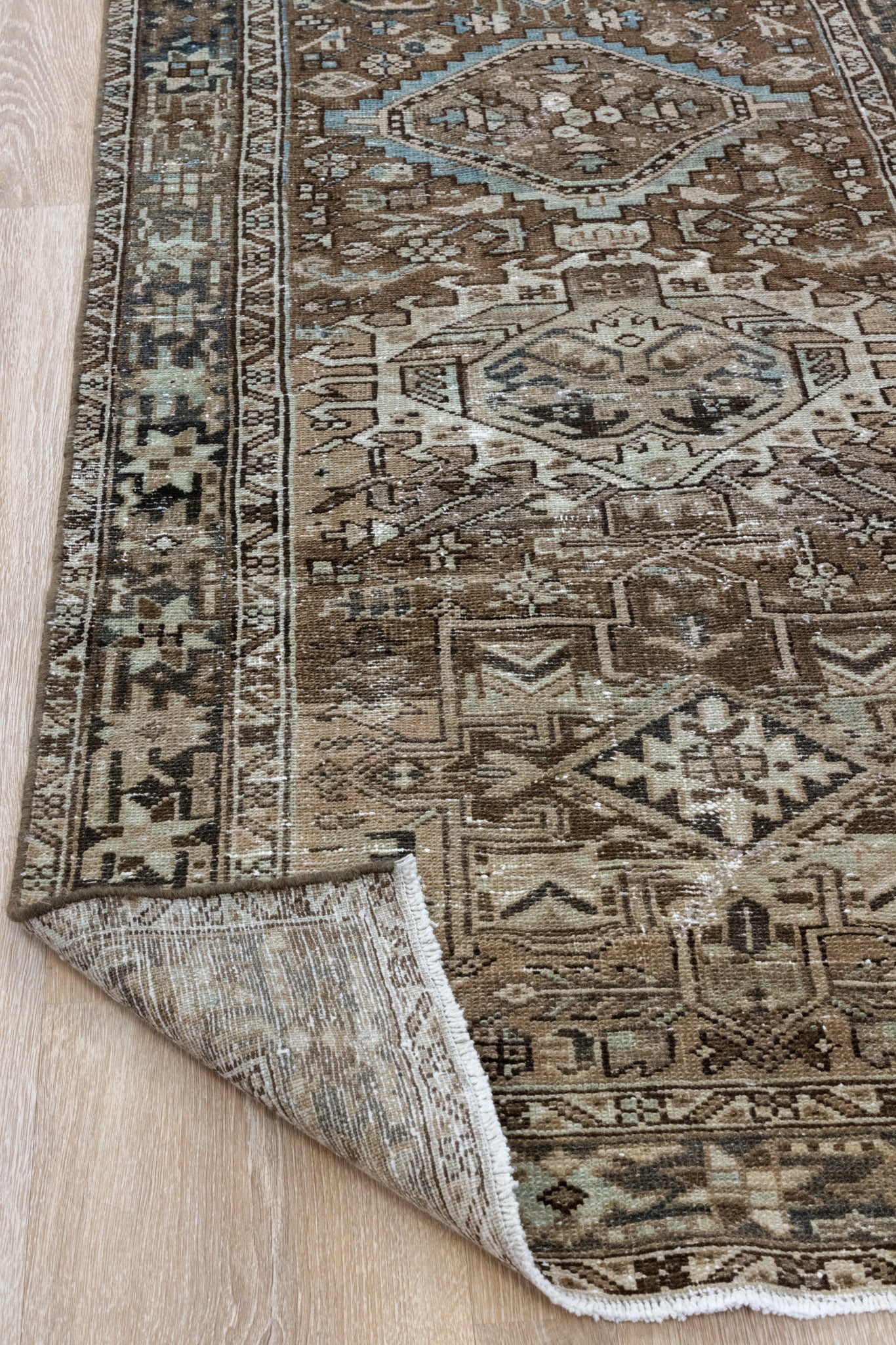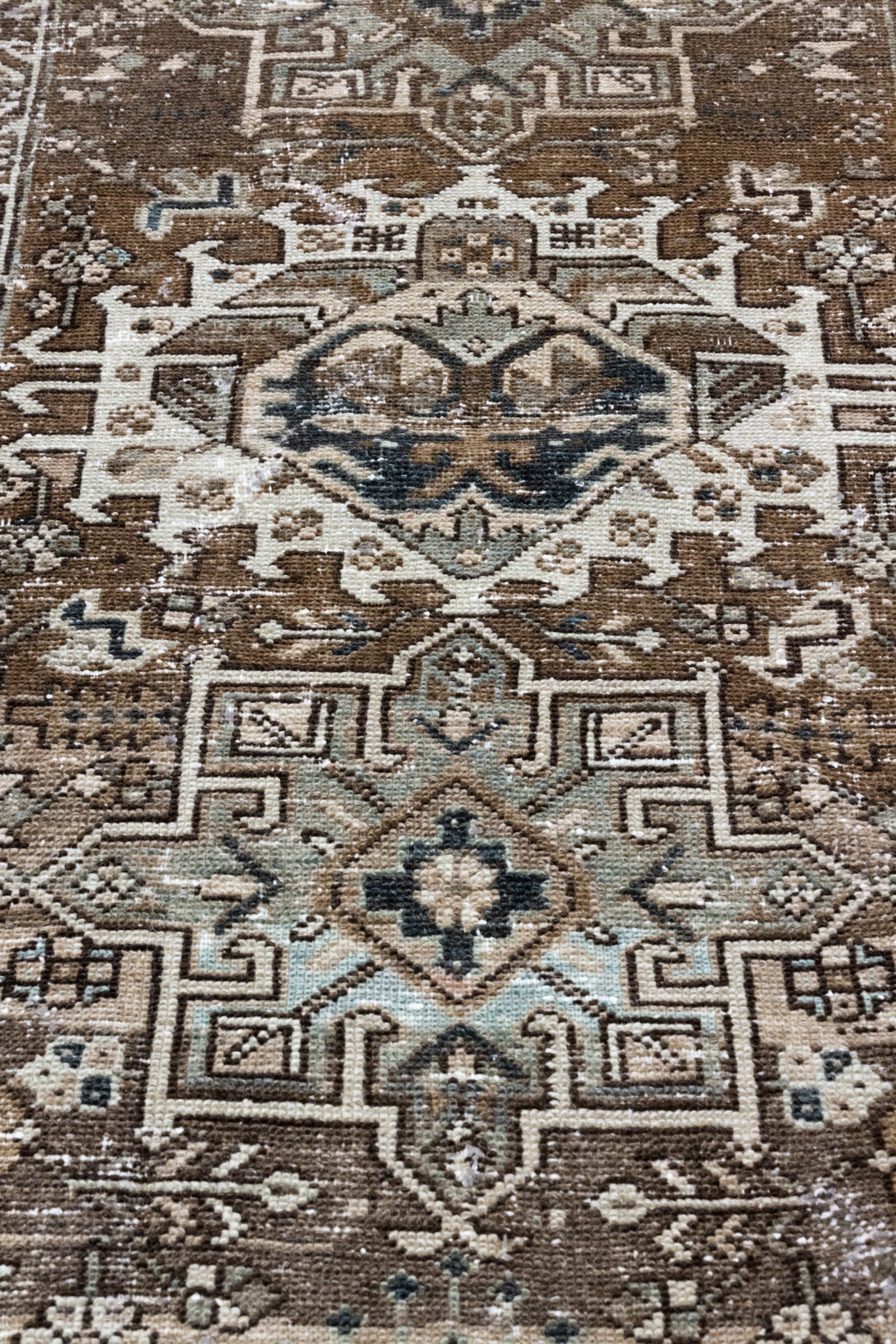 Please note that because this is a vintage rug, there may be slight imperfections in its wear, dimensions, and color. Our rugs have been repaired over the years, using various techniques. There might be evidence of these repairs through texture, look and feel. This is all part of the rich history and story of each artistic piece. These markings are not considered defective.