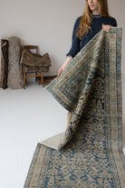 Because of the nature of this item, there may be slight imperfections in its wear, shape, dimensions, and color. Our rugs have been repaired over the years using various techniques. There might be evidence of these repairs through texture, look and feel. This is all part of the rich history and story of each artistic piece. These markings are not considered defective.