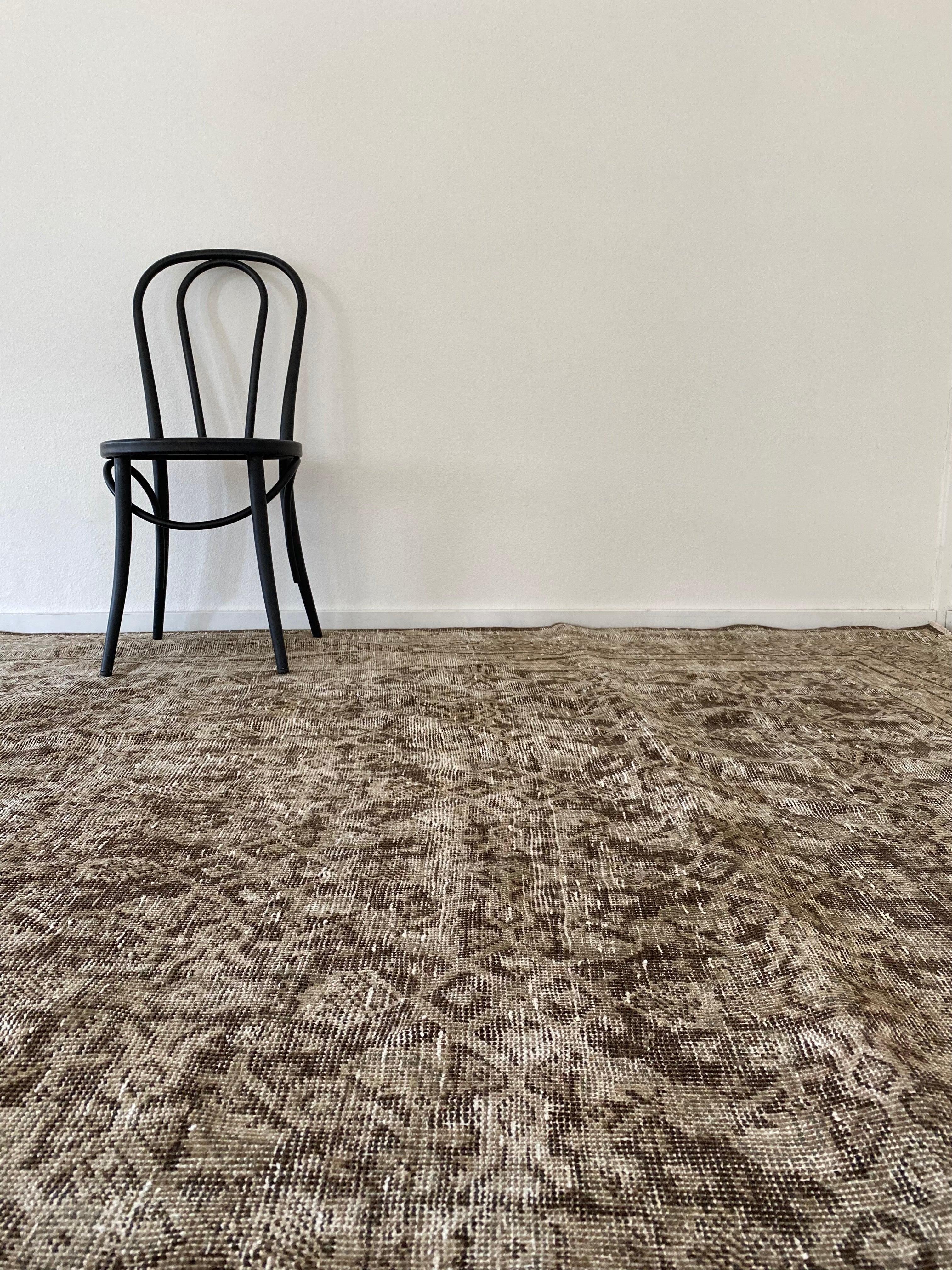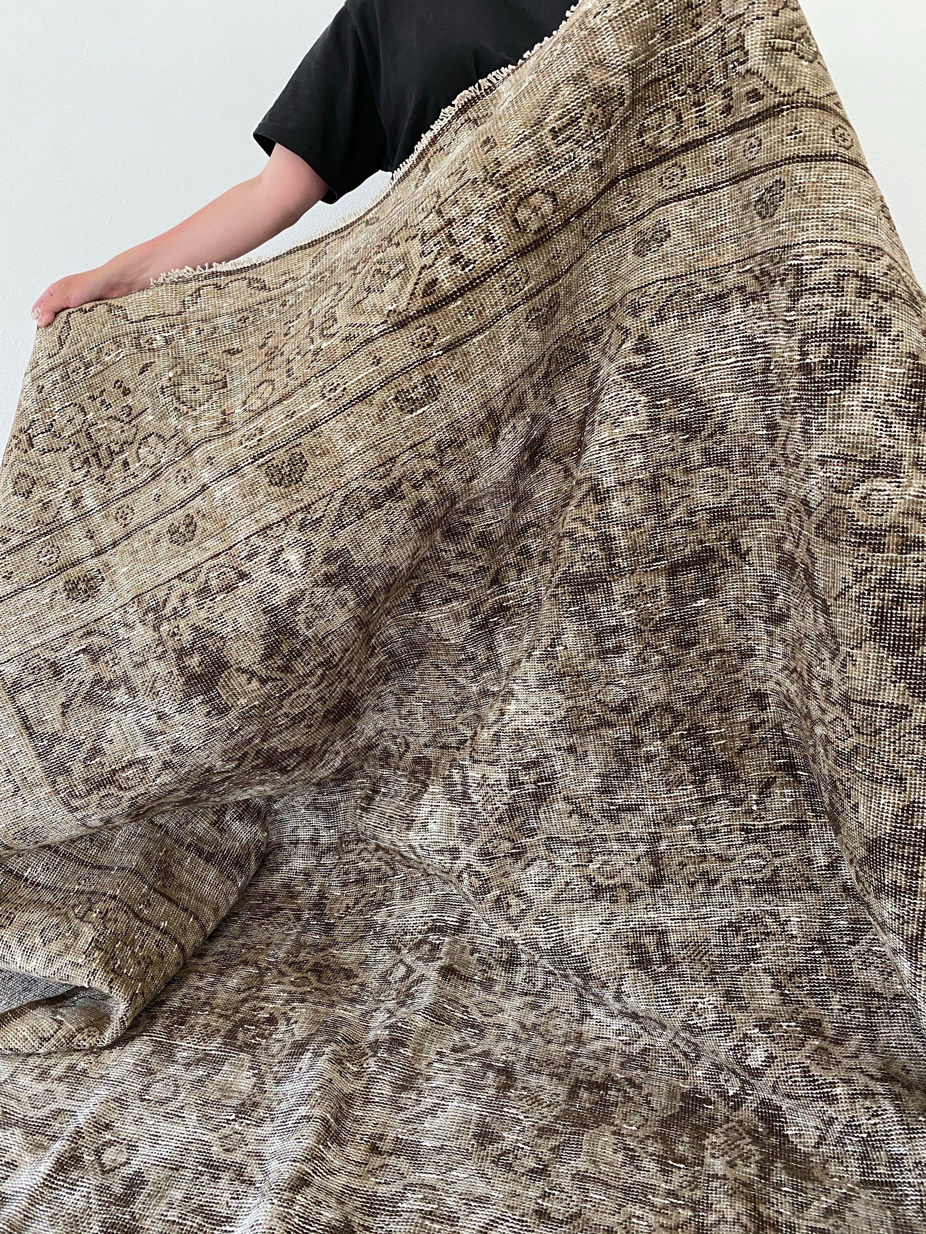 This rug has been professionally cleaned. Spot clean using the blotting technique, using a damp cloth. Take to a professional cleaner if the rug requires a deeper clean.