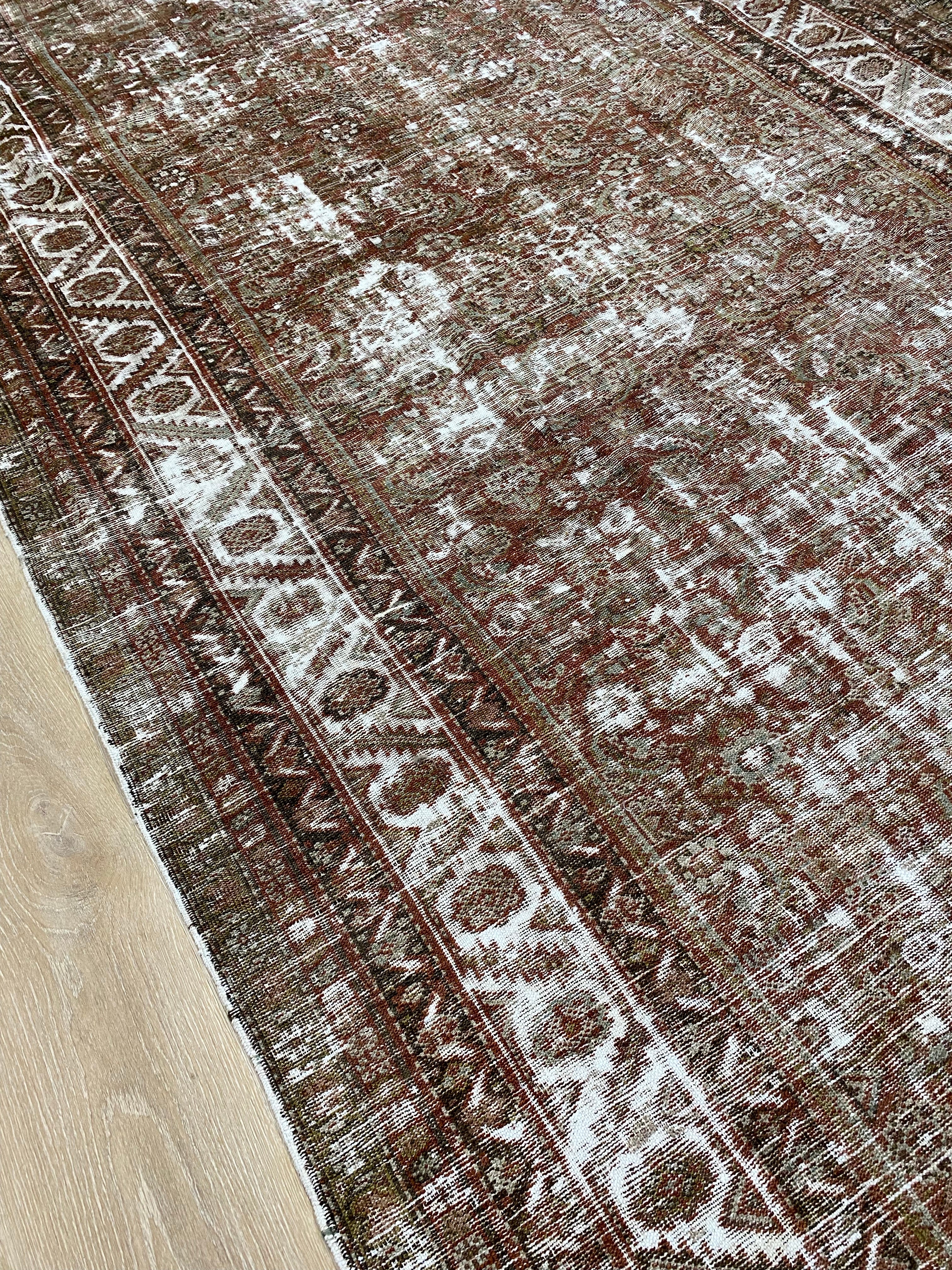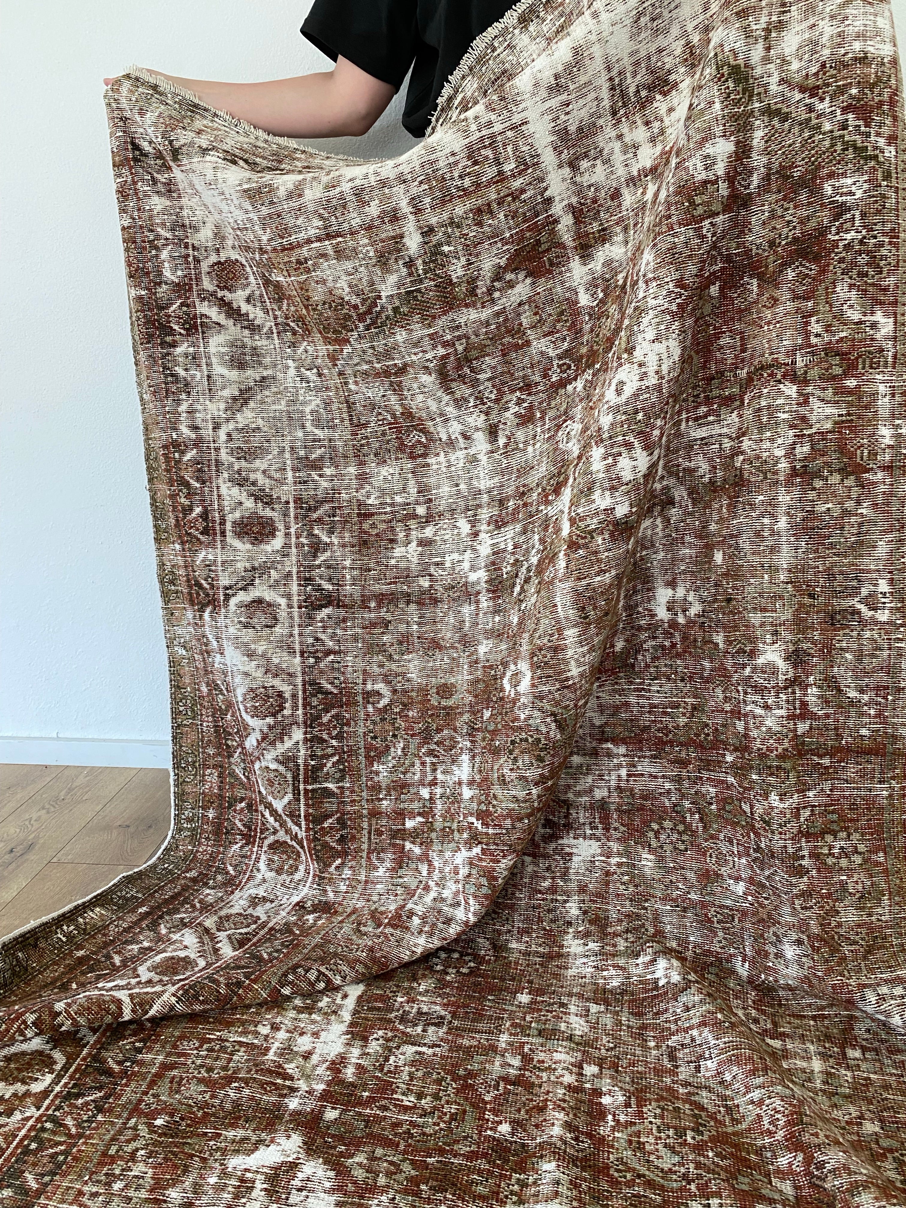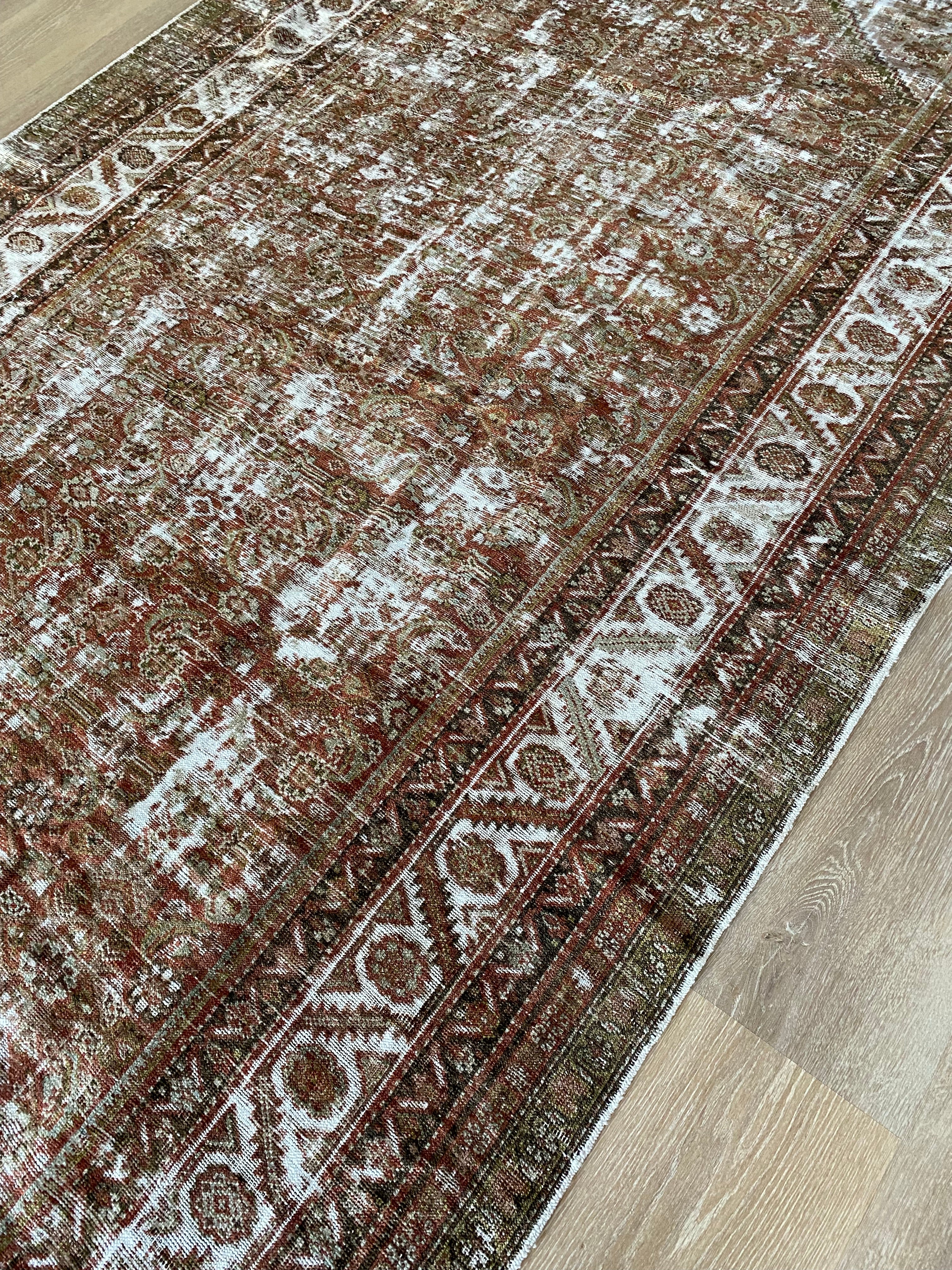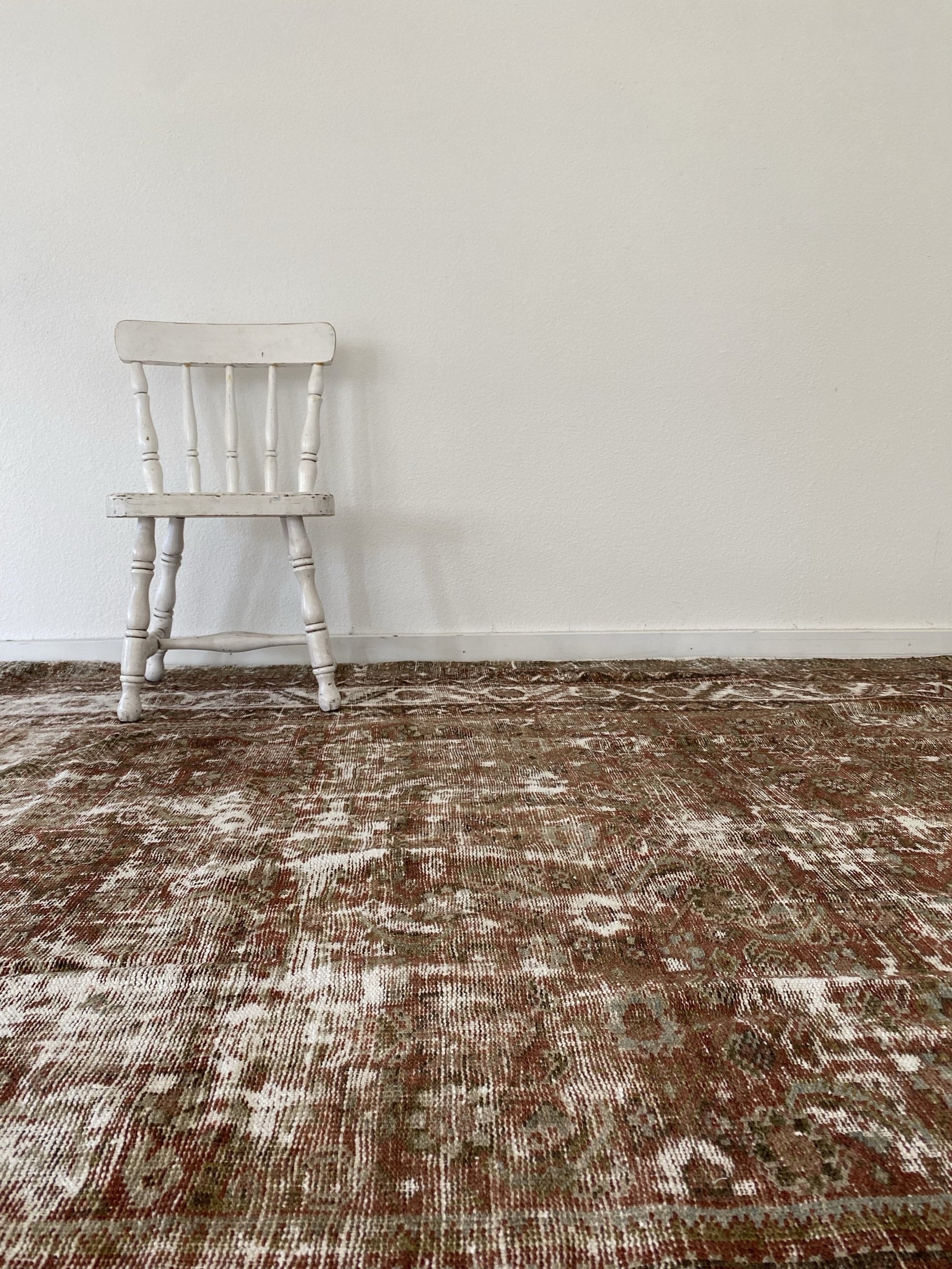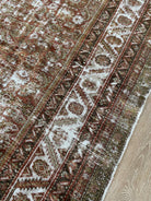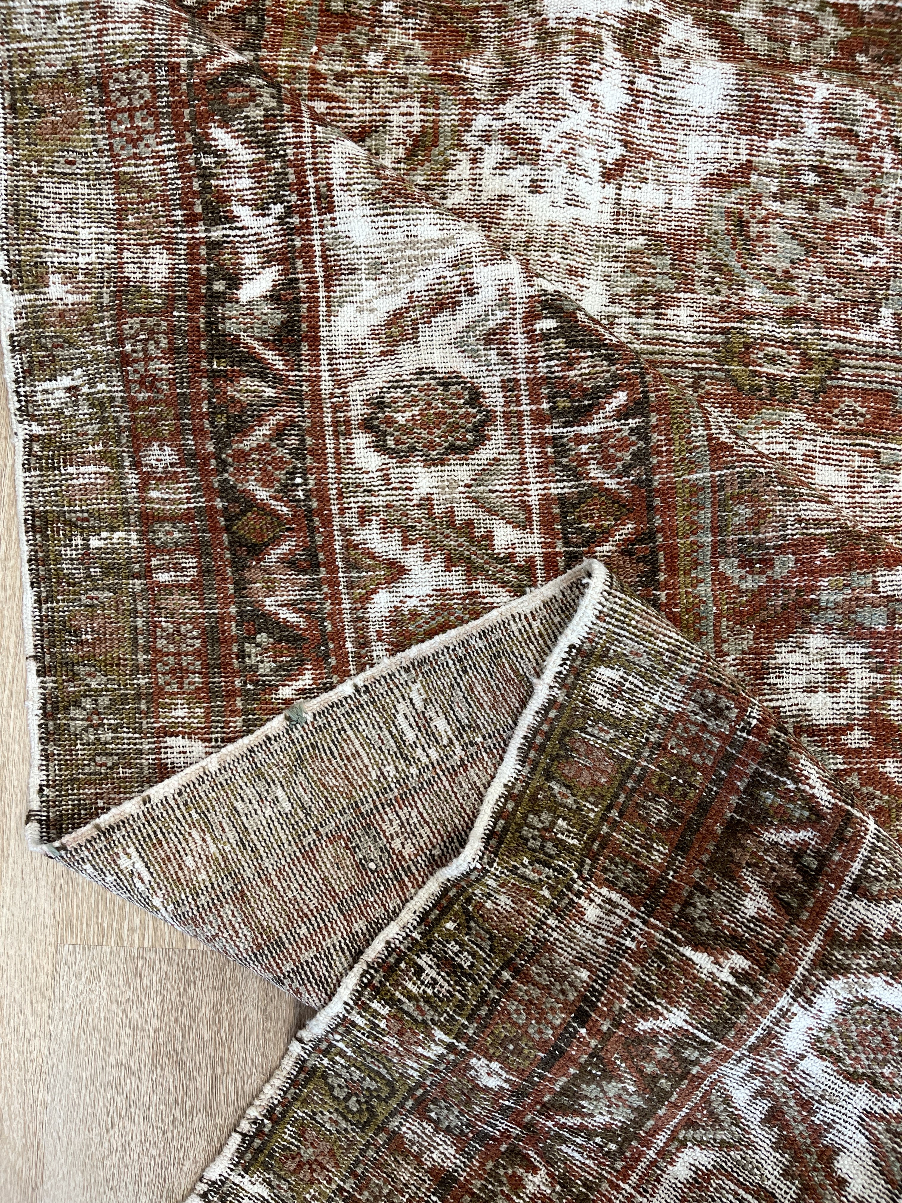 Please note that because this is a vintage rug, there may be slight imperfections in its wear, dimensions, and color. Our rugs have been repaired over the years, using various techniques. There might be evidence of these repairs through texture, look and feel. This is all part of the rich history and story of each artistic piece. These markings are not considered defective.
