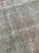Colors: a slight green tone overall, grays, taupe, browns. The faded design has a muted, deep sea blue/turquoise tone.