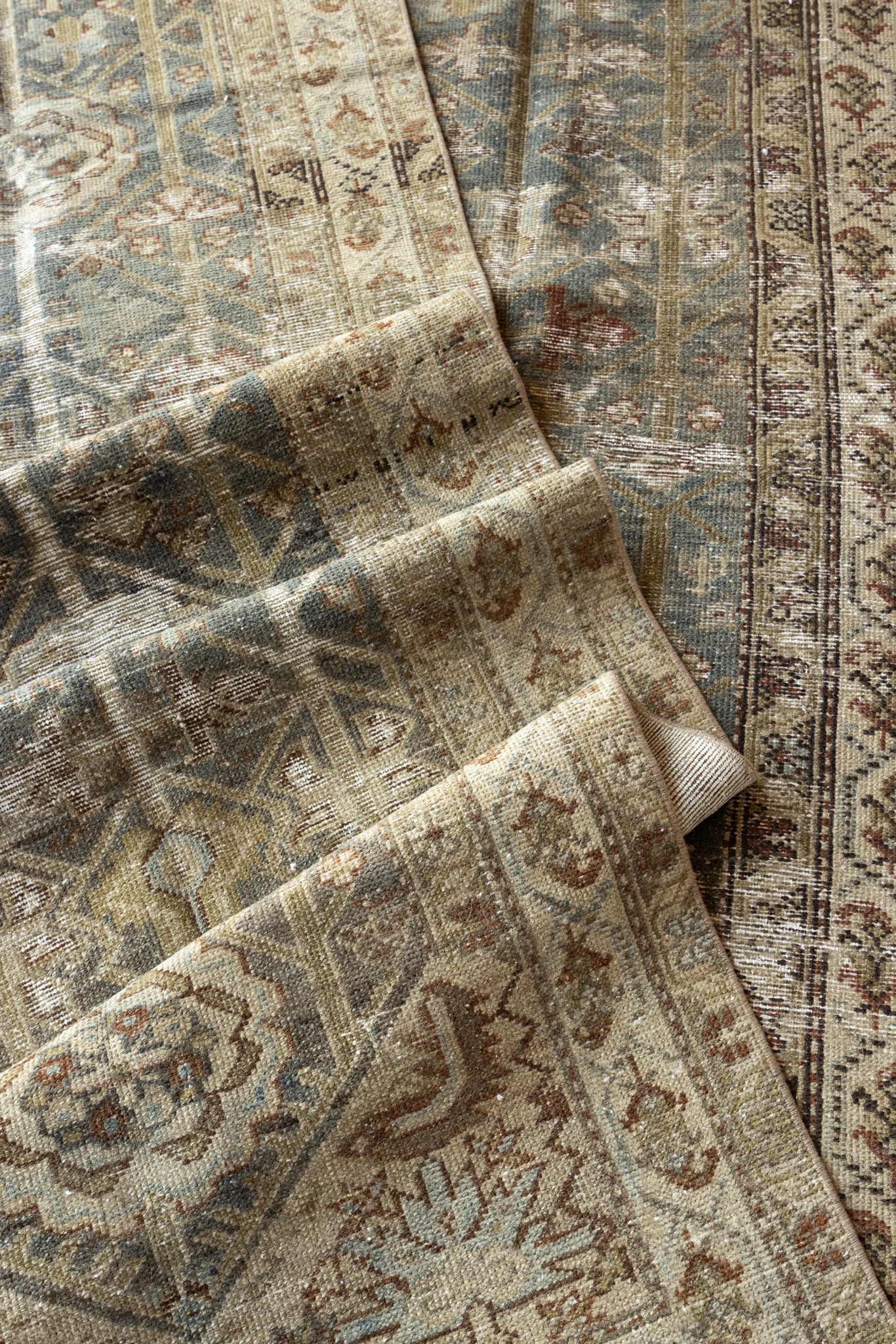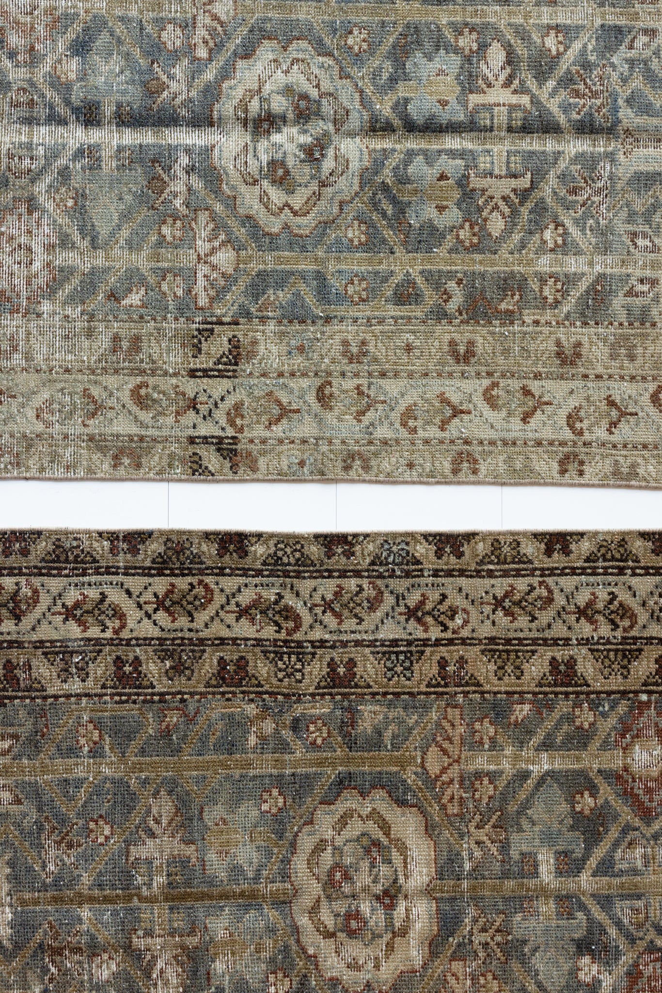 Because of the nature of this item, there may be slight imperfections in its wear, shape, dimensions, and color. Our rugs have been repaired over the years, using various techniques. There might be evidence of these repairs through texture, look and feel. This is all part of the rich history and story of each artistic piece. These markings are not considered defective.