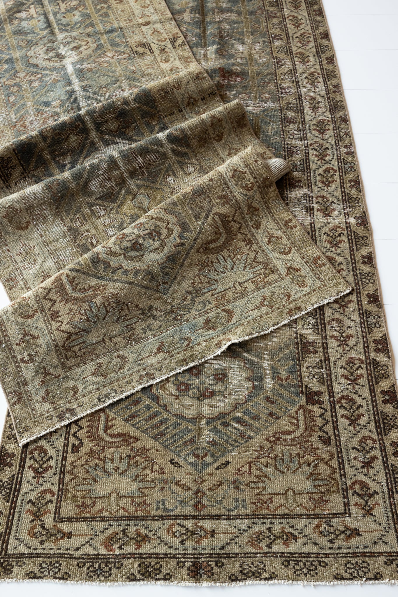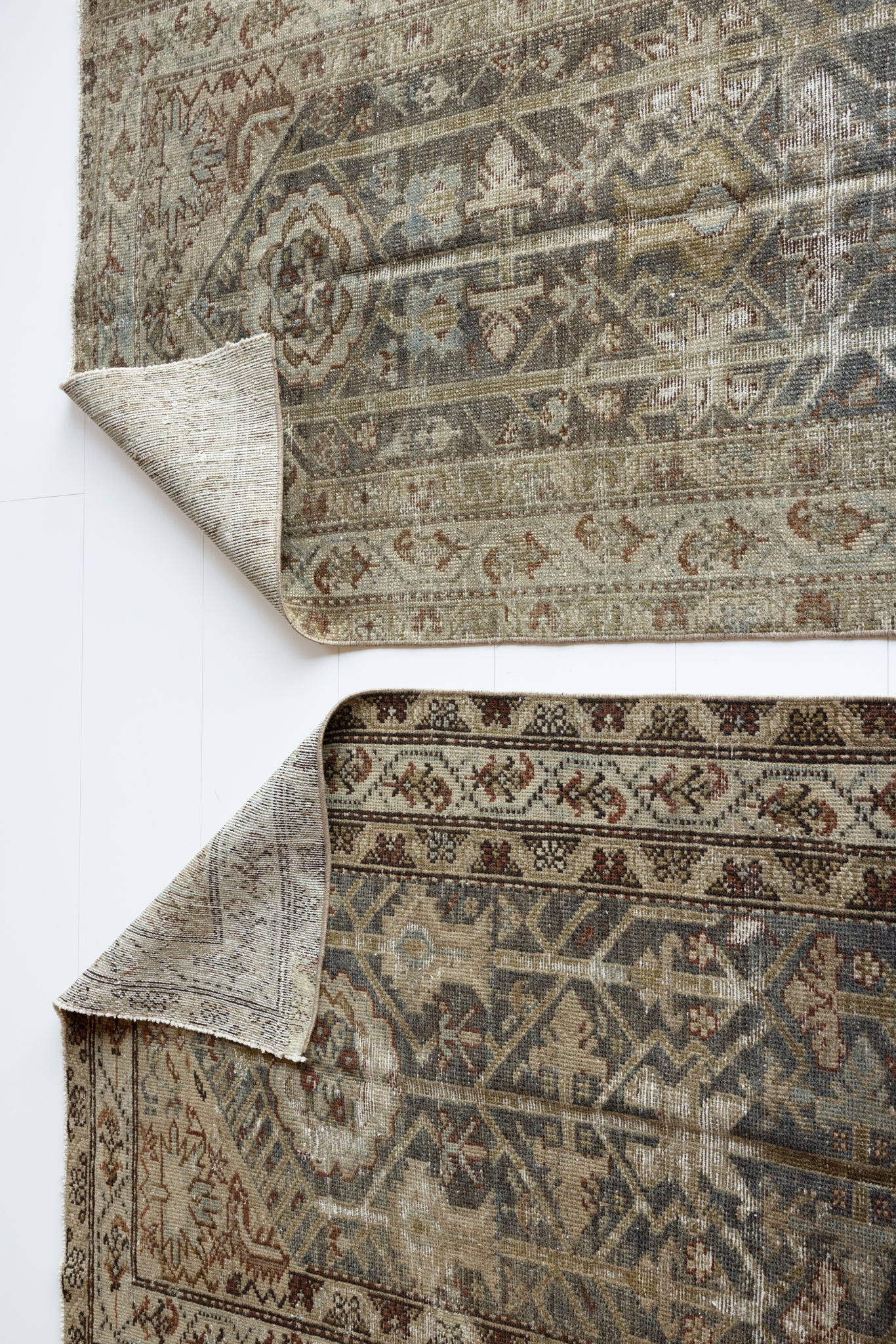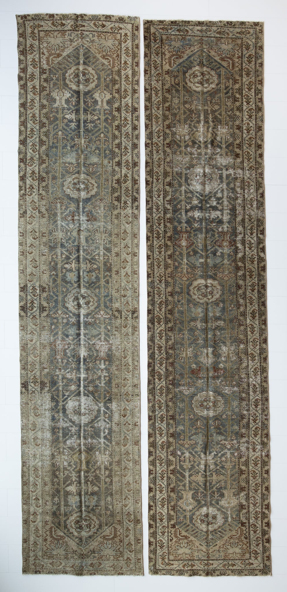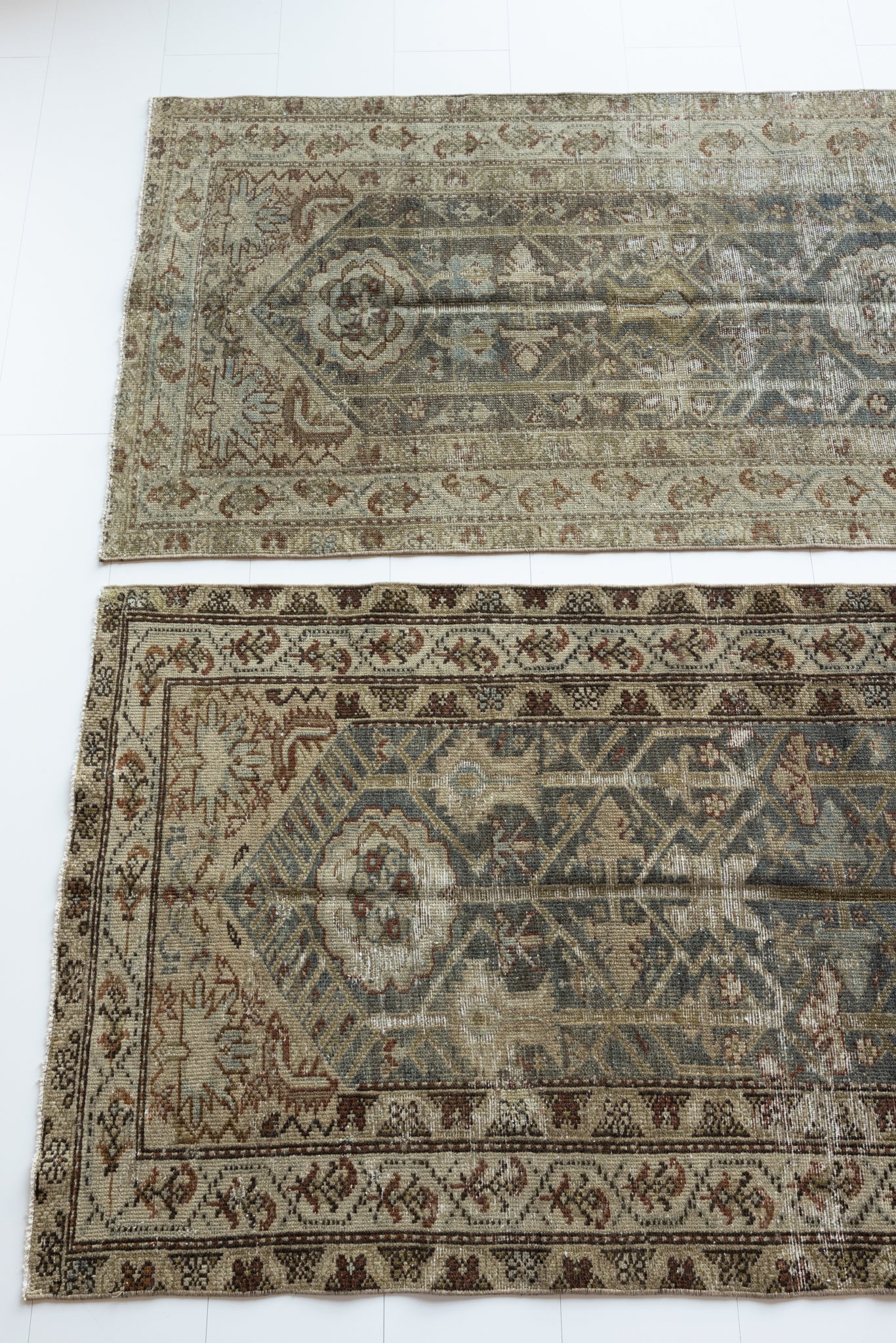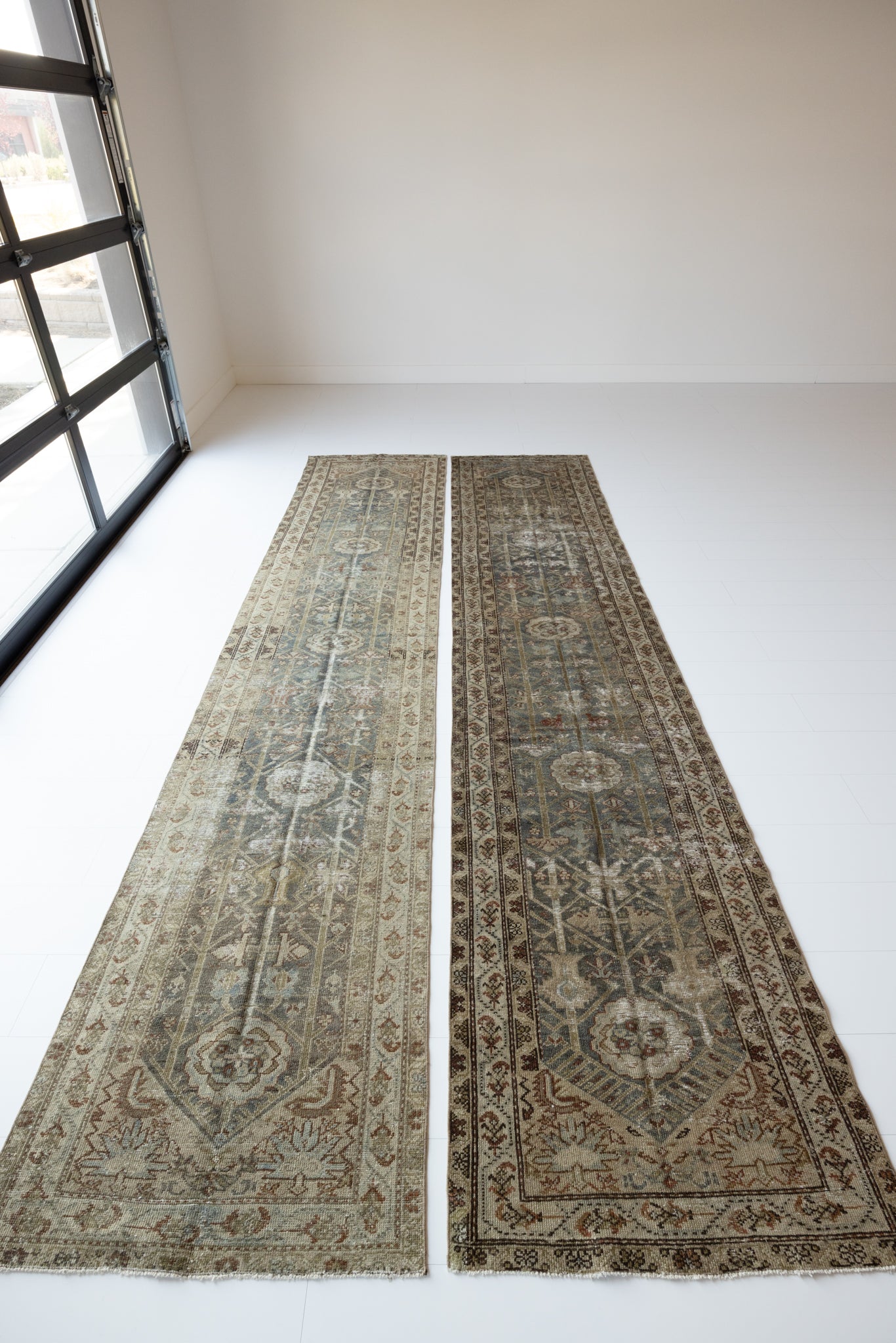 Both rugs have the same color palette, however, Shazia 1 is slightly more faded overall than Shazia 2. The natural light in our studio may make the color saturation difference between the two runners appear more pronounced than it truly is. Please keep in mind that this difference will look less distinct in your home, and the rugs will likely appear more similar in color and saturation