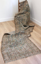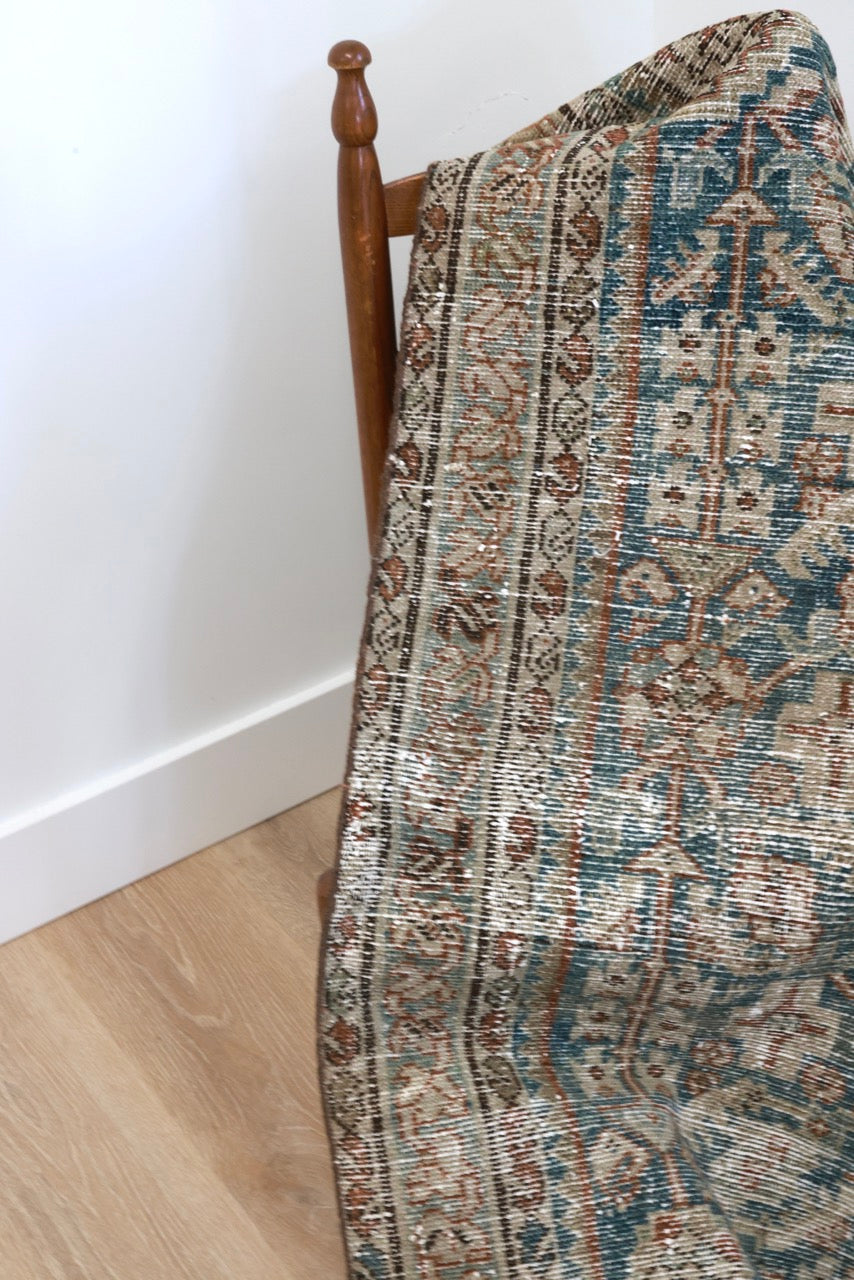 Because of the nature of this item, there may be slight imperfections in its wear, shape, dimensions, and color. Our rugs have been repaired over the years using various techniques. There might be evidence of these repairs through texture, look and feel. This is all part of the rich history and story of each artistic piece. These markings are not considered defective.