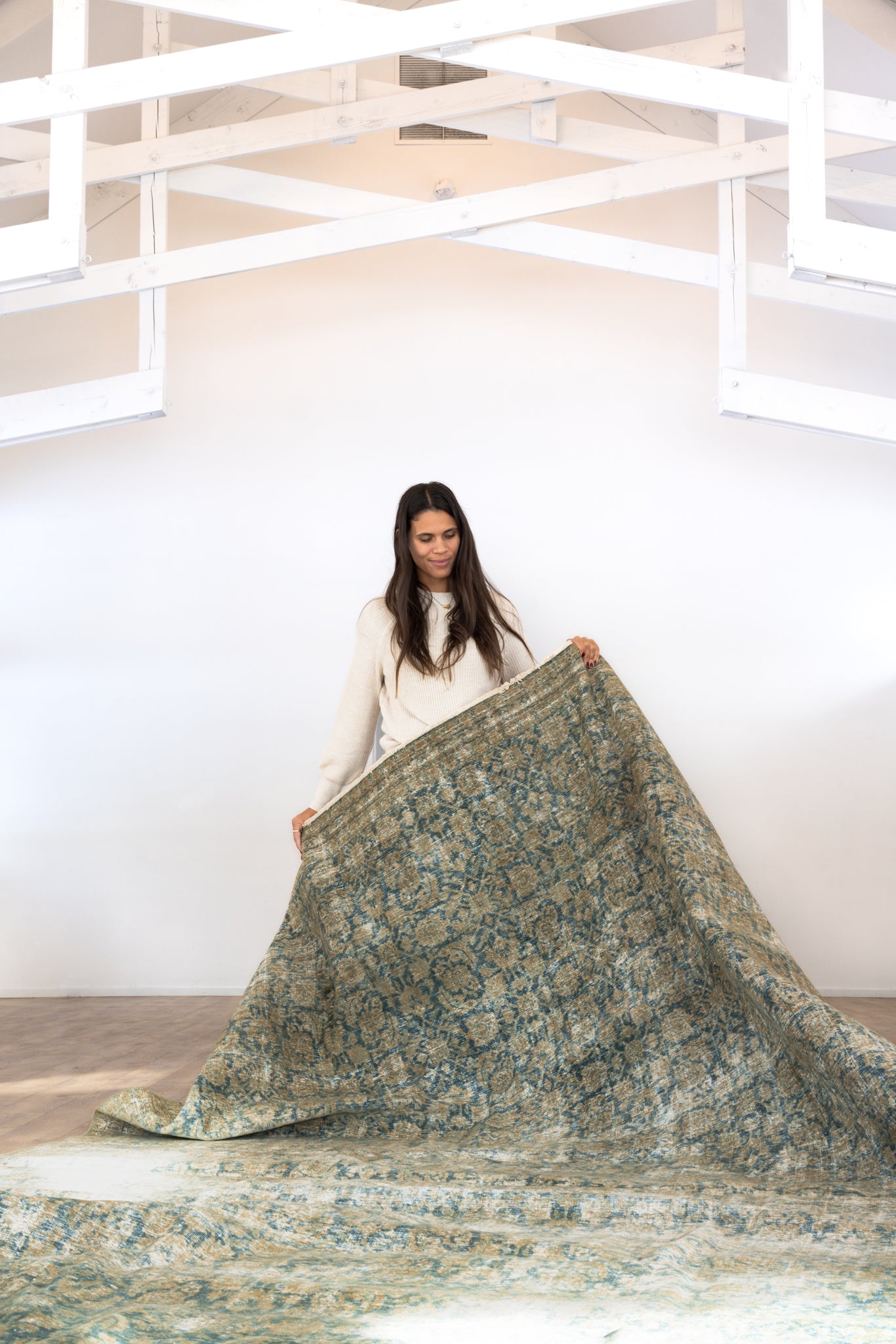 Because of the nature of this item, there may be slight imperfections in its wear, shape, dimensions, and color. Our rugs have been repaired over the years, using various techniques. There might be evidence of these repairs through texture, look and feel. This is all part of the rich history and story of each artistic piece. These markings are not considered defective.