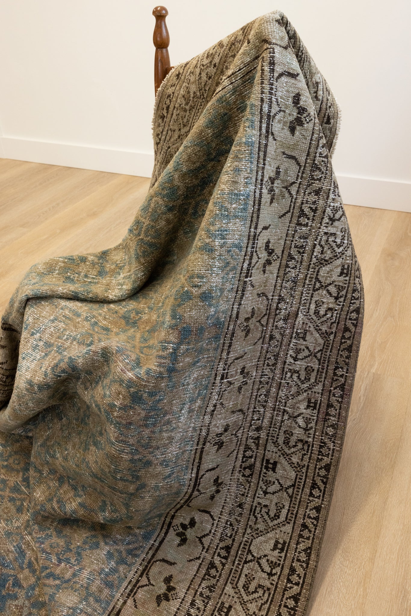 Because of the nature of this item, there may be slight imperfections in its wear, shape, dimensions, and color. Our rugs have been repaired over the years, using various techniques. There might be evidence of these repairs through texture, look and feel. This is all part of the rich history and story of each artistic piece. These markings are not considered defective.