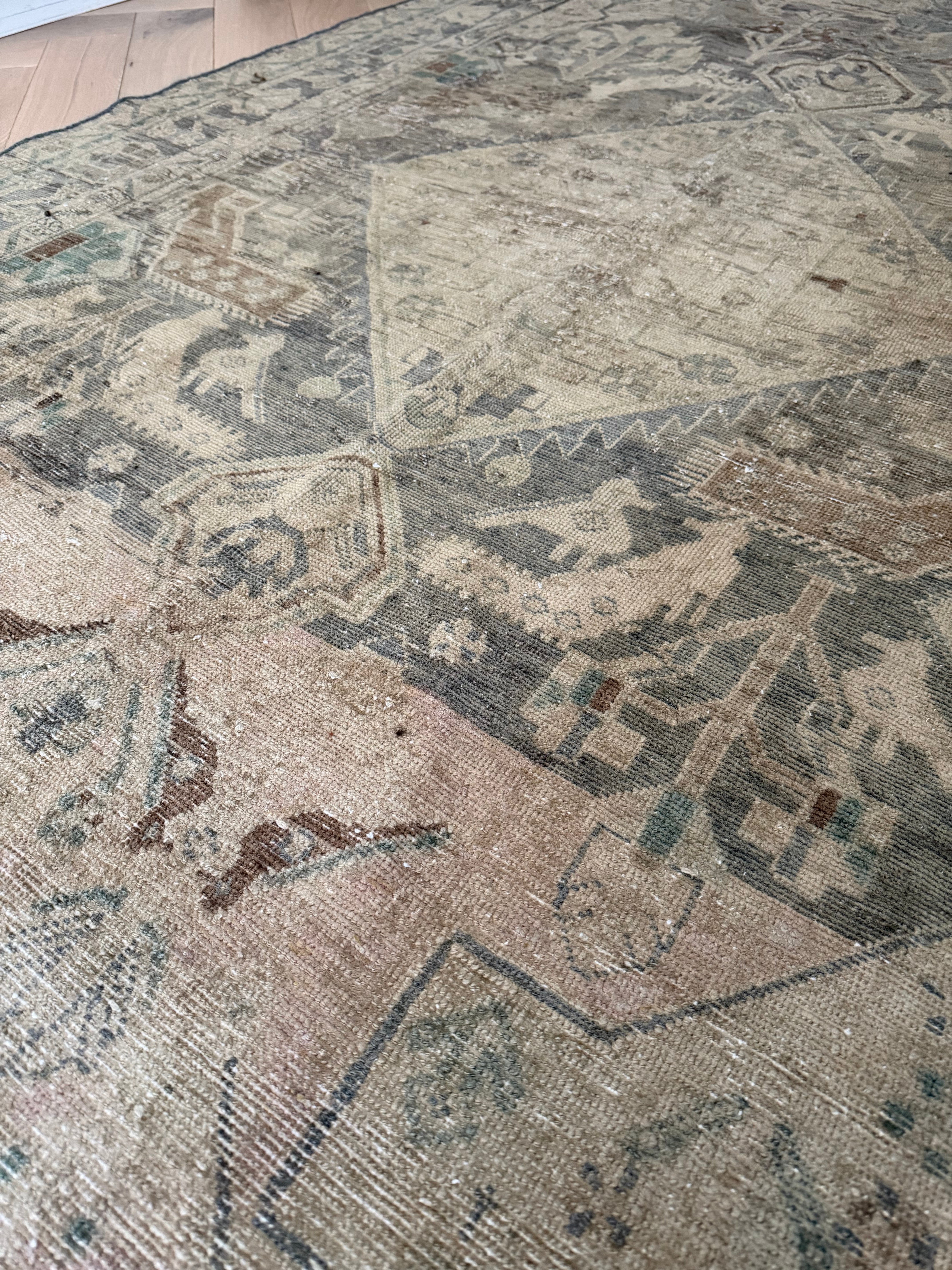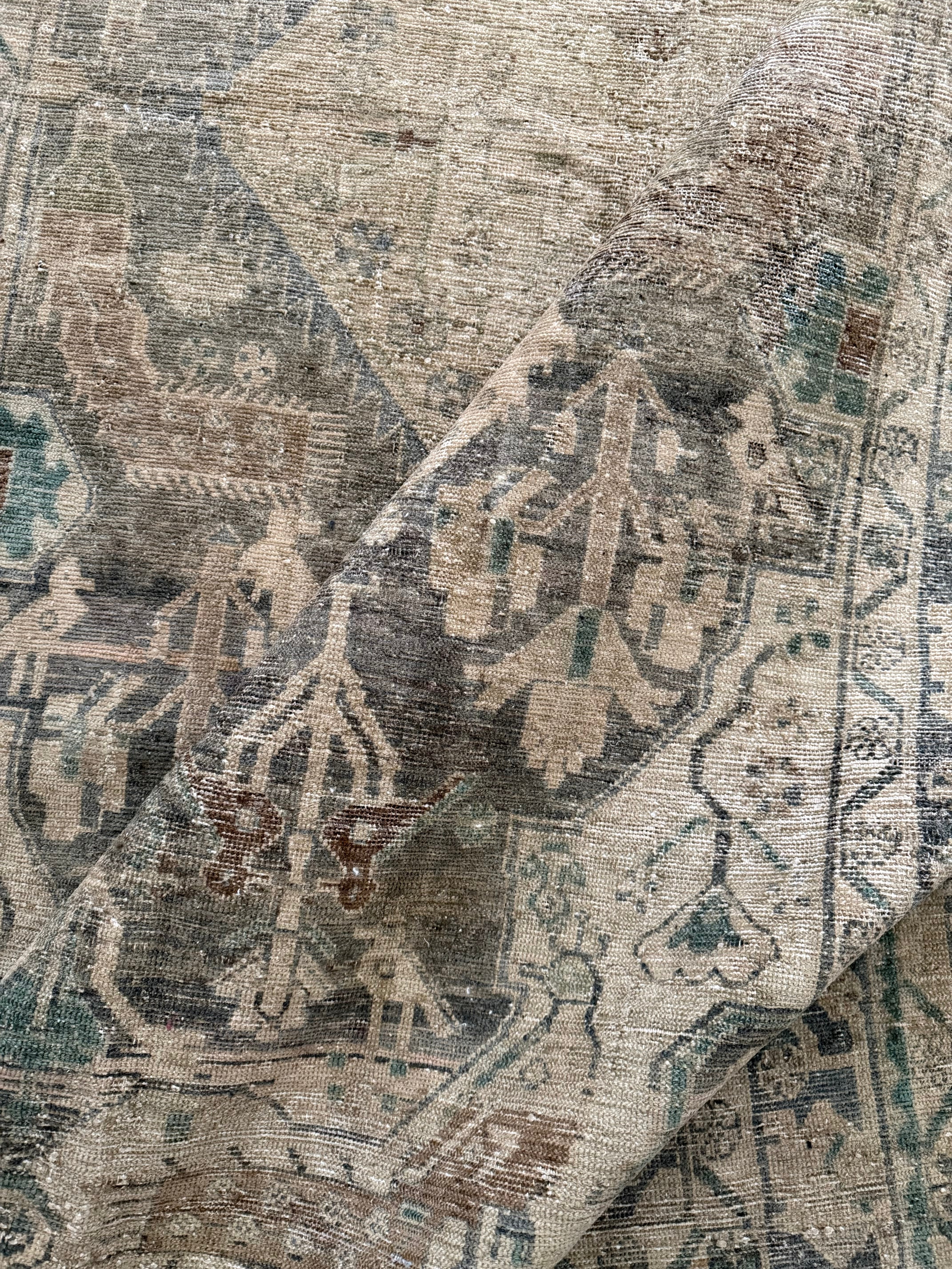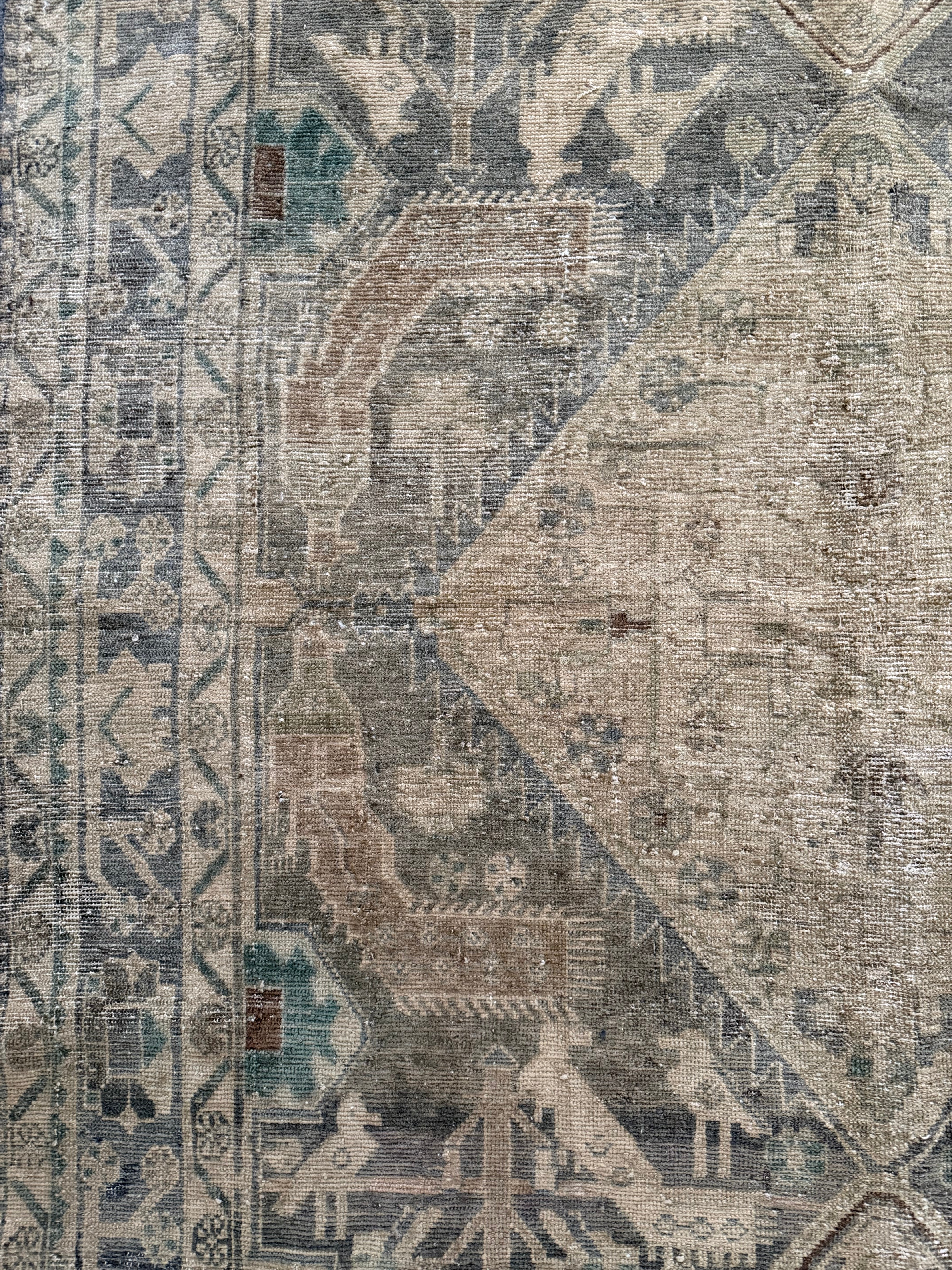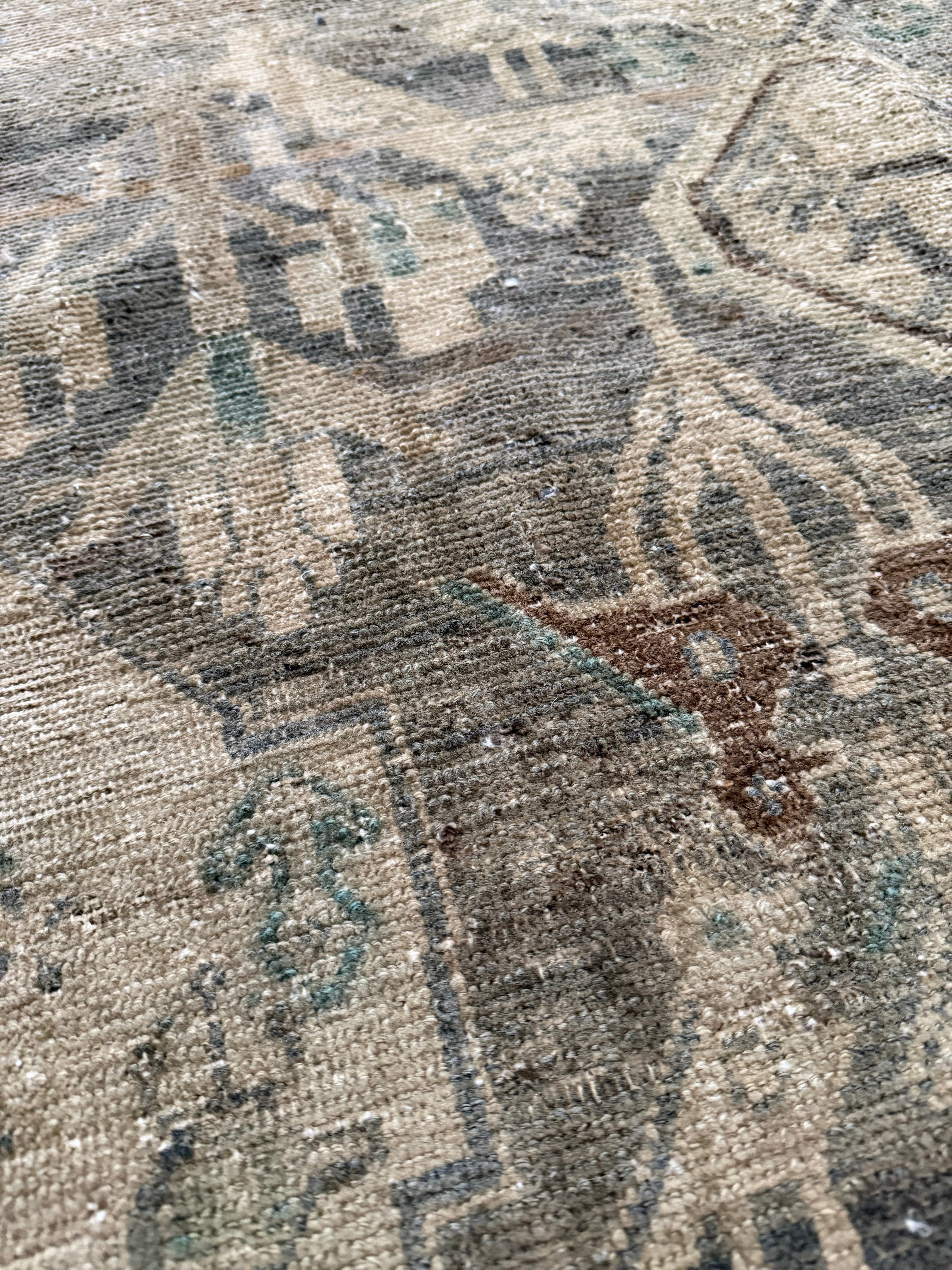 Because of the nature of this item, there may be slight imperfections in its wear, shape, dimensions, and color. Our rugs have been repaired over the years, using various techniques. There might be evidence of these repairs through texture, look and feel. This is all part of the rich history and story of each artistic piece. These markings are not considered defective.
