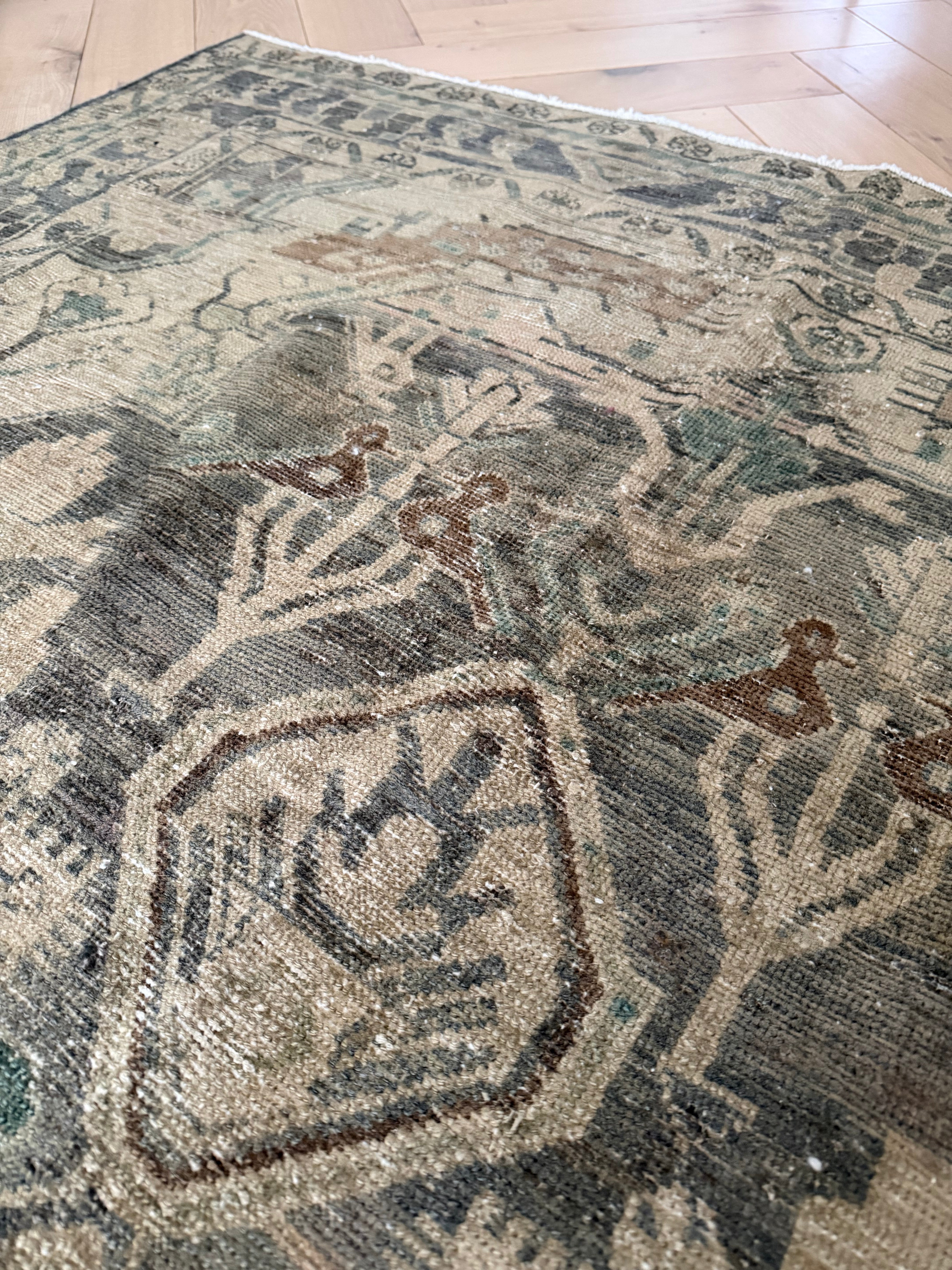 The screen of which you view these photos may change how this rug’s coloring is portrayed. On the iPhone, we recommend viewing these photos with “True Tone” turned off (you can turn this feature off by holding down on the brightness setting). Please note that the colors of the rug may appear differently depending on the lighting in your home.