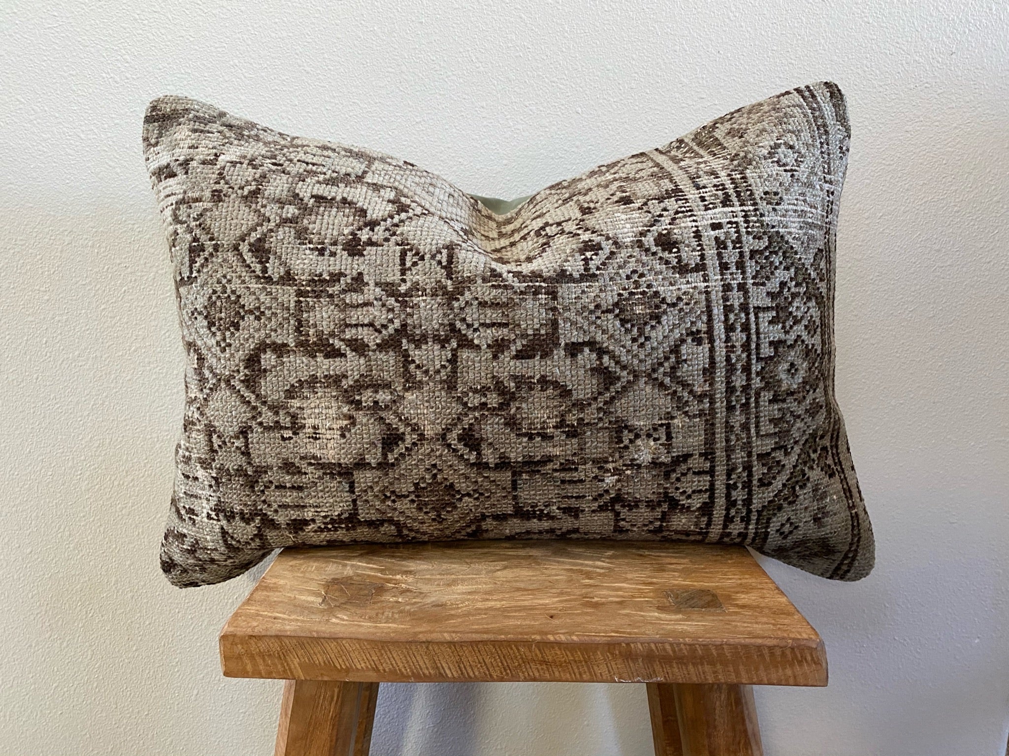 Photos were taken in natural daylight. Please note that the colors of the pillow cover may appear differently depending on the lighting in your home. Due to the nature of vintage rugs, there may be slight imperfections in its wear, dimensions, and color.