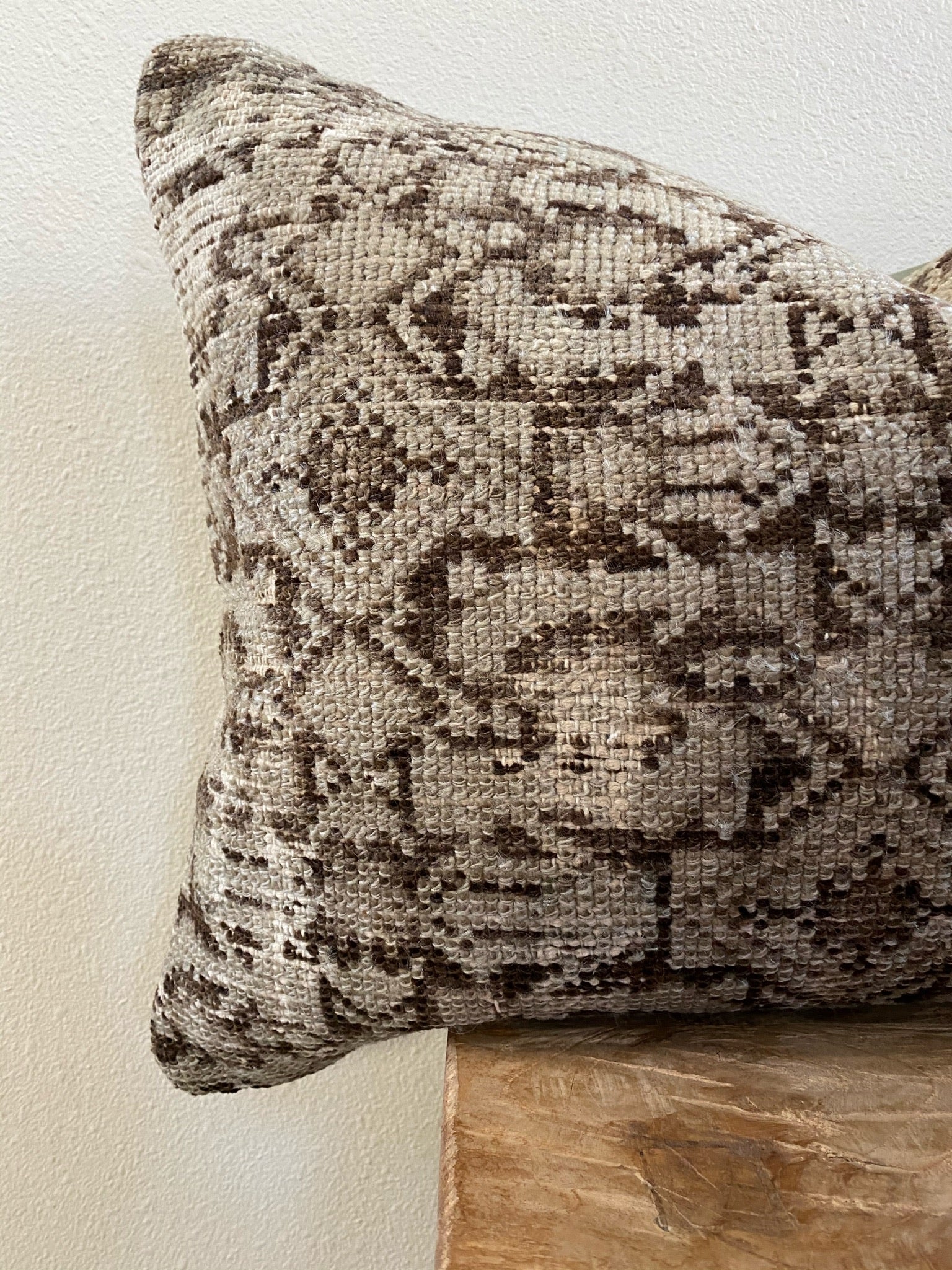 Front side of pillow is made from a vintage Persian rug that is 80-90 years old.