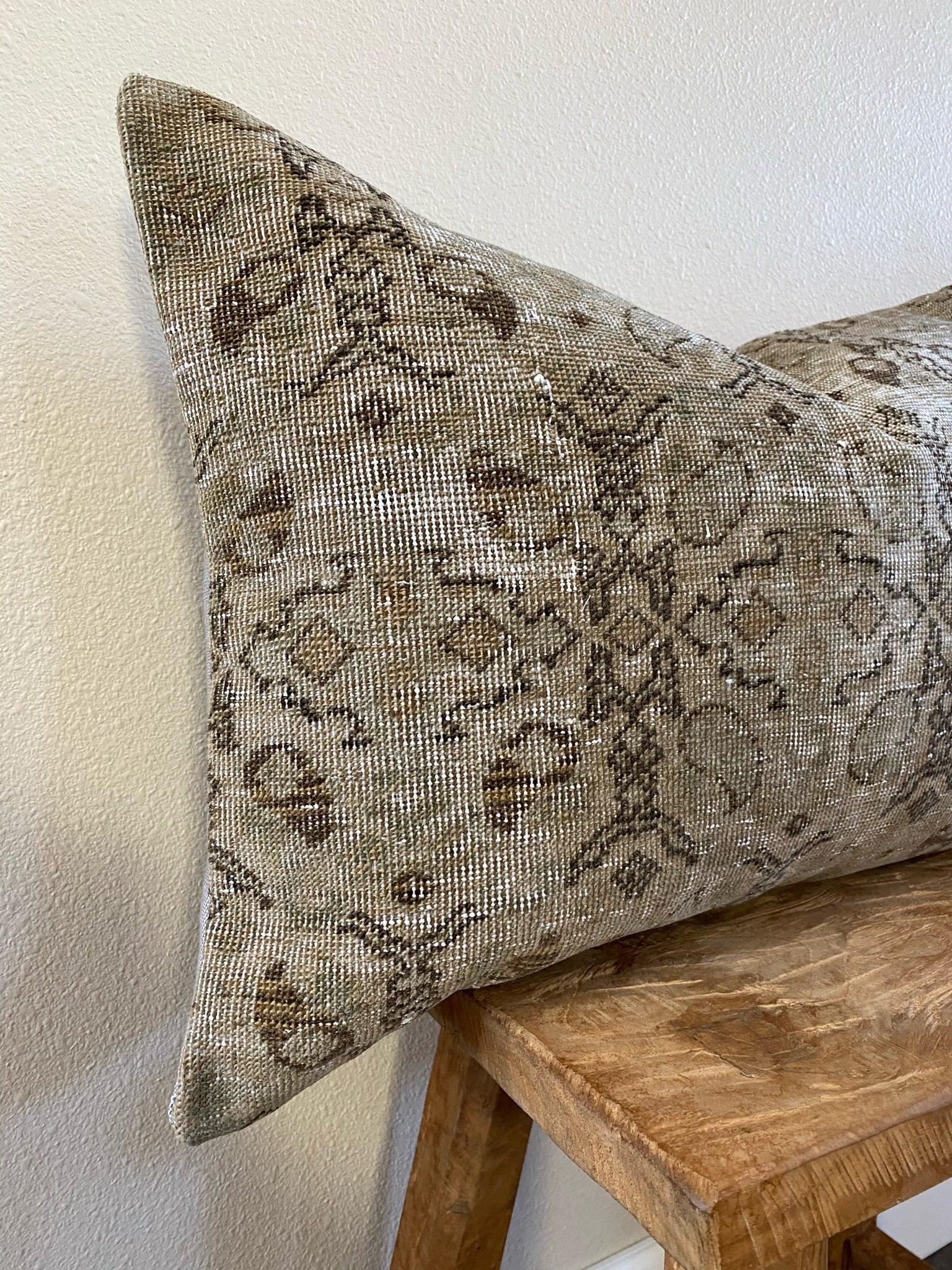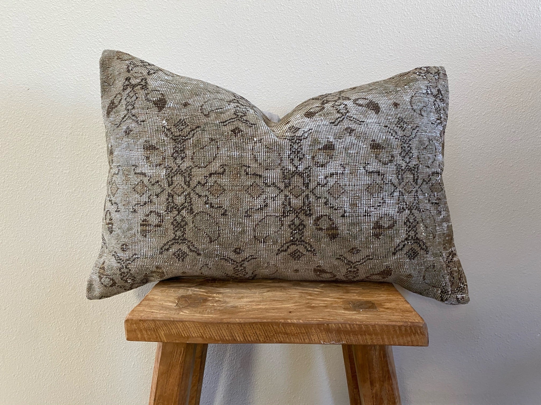 Photos were taken in natural daylight. Please note that the colors of the pillow cover may appear differently depending on the lighting in your home. Due to the nature of vintage rugs, there may be slight imperfections in its wear, dimensions, and color.