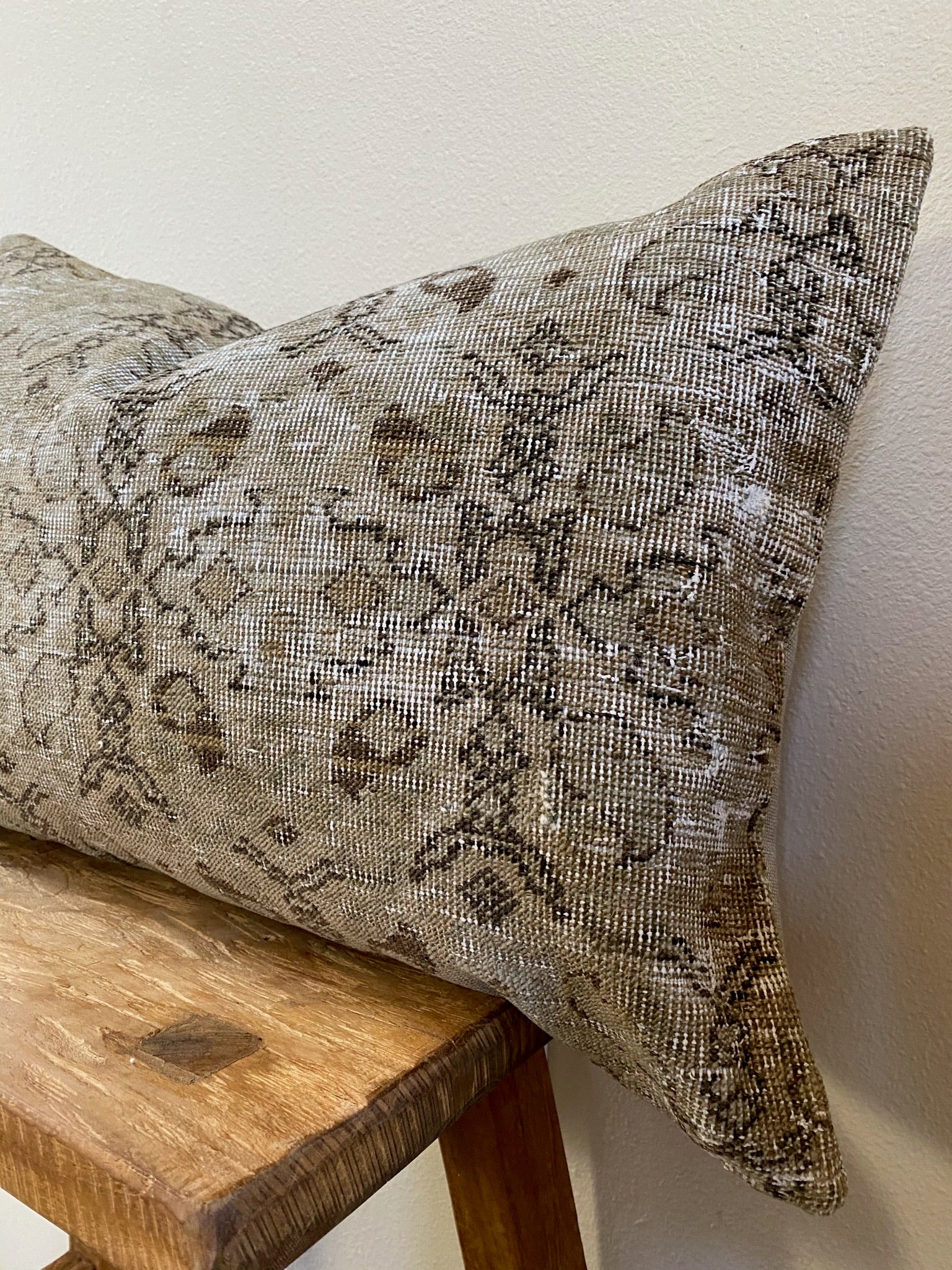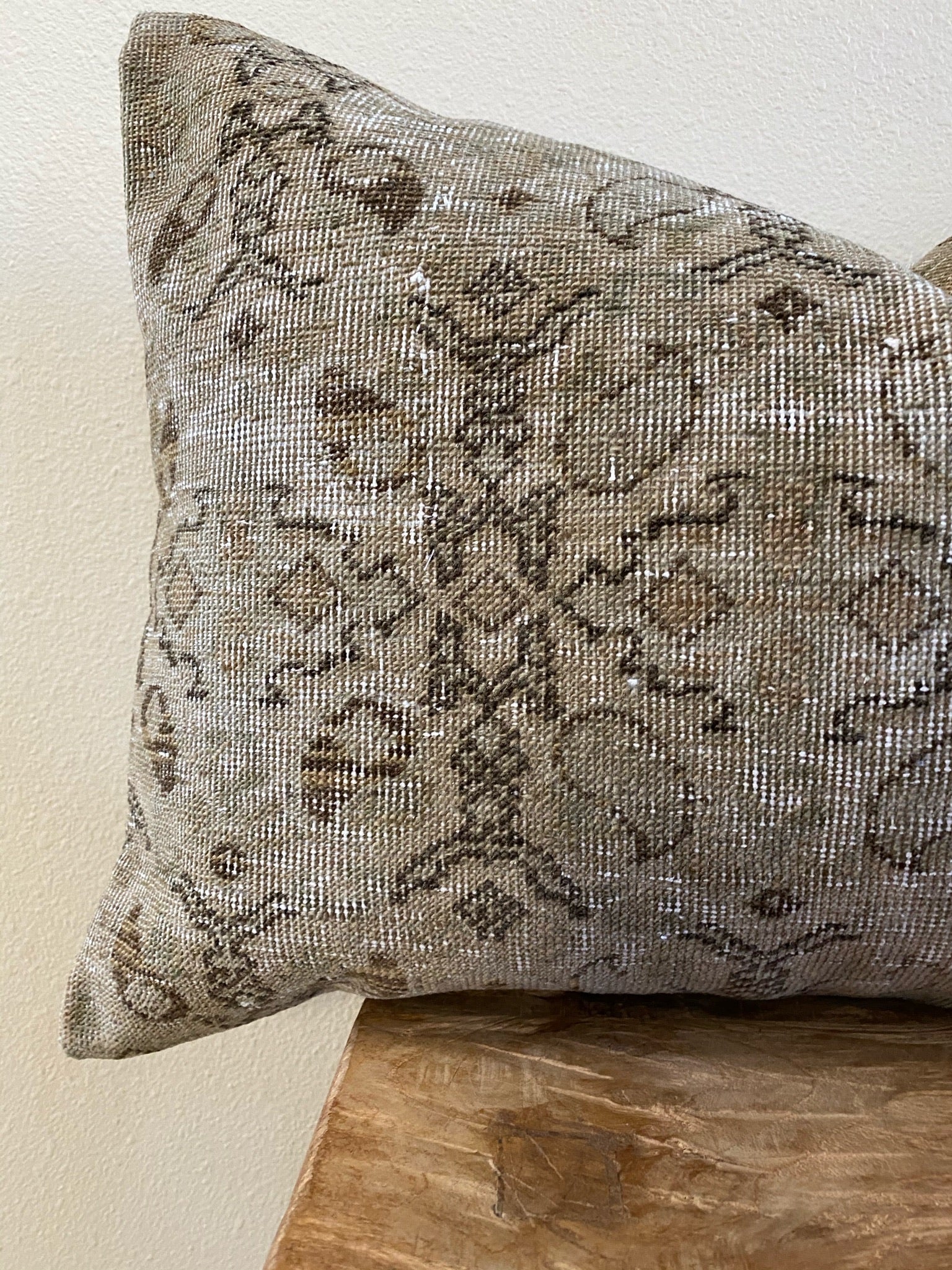 Front side of pillow is made from a vintage Persian rug that is 80-90 years old.