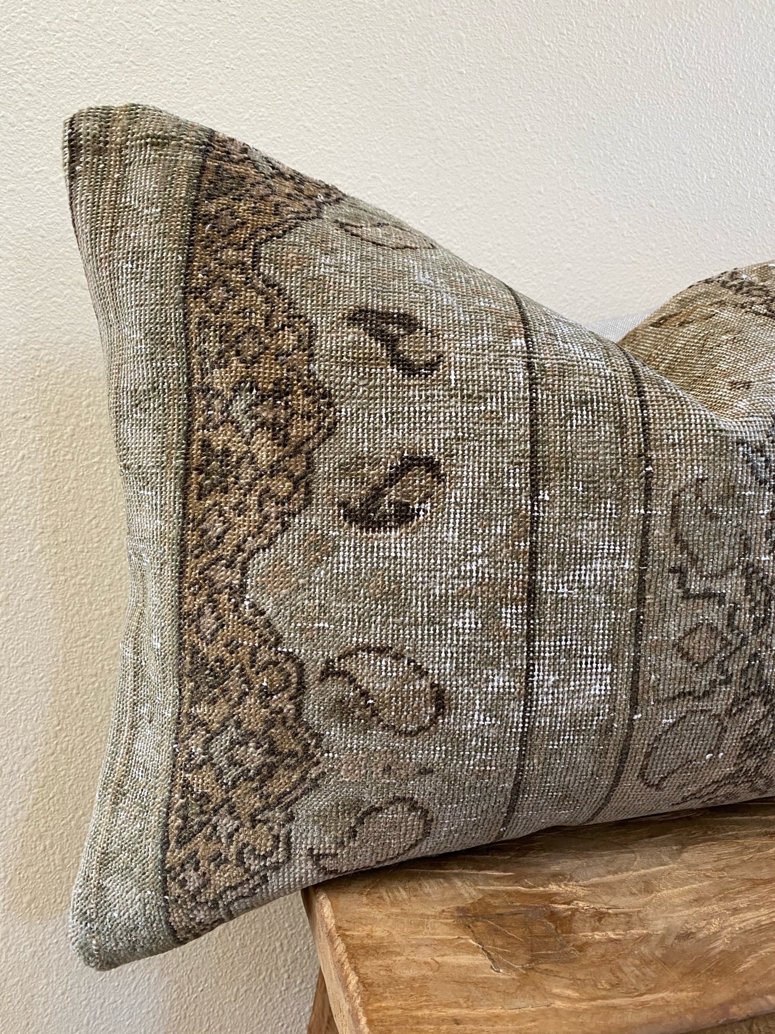Front side of pillow is made from a vintage Persian rug that is 80-90 years old.