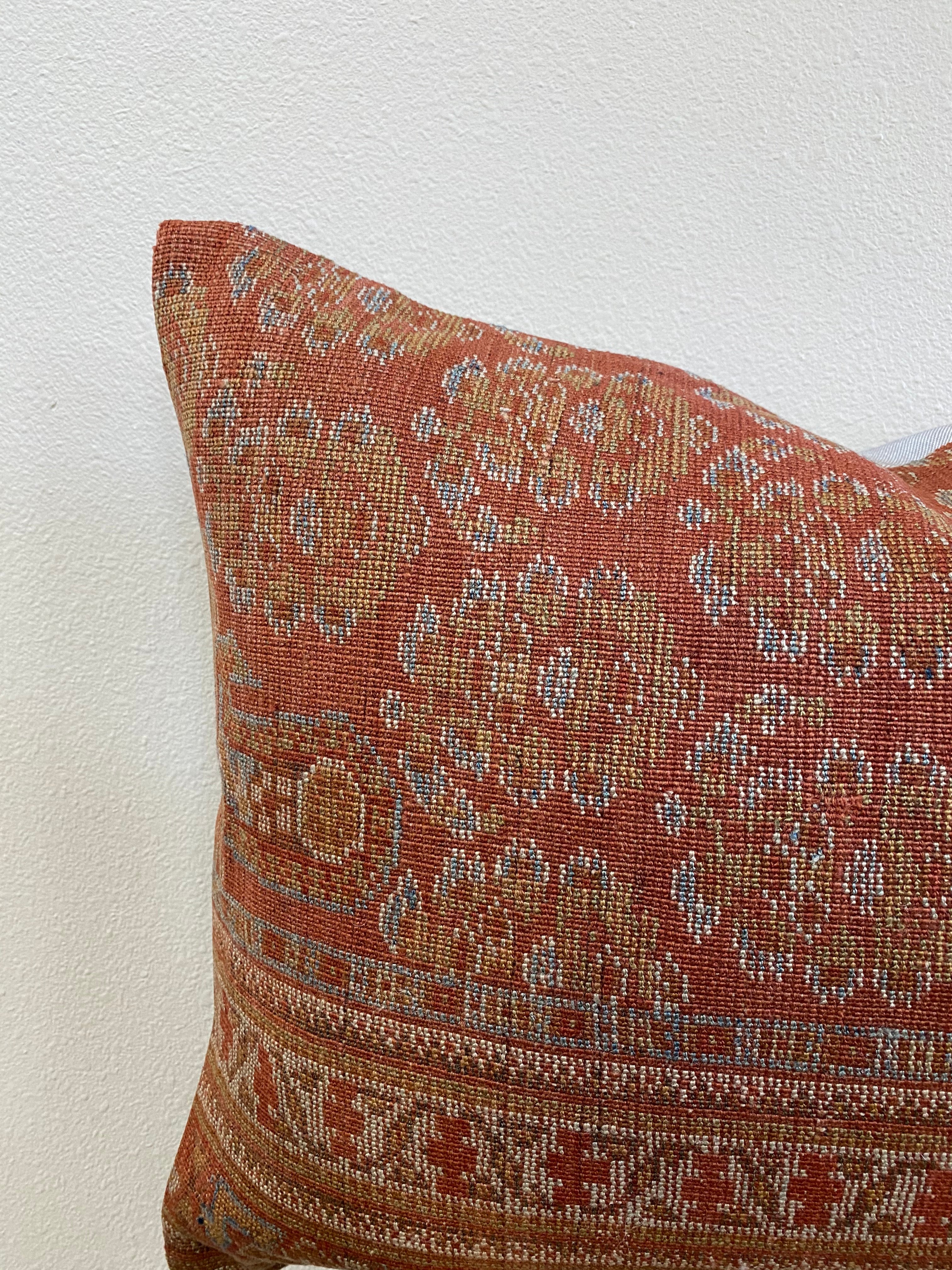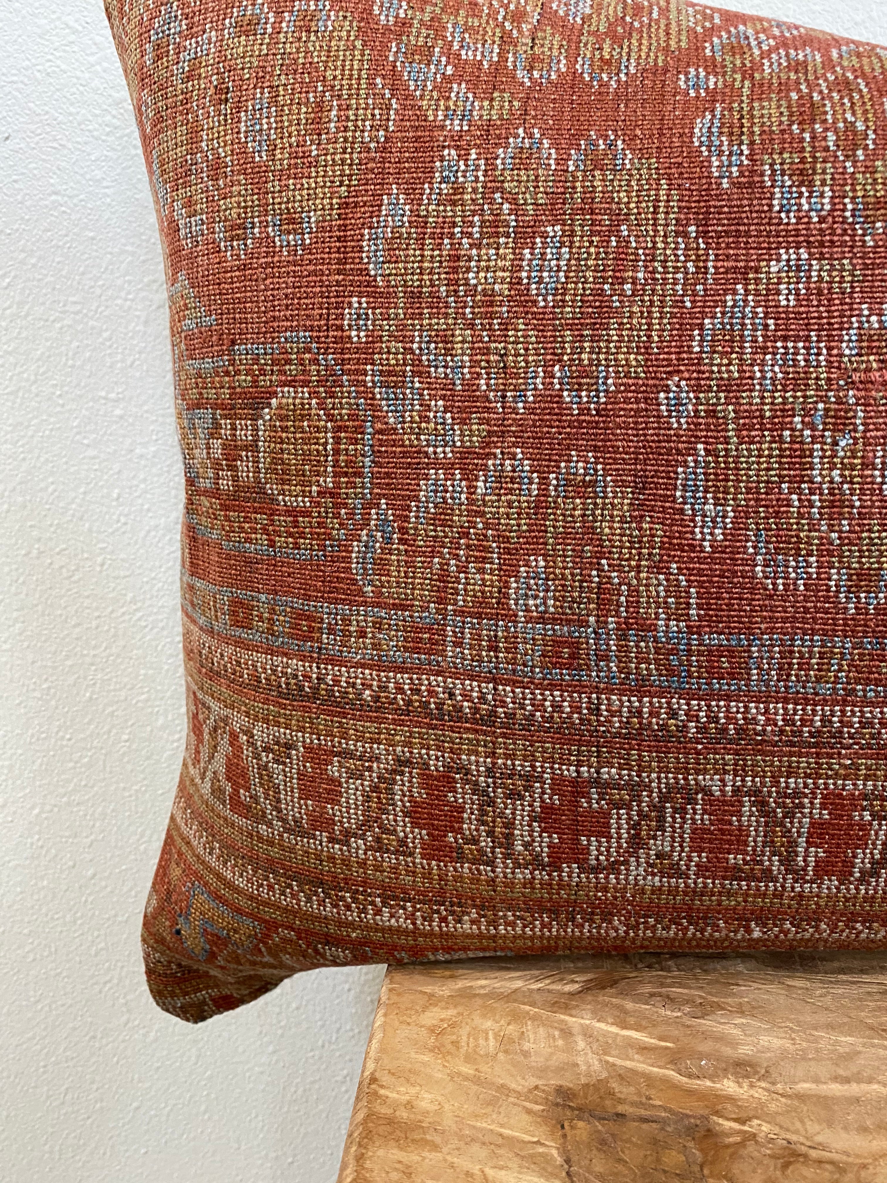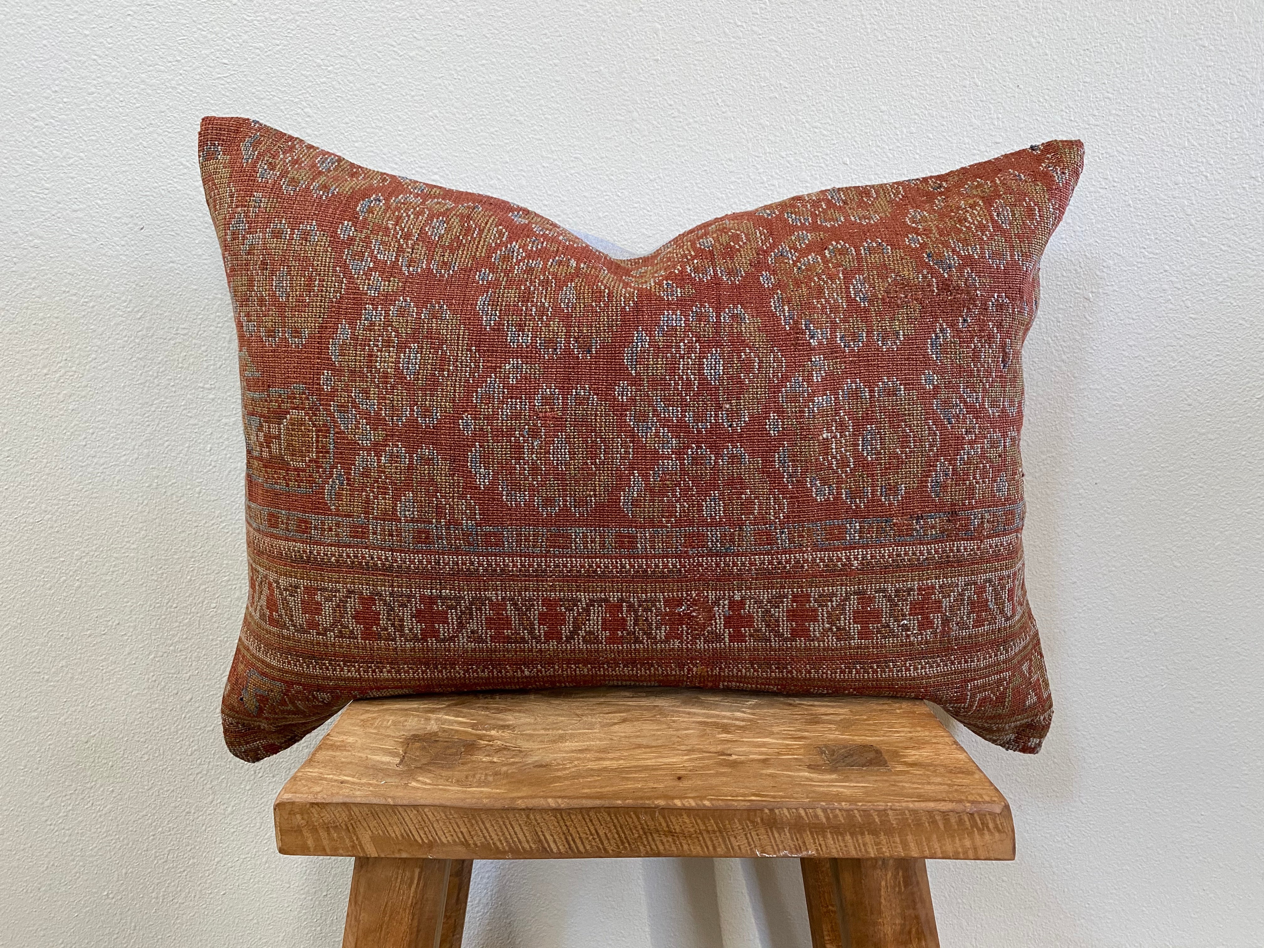 Front side of pillow is made from a vintage Persian rug that is 80-90 years old.