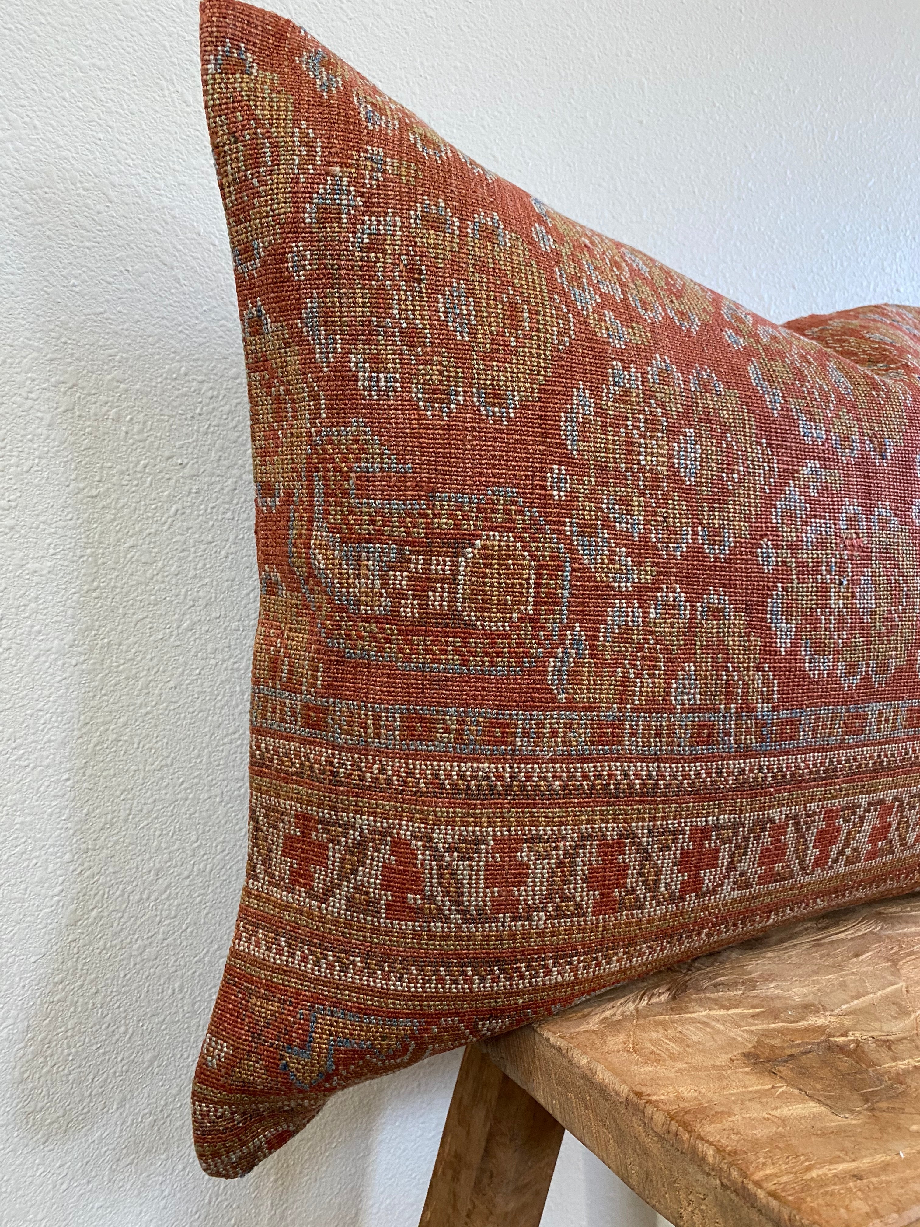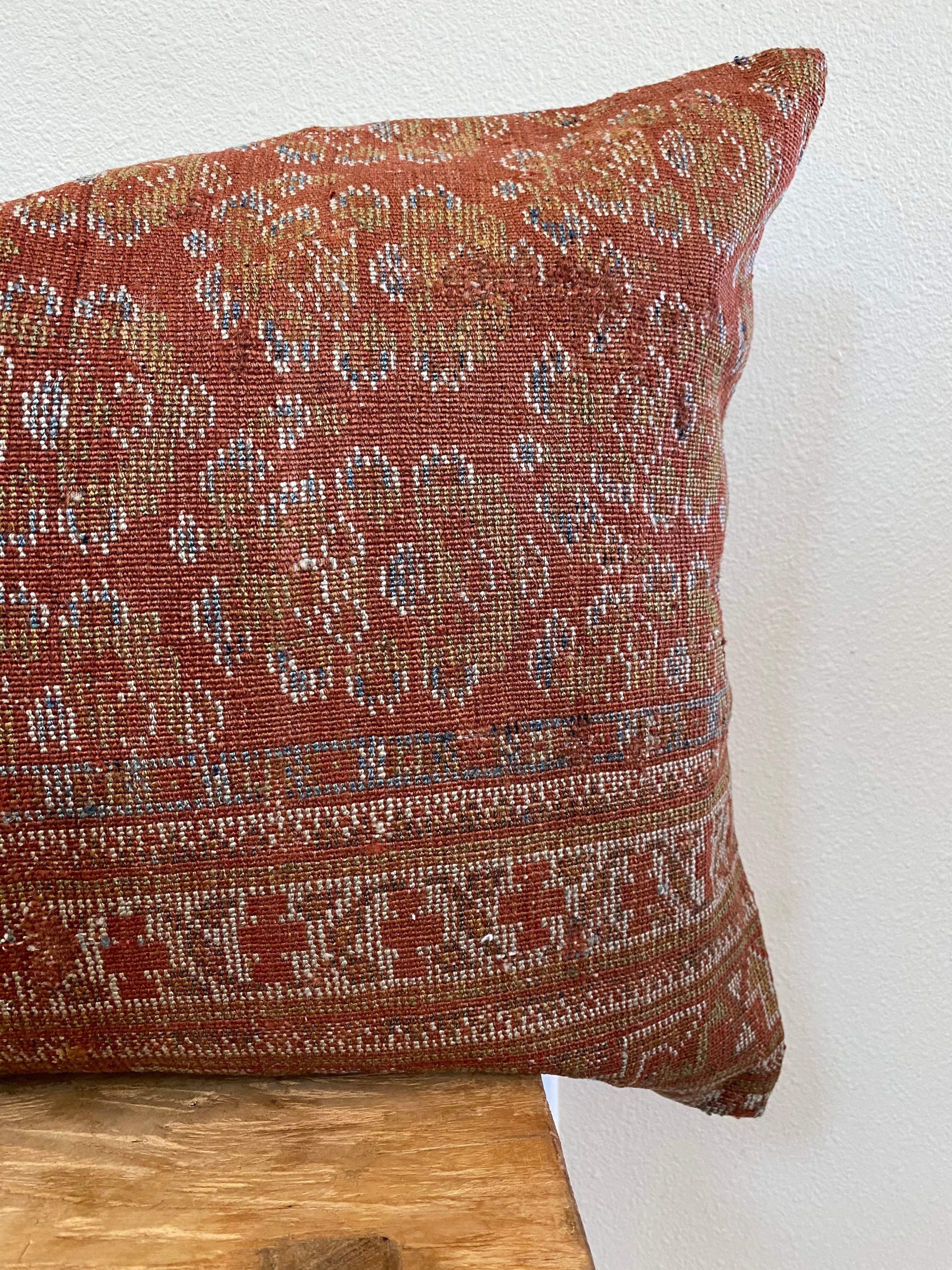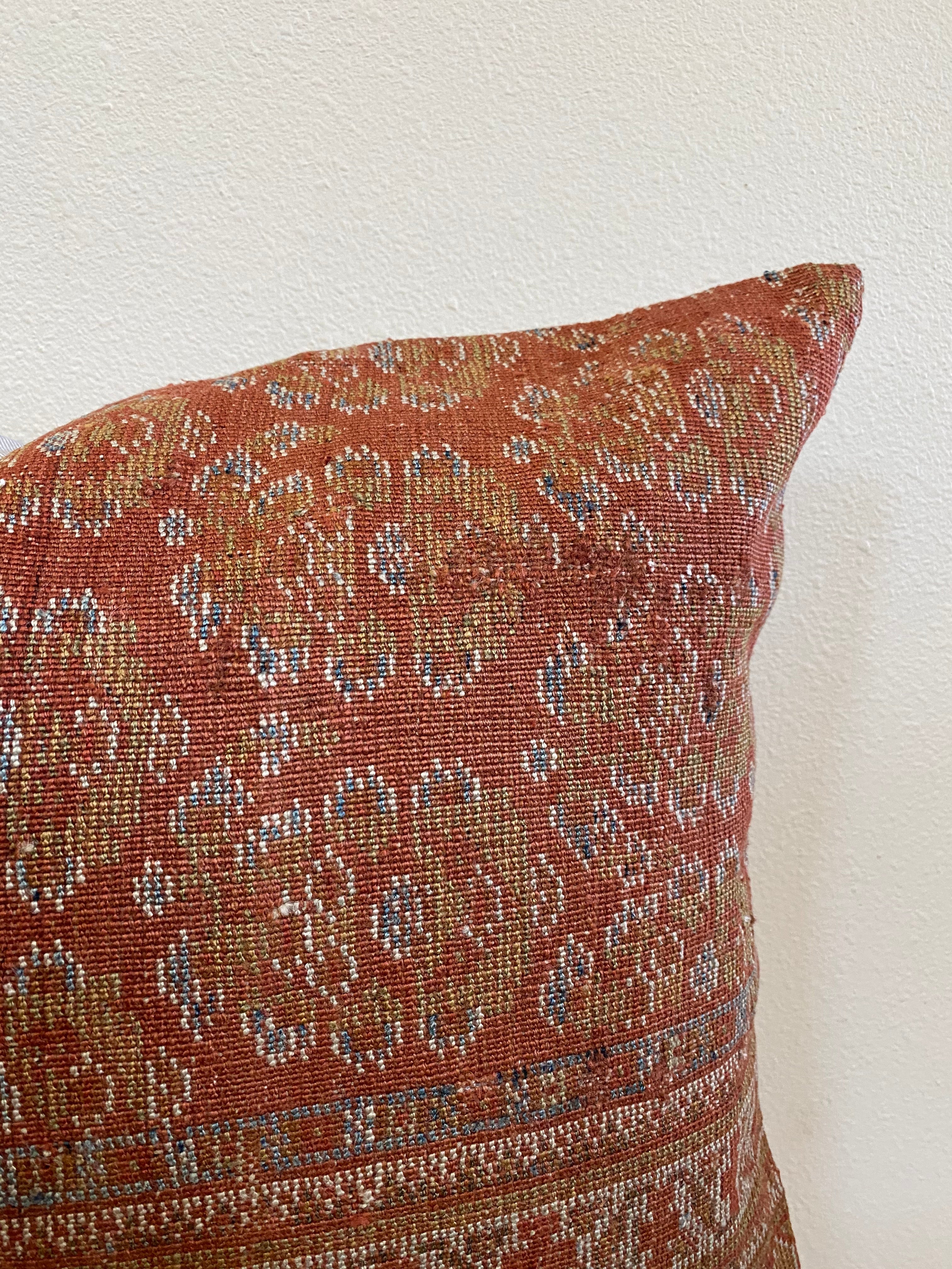 Front side of pillow is made from a vintage Persian rug that is 80-90 years old.