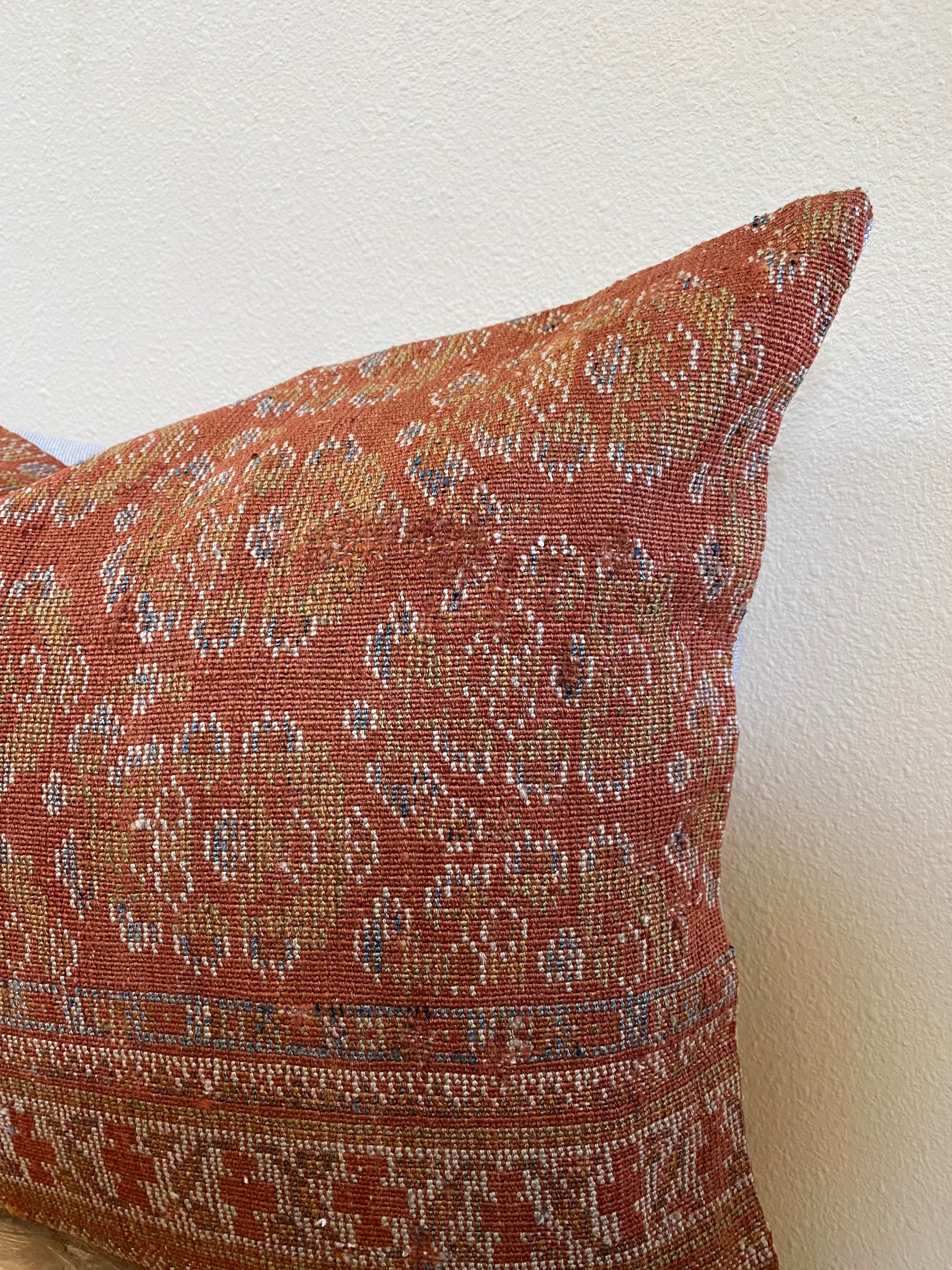 Photos were taken in natural daylight. Please note that the colors of the pillow cover may appear differently depending on the lighting in your home. Due to the nature of vintage rugs, there may be slight imperfections in its wear, dimensions, and color.