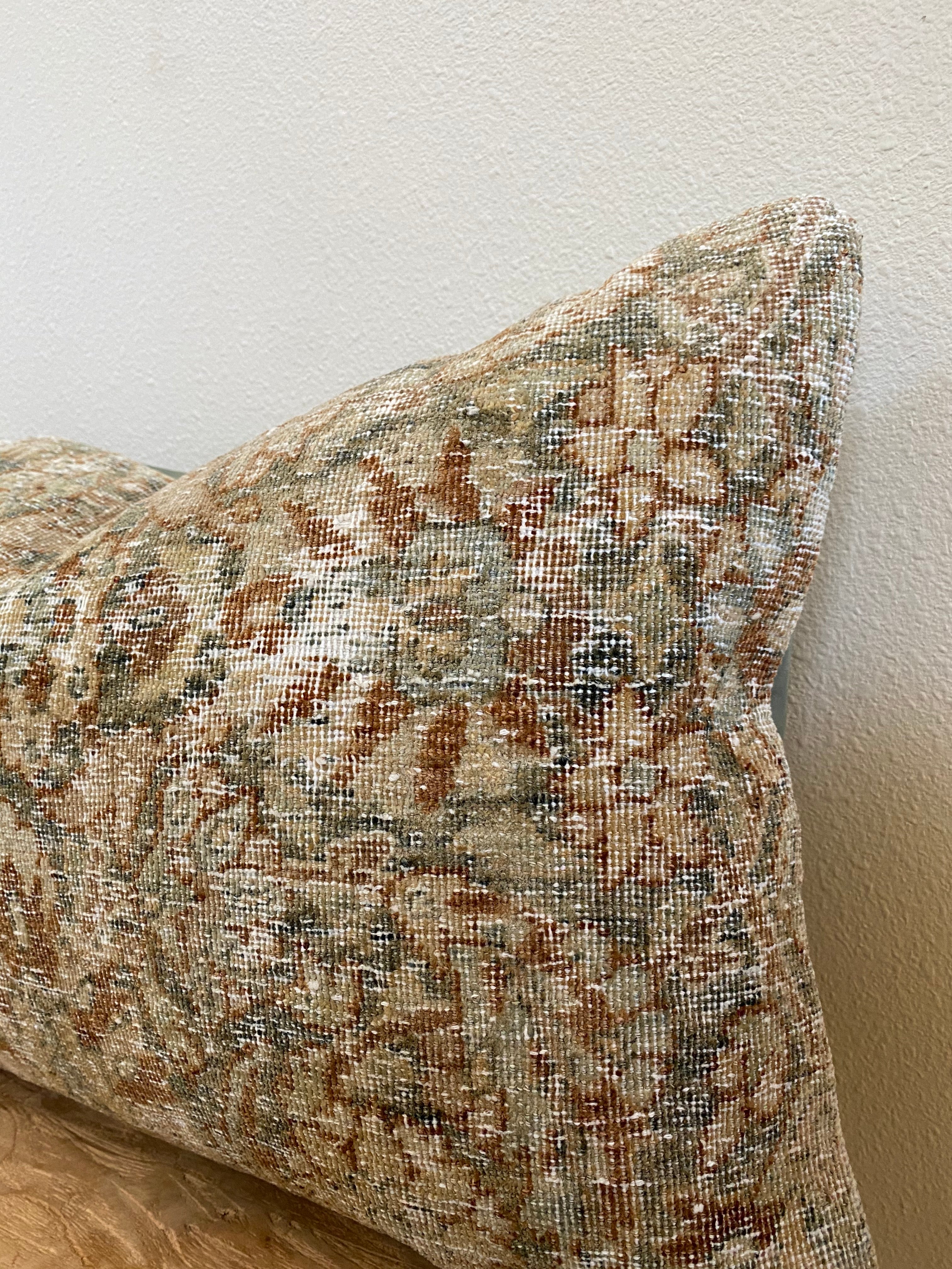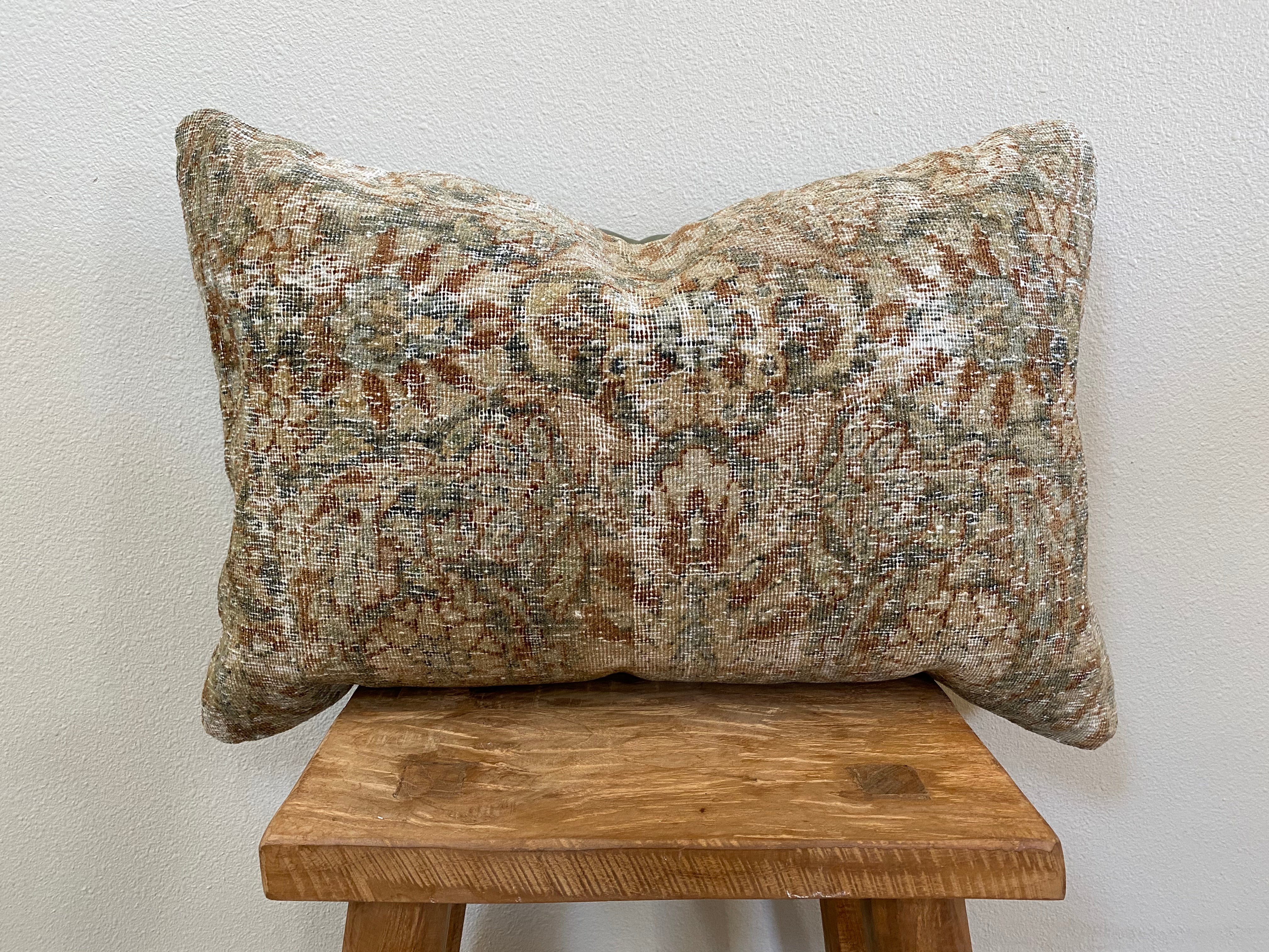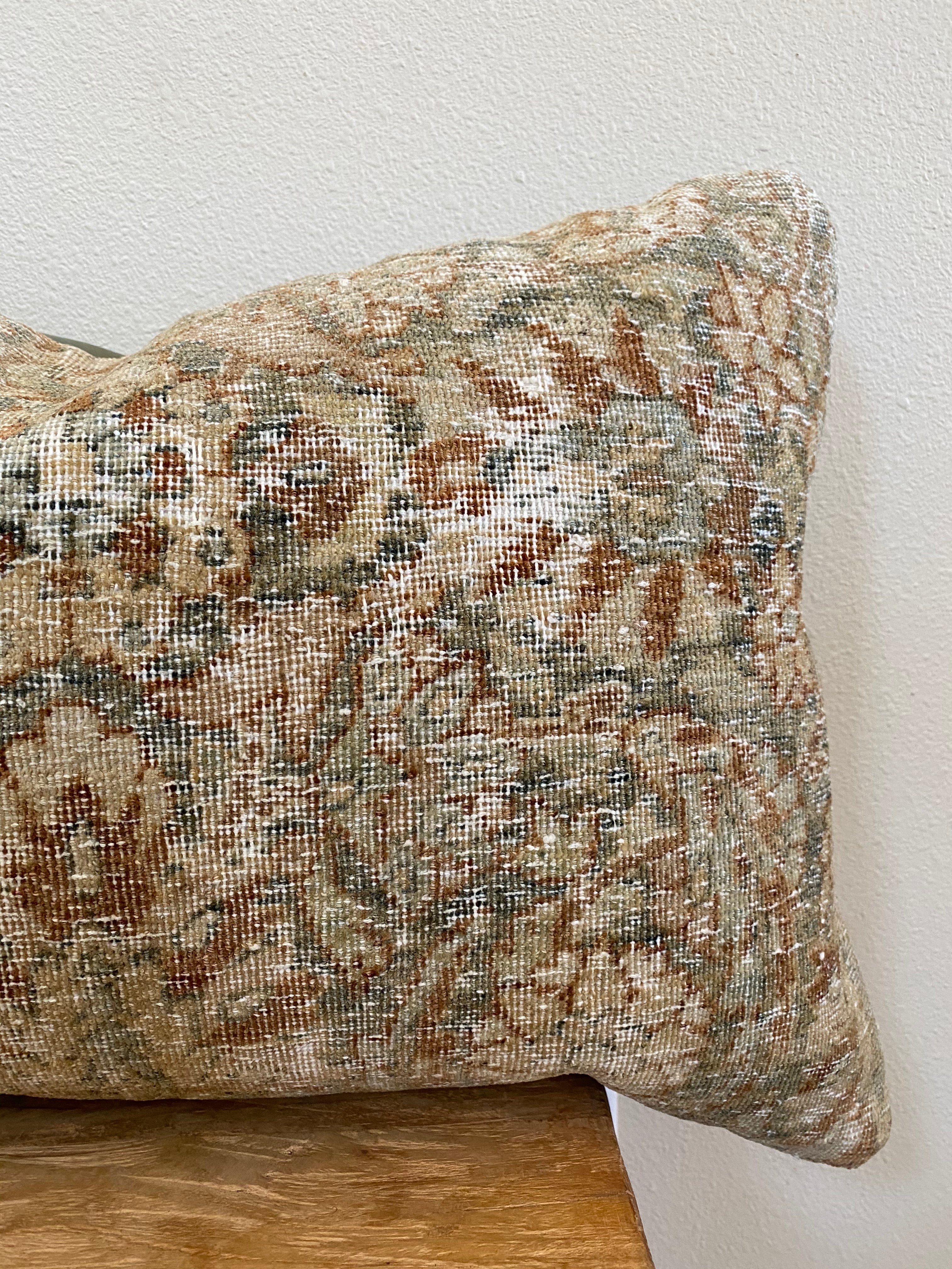 Front side of pillow is made from a vintage Persian rug that is 80-90 years old.