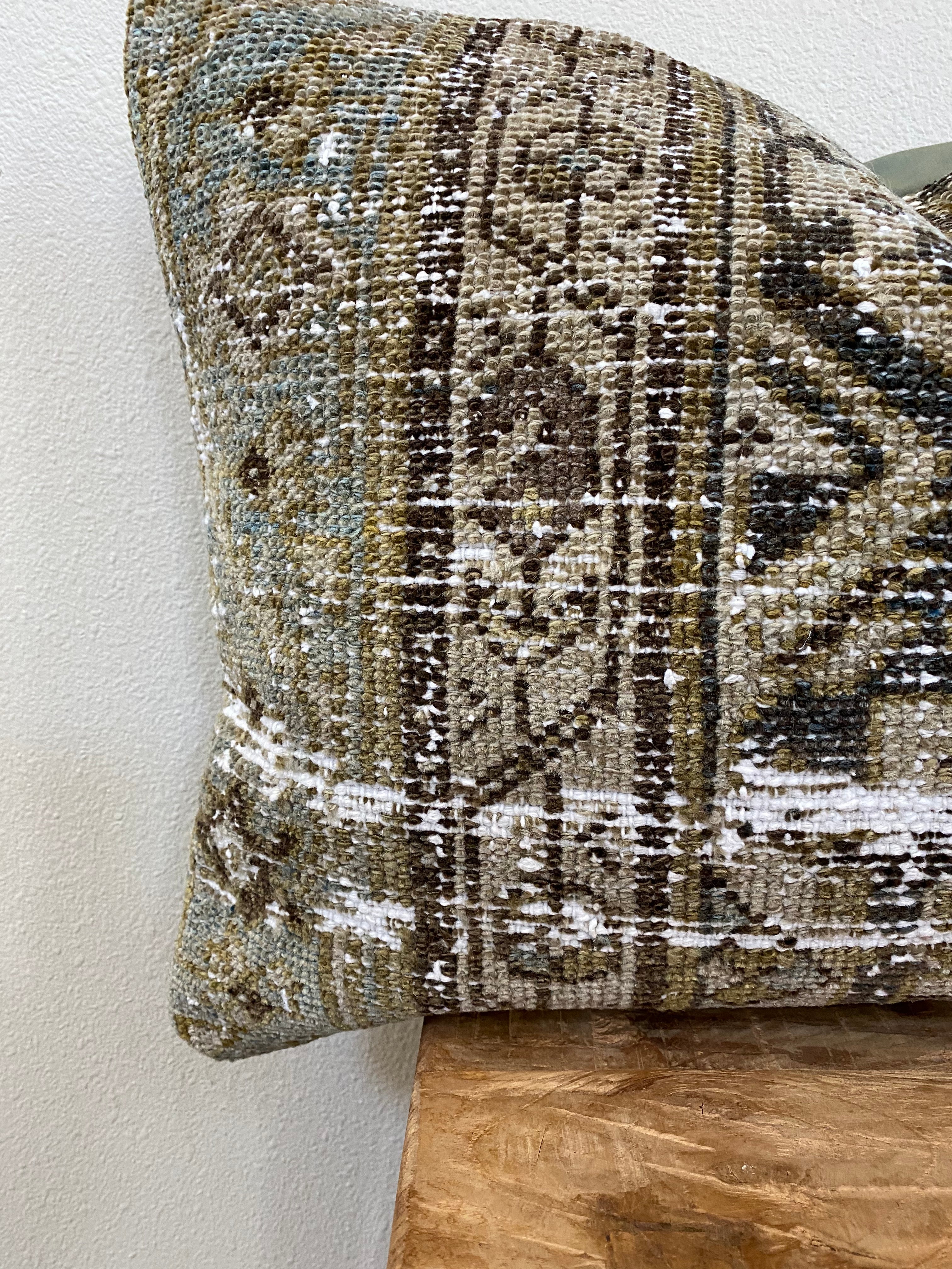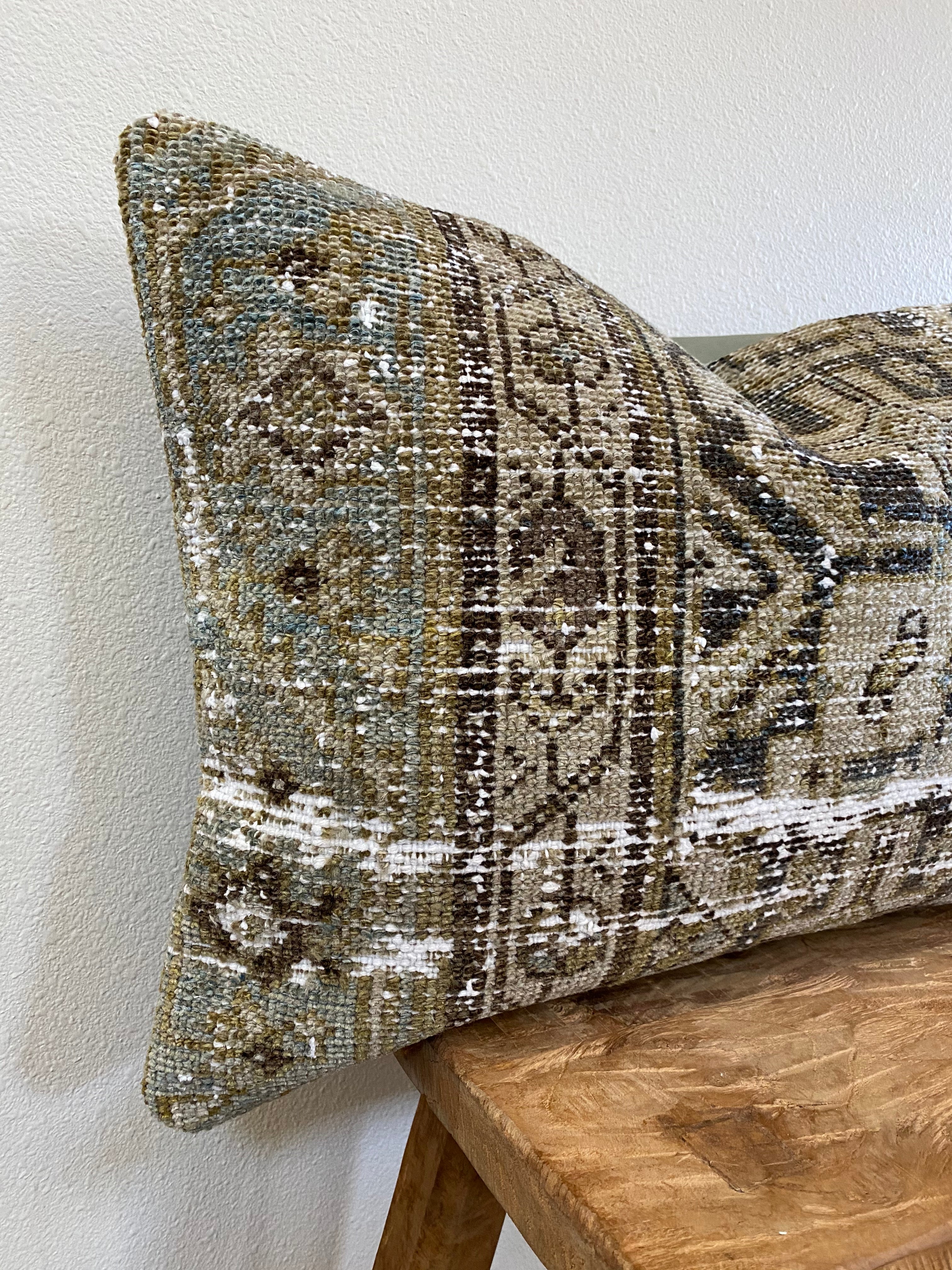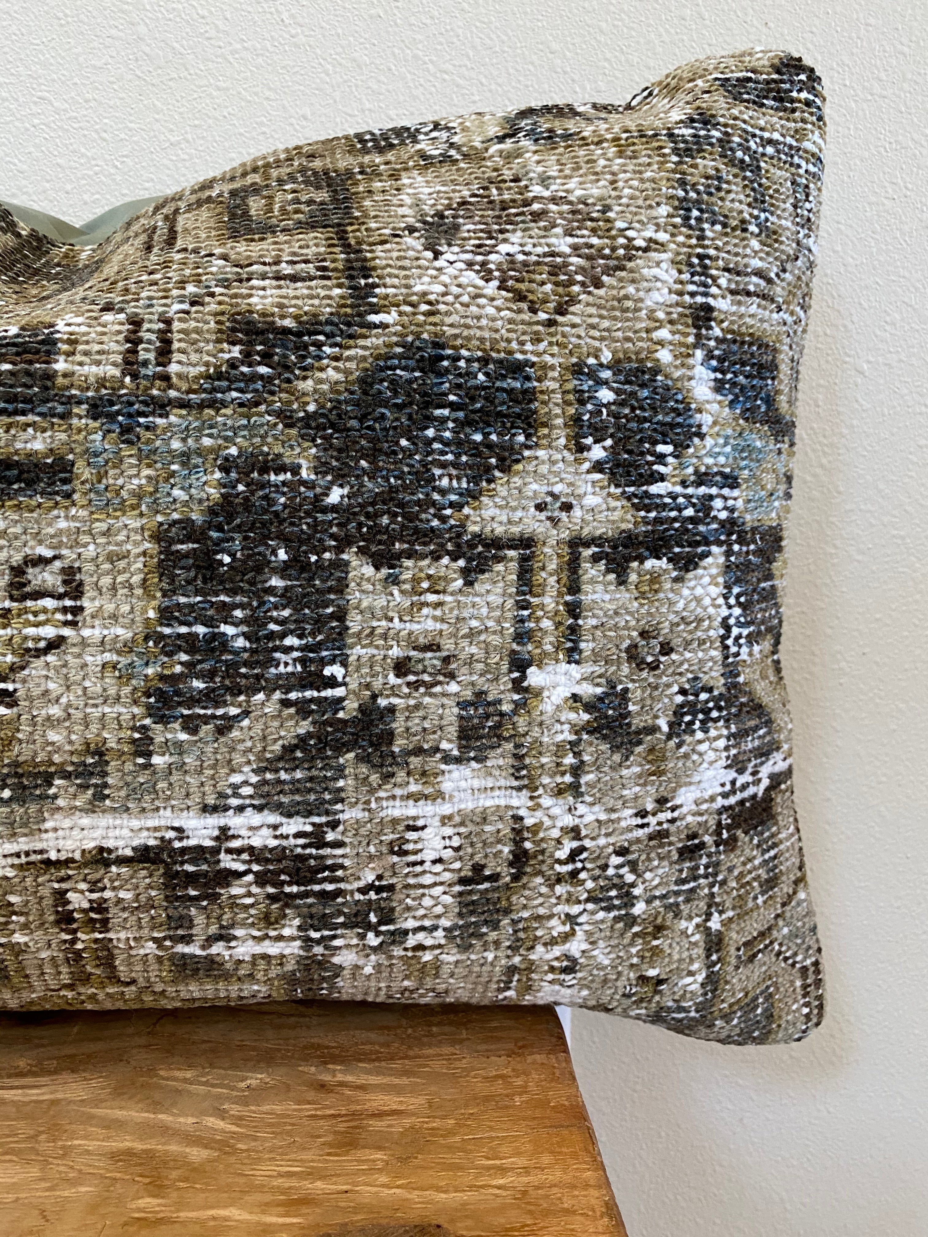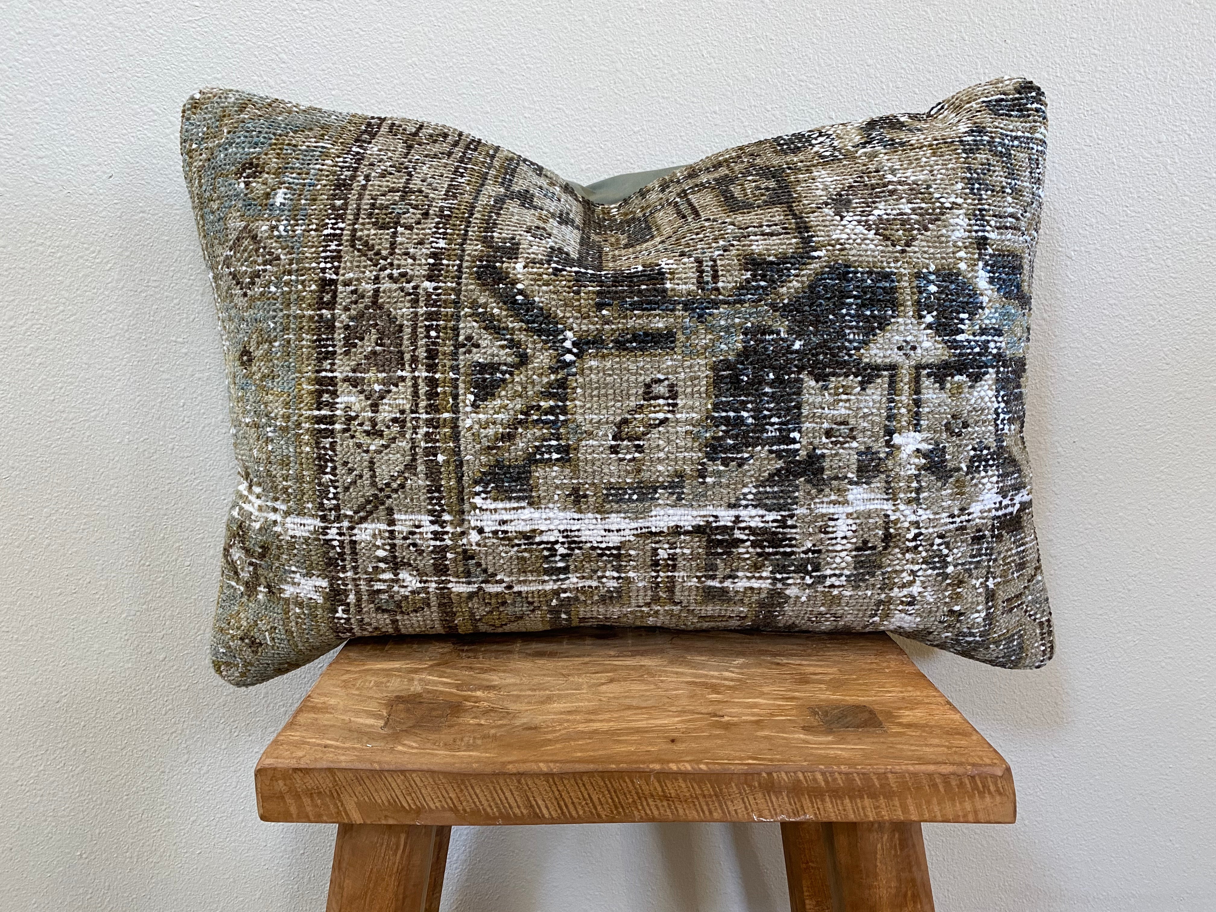 Front side of pillow is made from a vintage Persian rug that is 80-90 years old.