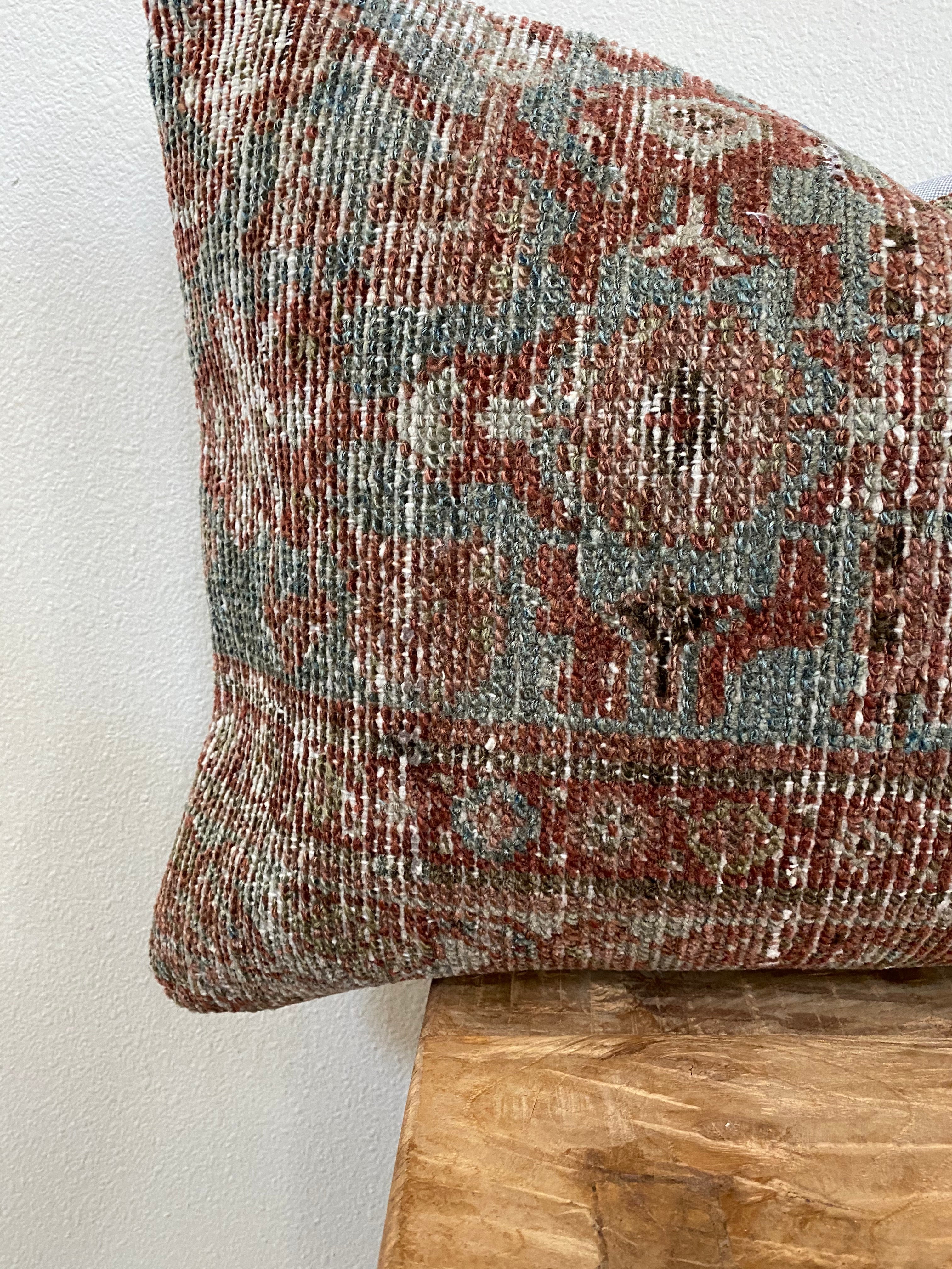 Front side of pillow is made from a vintage Persian rug that is 80-90 years old.