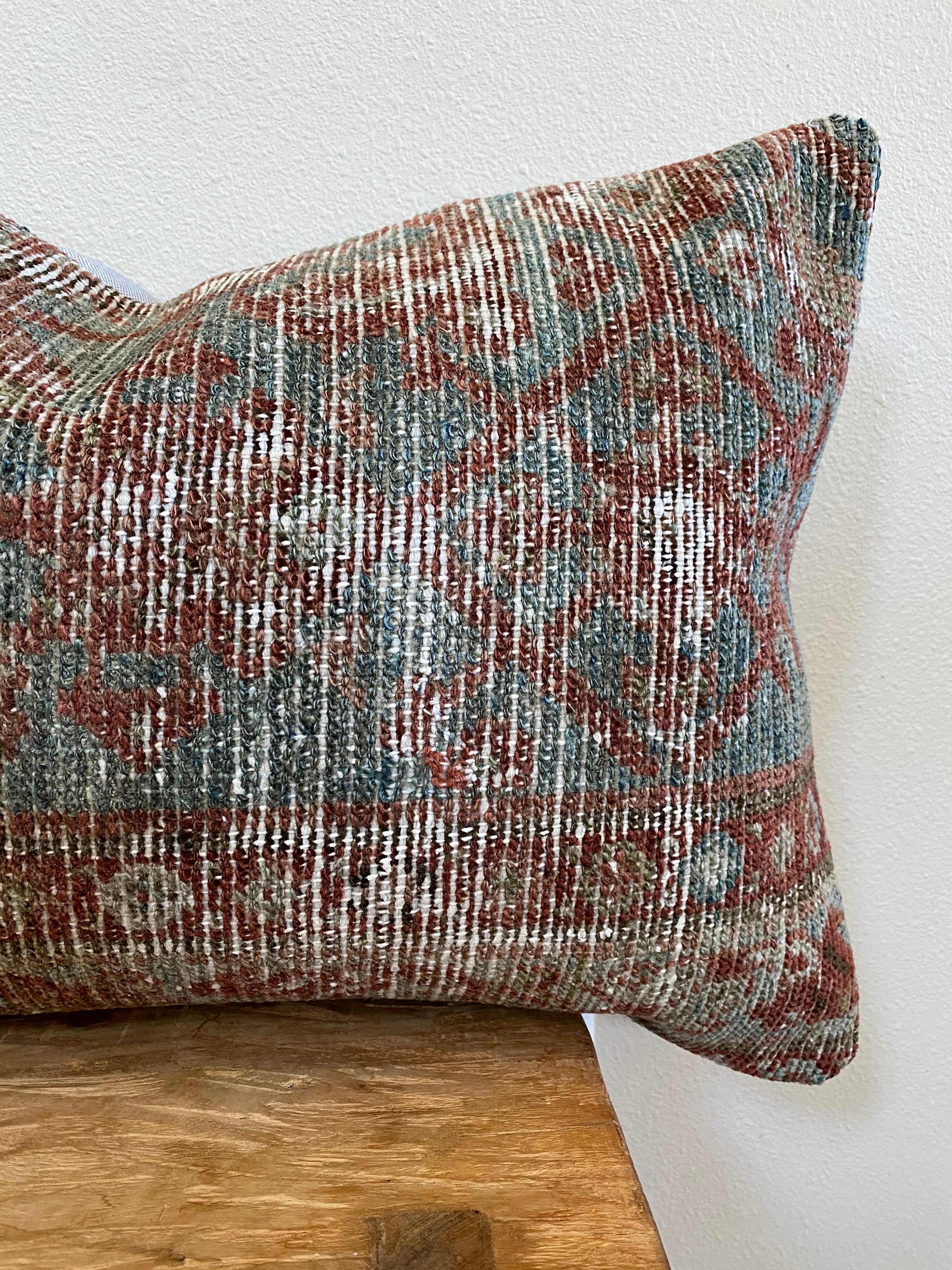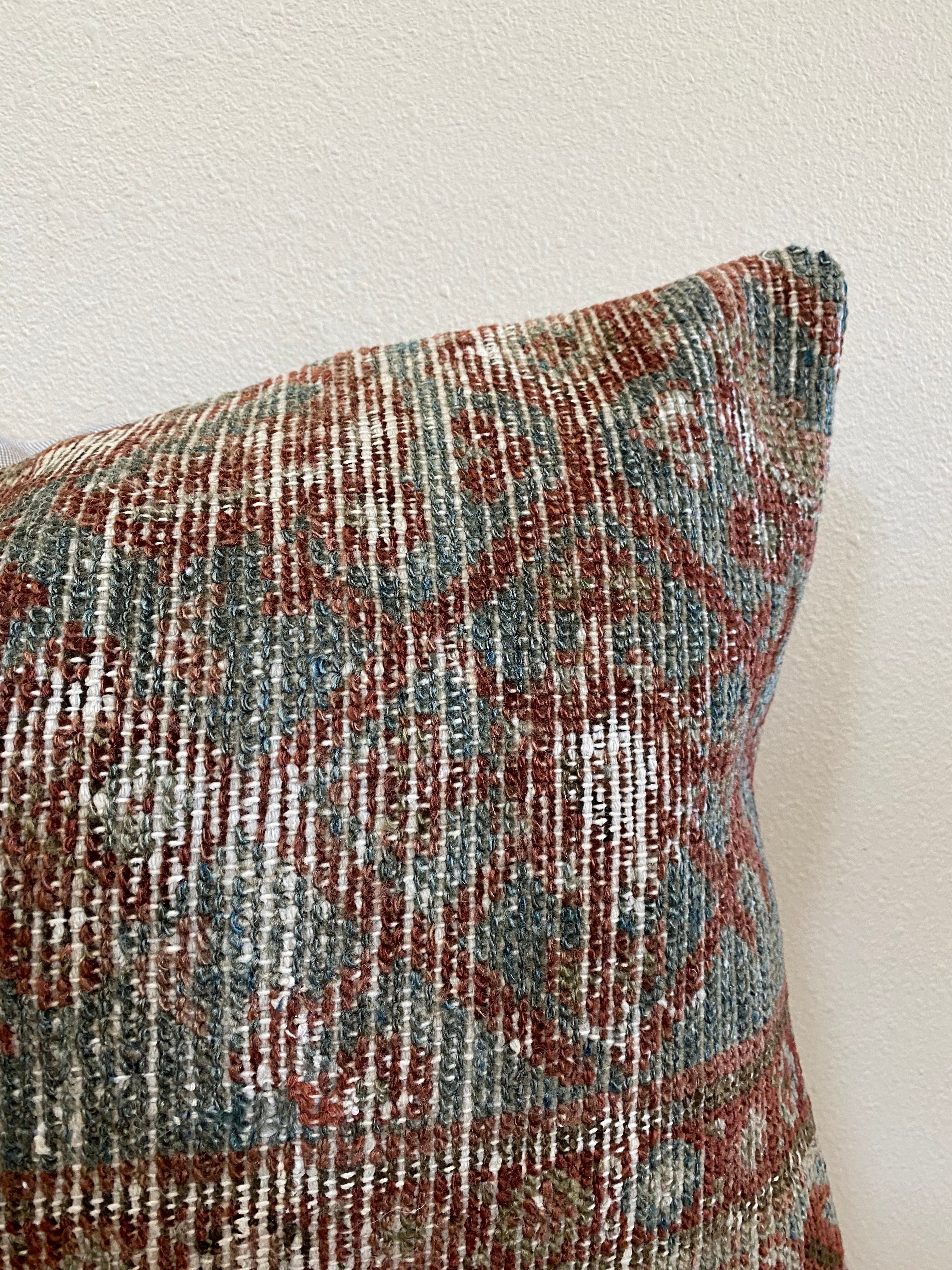 Photos were taken in natural daylight. Please note that the colors of the pillow cover may appear differently depending on the lighting in your home. Due to the nature of vintage rugs, there may be slight imperfections in its wear, dimensions, and color.