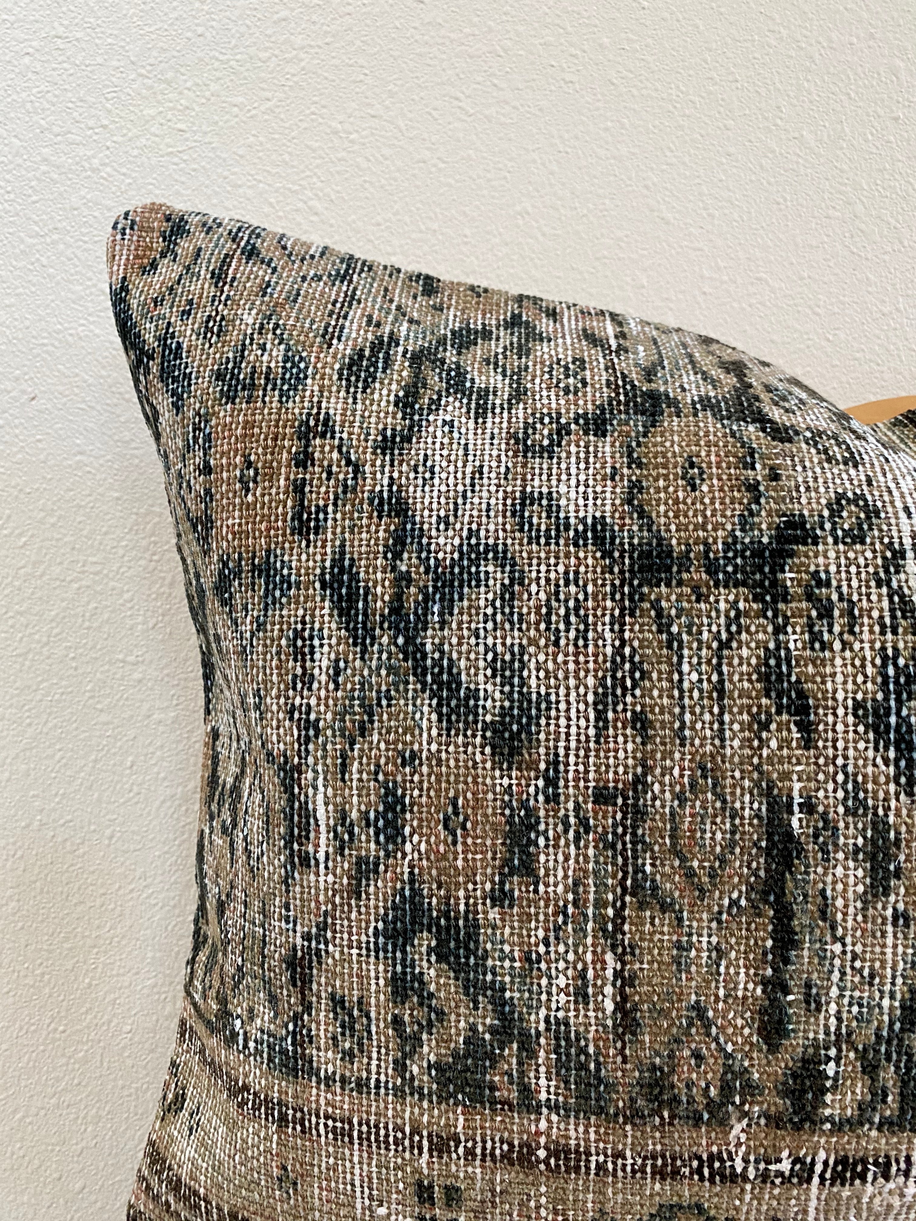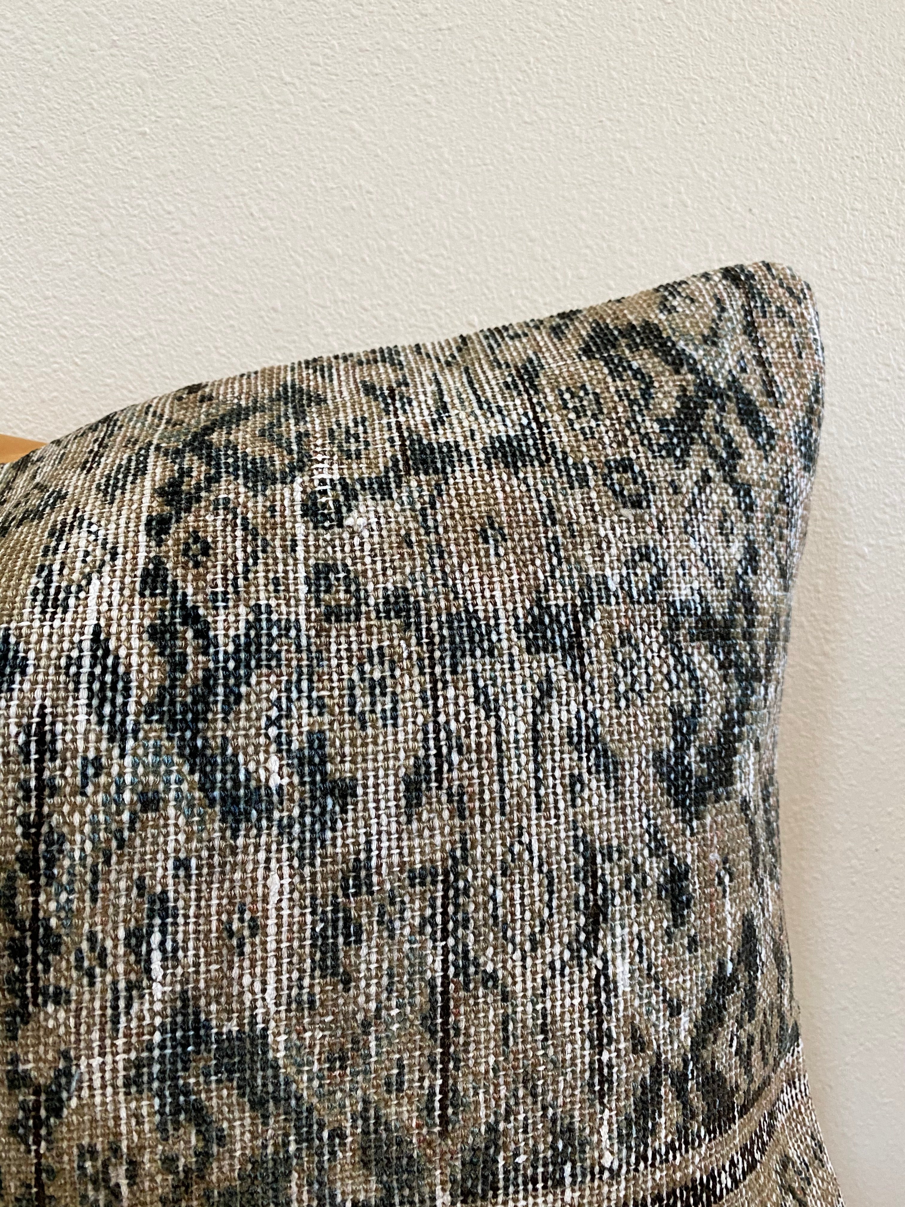 Photos were taken in natural daylight. Please note that the colors of the pillow cover may appear differently depending on the lighting in your home. Due to the nature of vintage rugs, there may be slight imperfections in its wear, dimensions, and color.