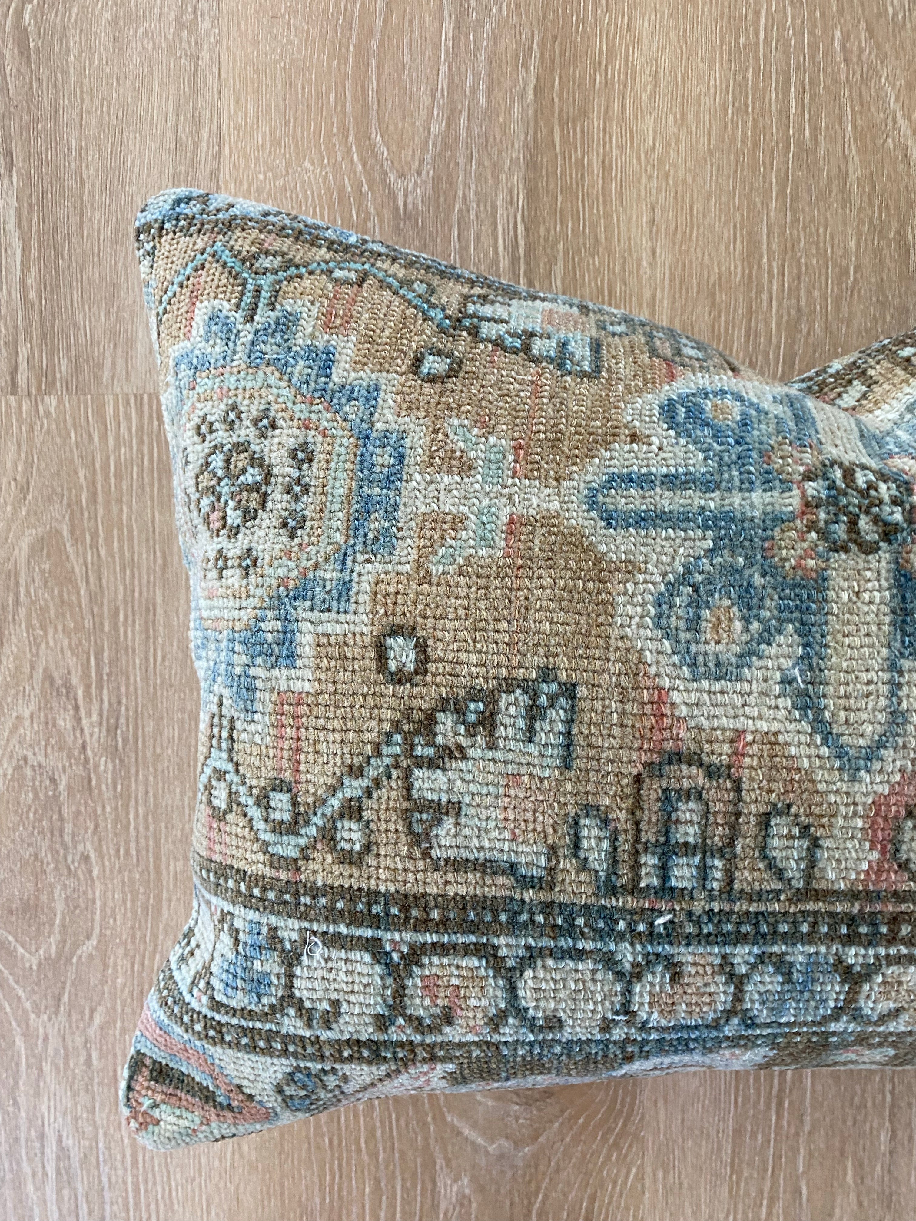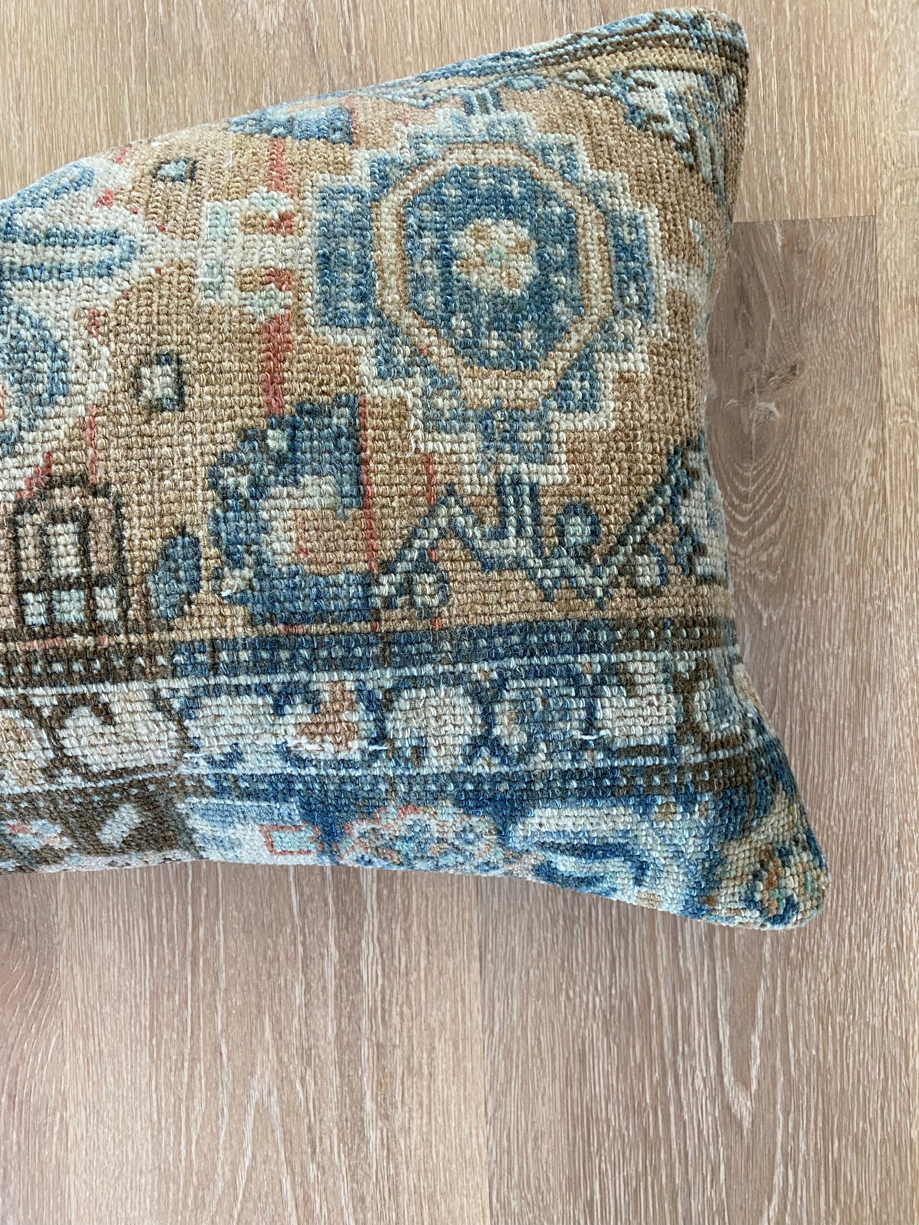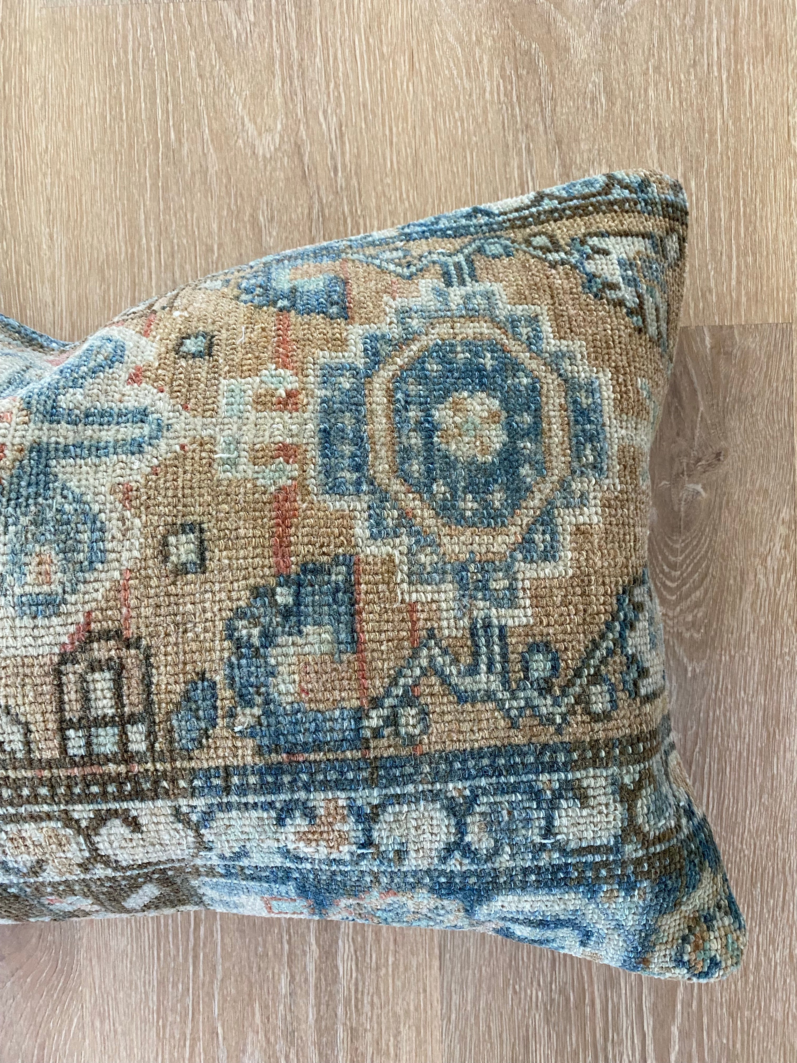 Front side of pillow is made from a vintage Persian rug that is 80-90 years old.