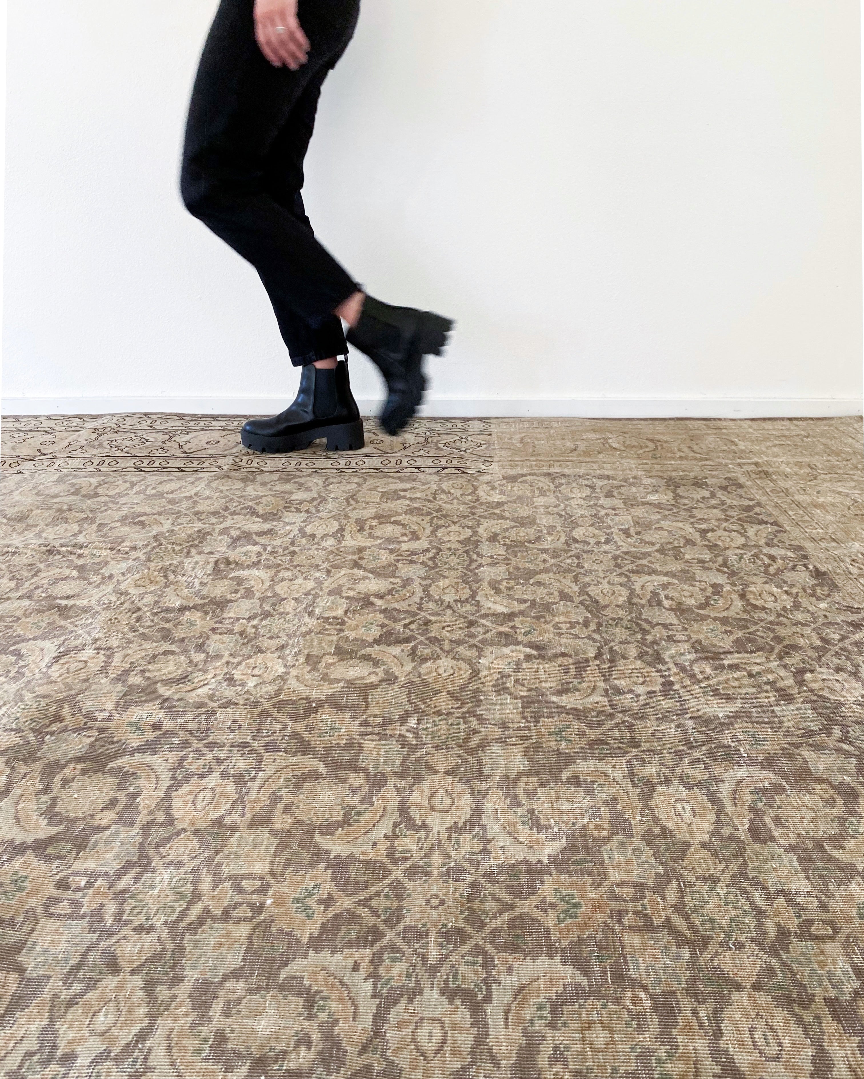 The photos on this listing were taken on a professional camera with studio lighting, which mimics natural lighting (neither warm or cool, but neutral). The screen of which you view these photos may change how this rug’s coloring is portrayed. On the iPhone, we recommend viewing these photos with “True Tone” turned off (you can turn this feature off by holding down on the brightness setting). Please note that the colors of the rug may appear differently depending on the lighting in your home.