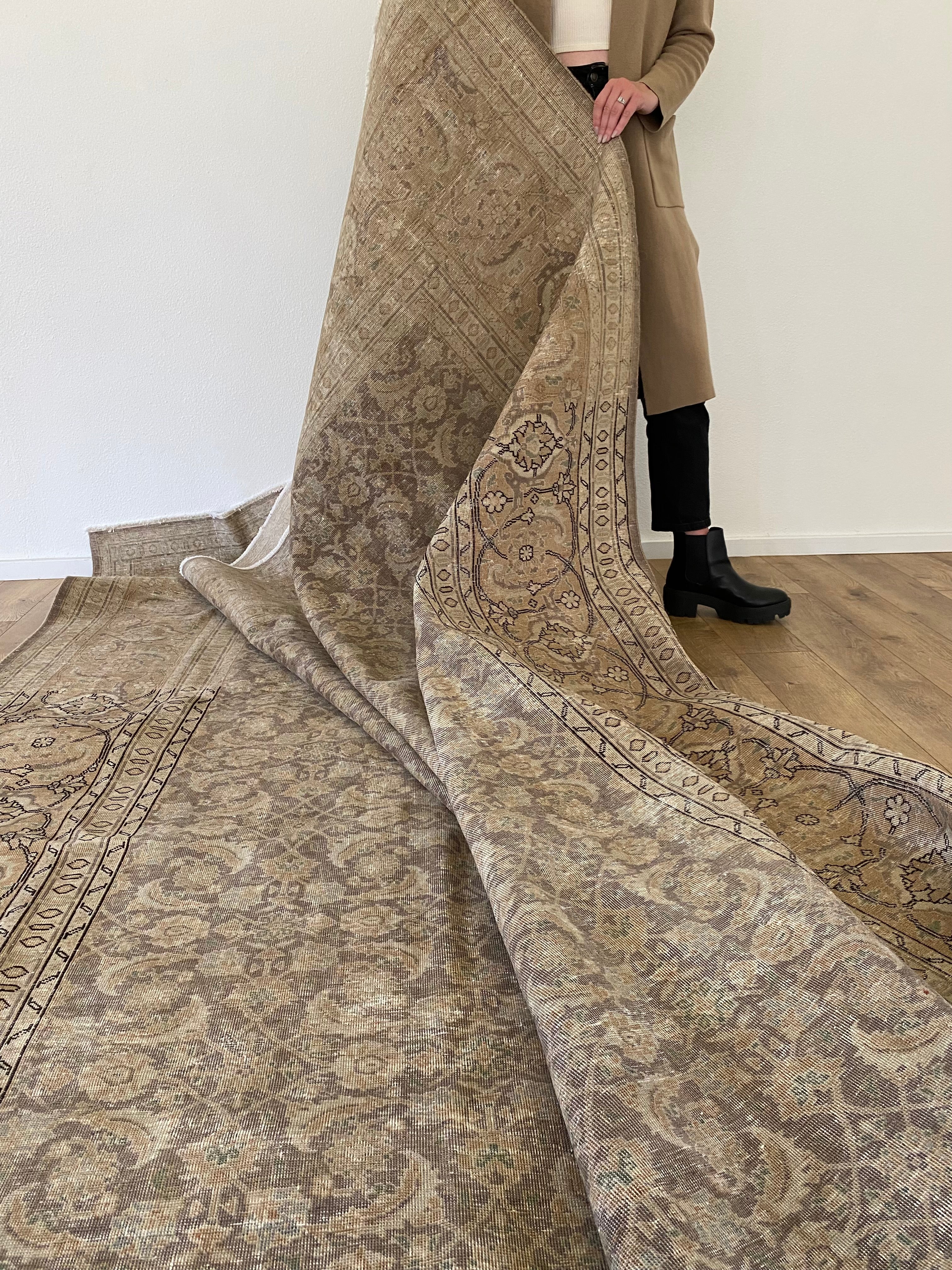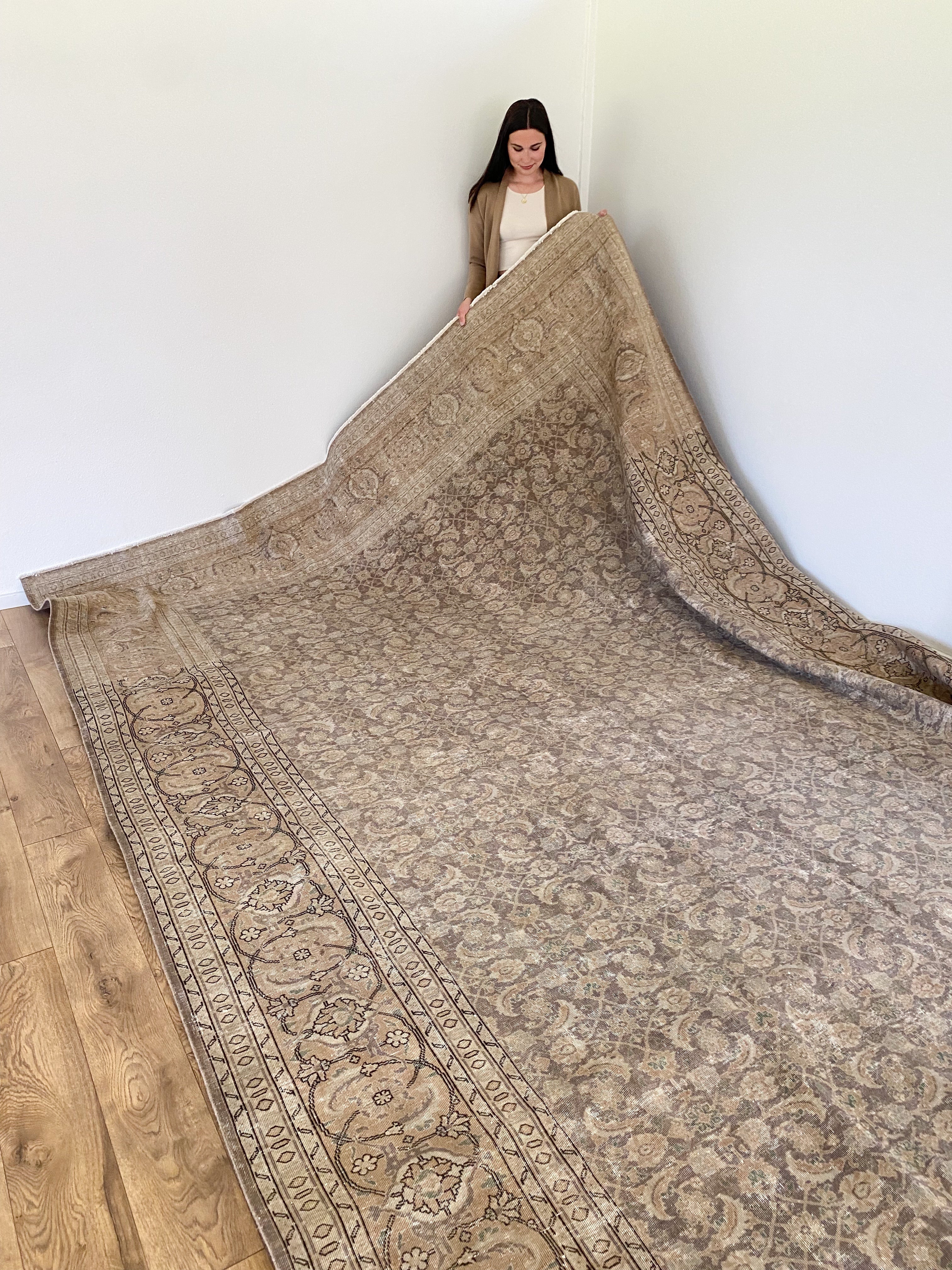 Because of the nature of this item, there may be slight imperfections in its wear, shape, dimensions, and color. Our rugs have been repaired over the years using various techniques. There might be evidence of these repairs through texture, look and feel. This is all part of the rich history and story of each artistic piece. These markings are not considered defective.
