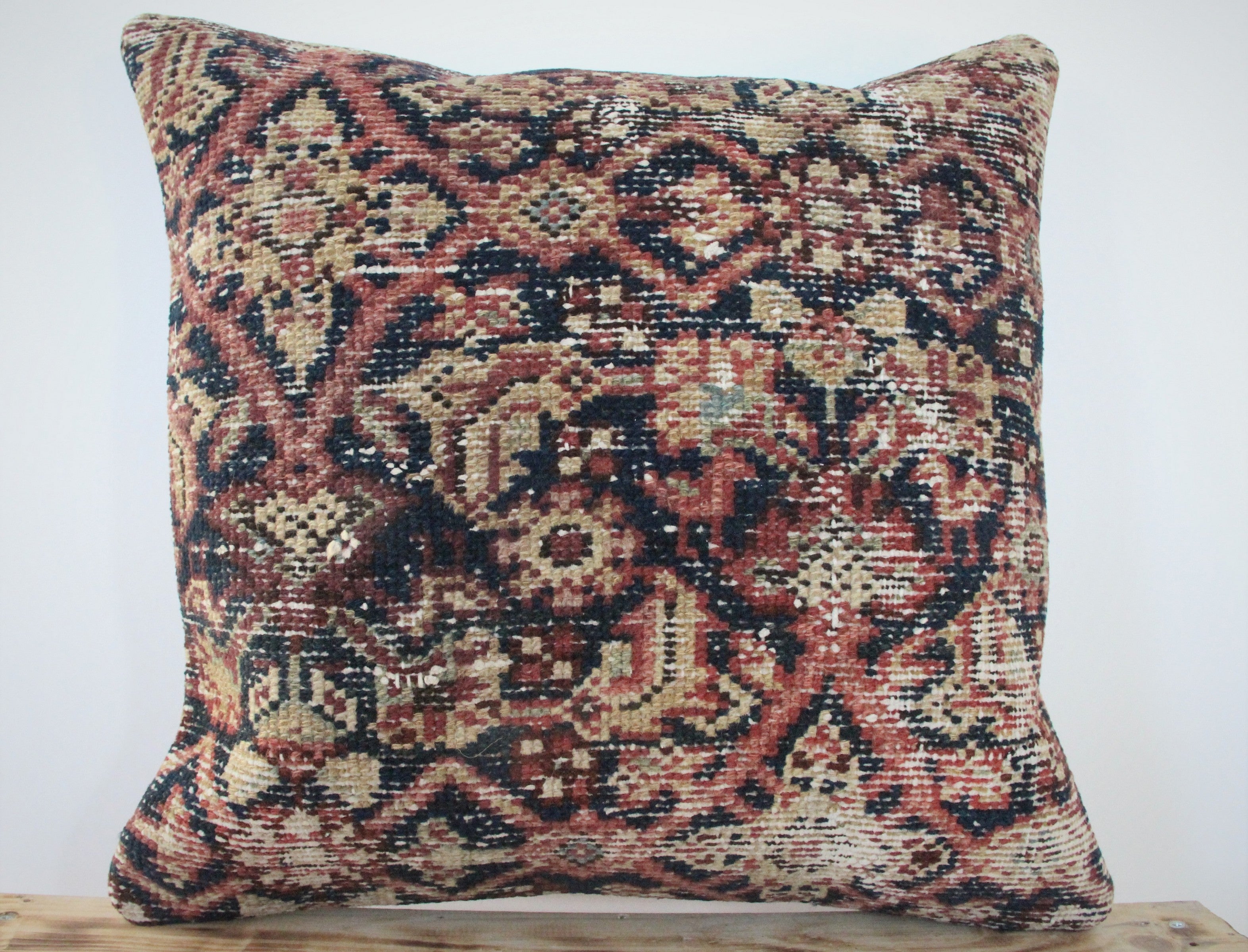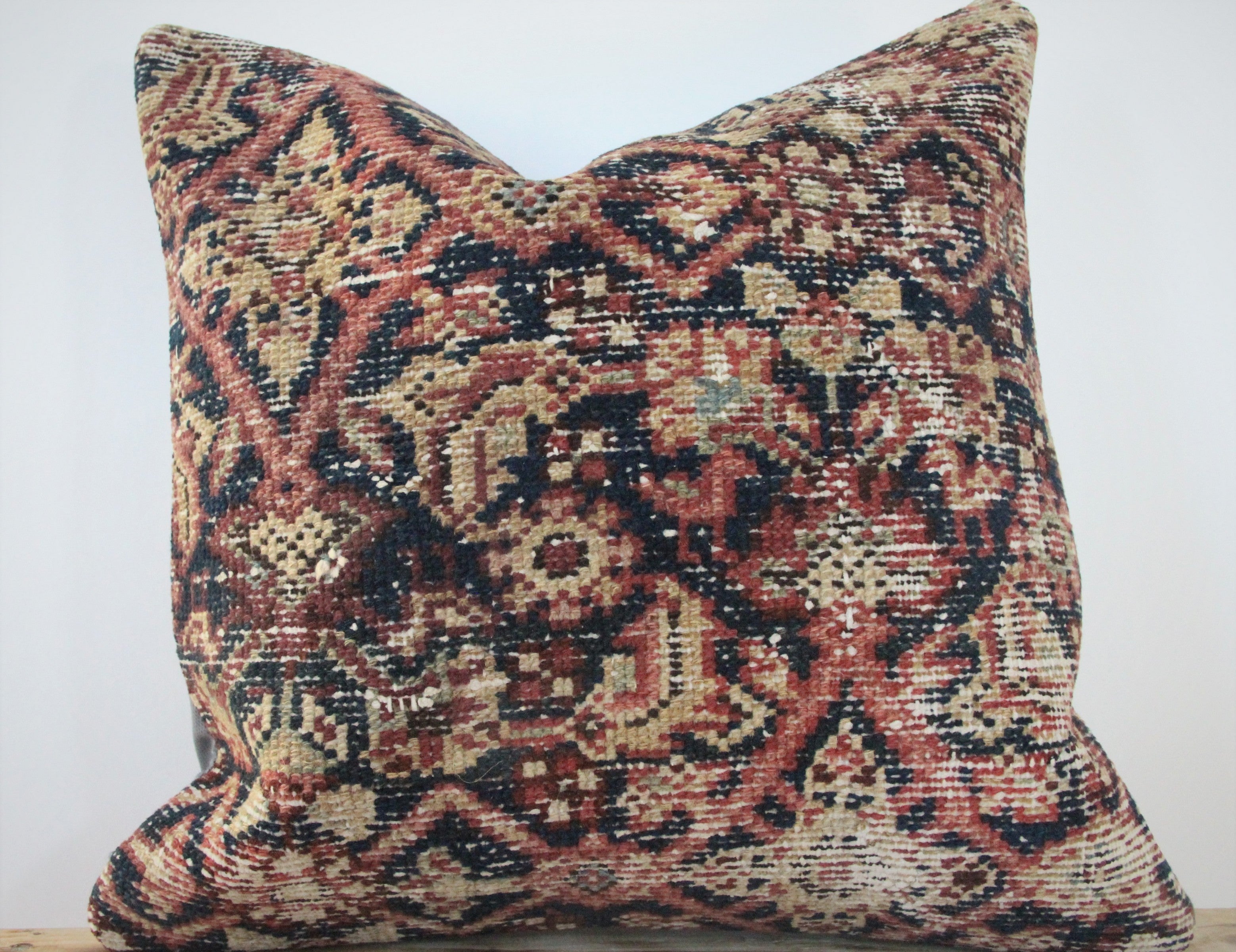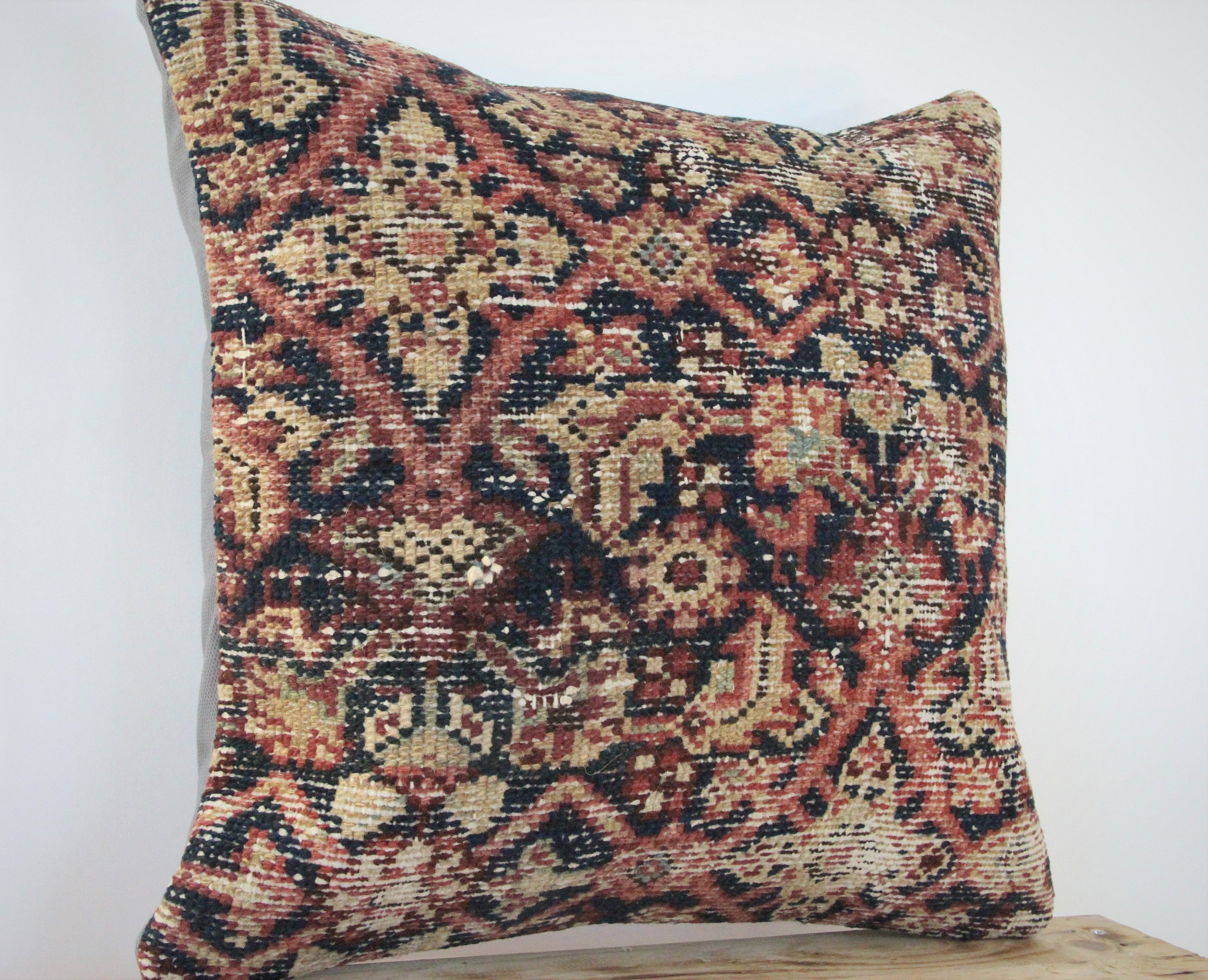 Front side of pillow is made from antique Persian rugs, and is 80-90 years old