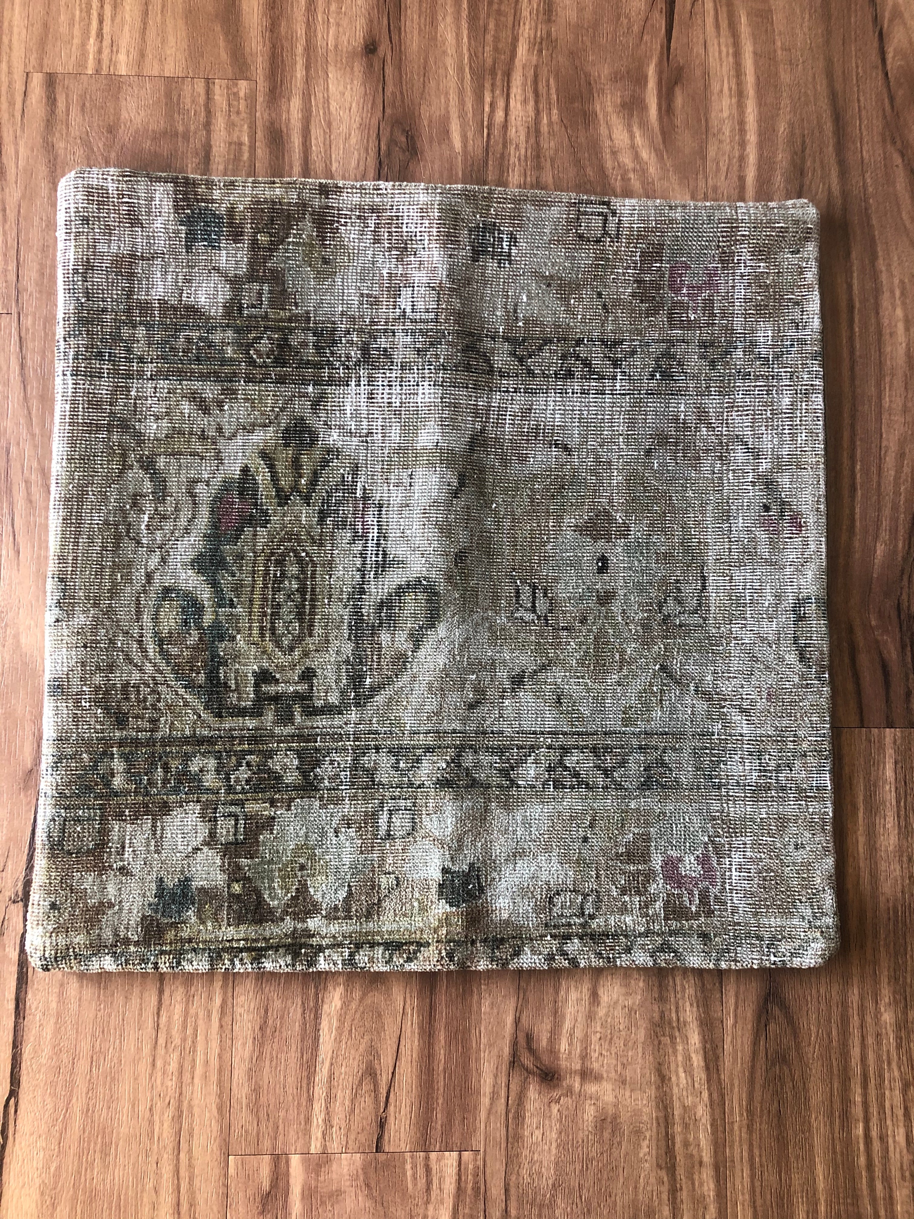 Front side of pillow is made from antique Persian rugs, and is 80-90 years old