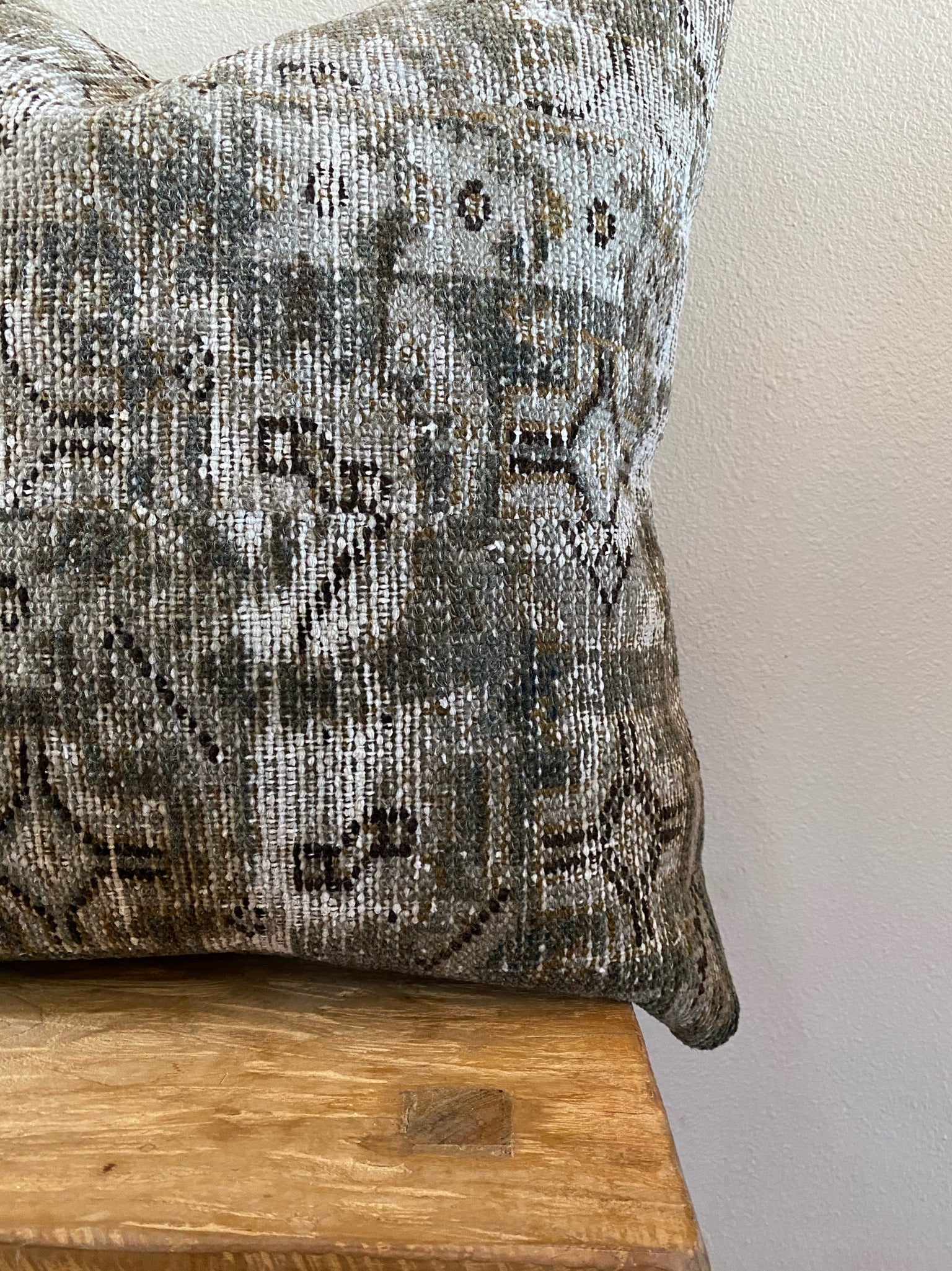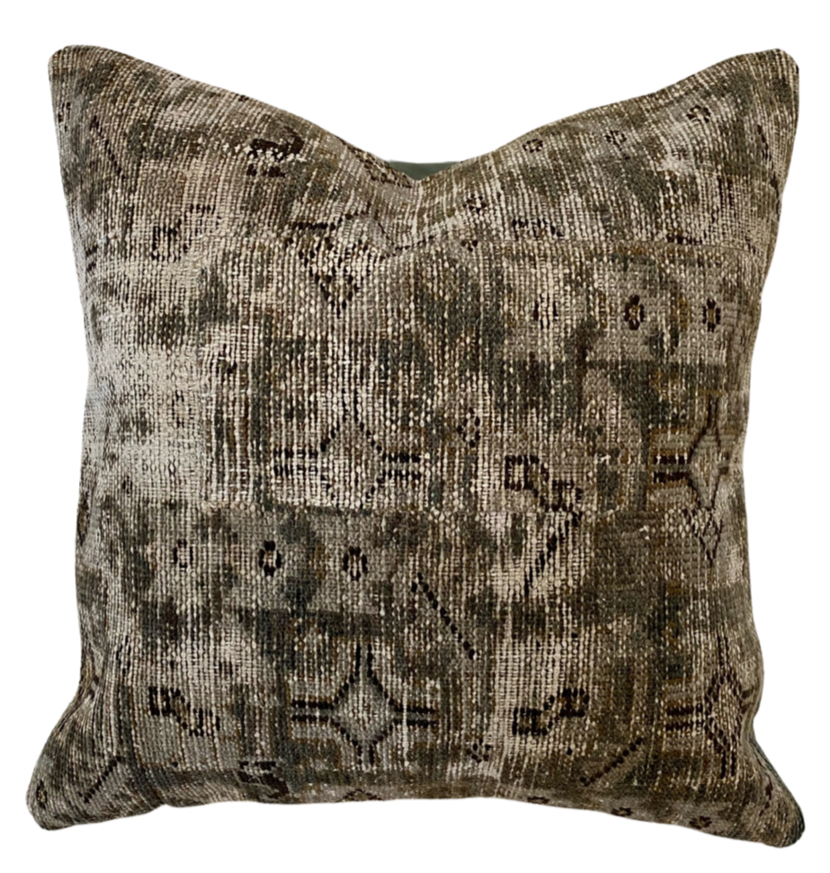 Front side of pillow is made from a vintage Persian rug that is 80-90 years old.