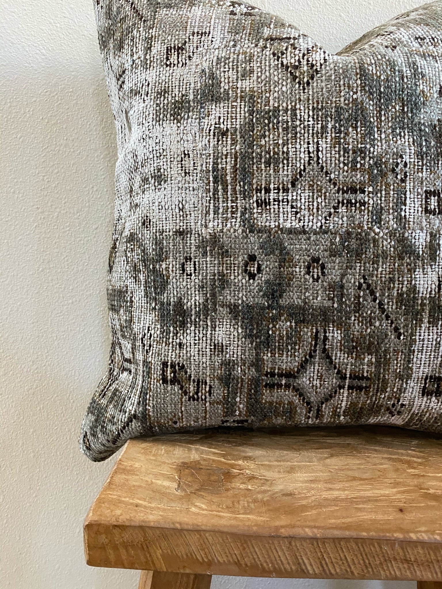 Photos were taken in natural daylight. Please note that the colors of the pillow cover may appear differently depending on the lighting in your home. Due to the nature of vintage rugs, there may be slight imperfections in its wear, dimensions, and color.