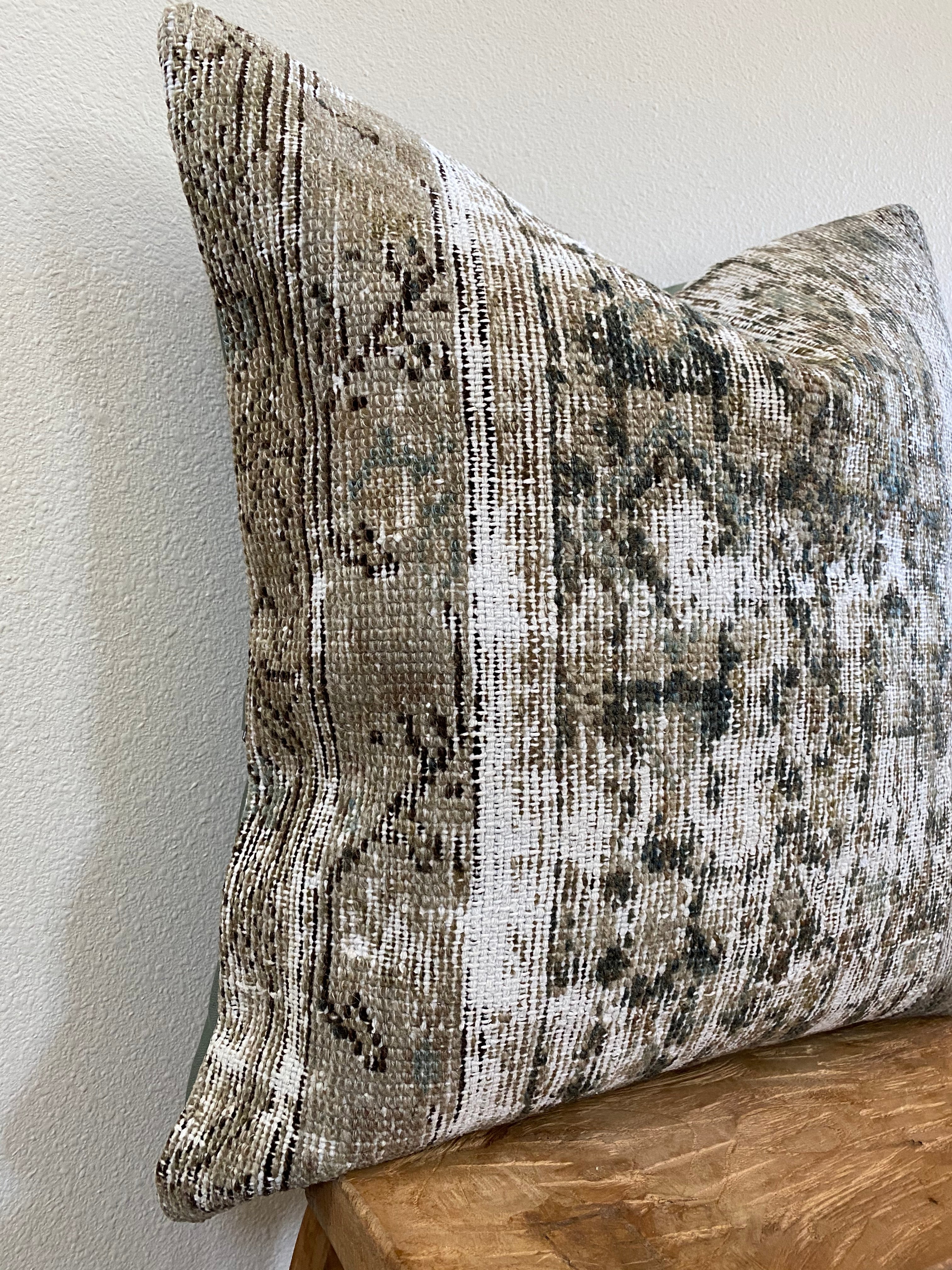 Front side of pillow is made from a vintage Persian rug that is 80-90 years old.