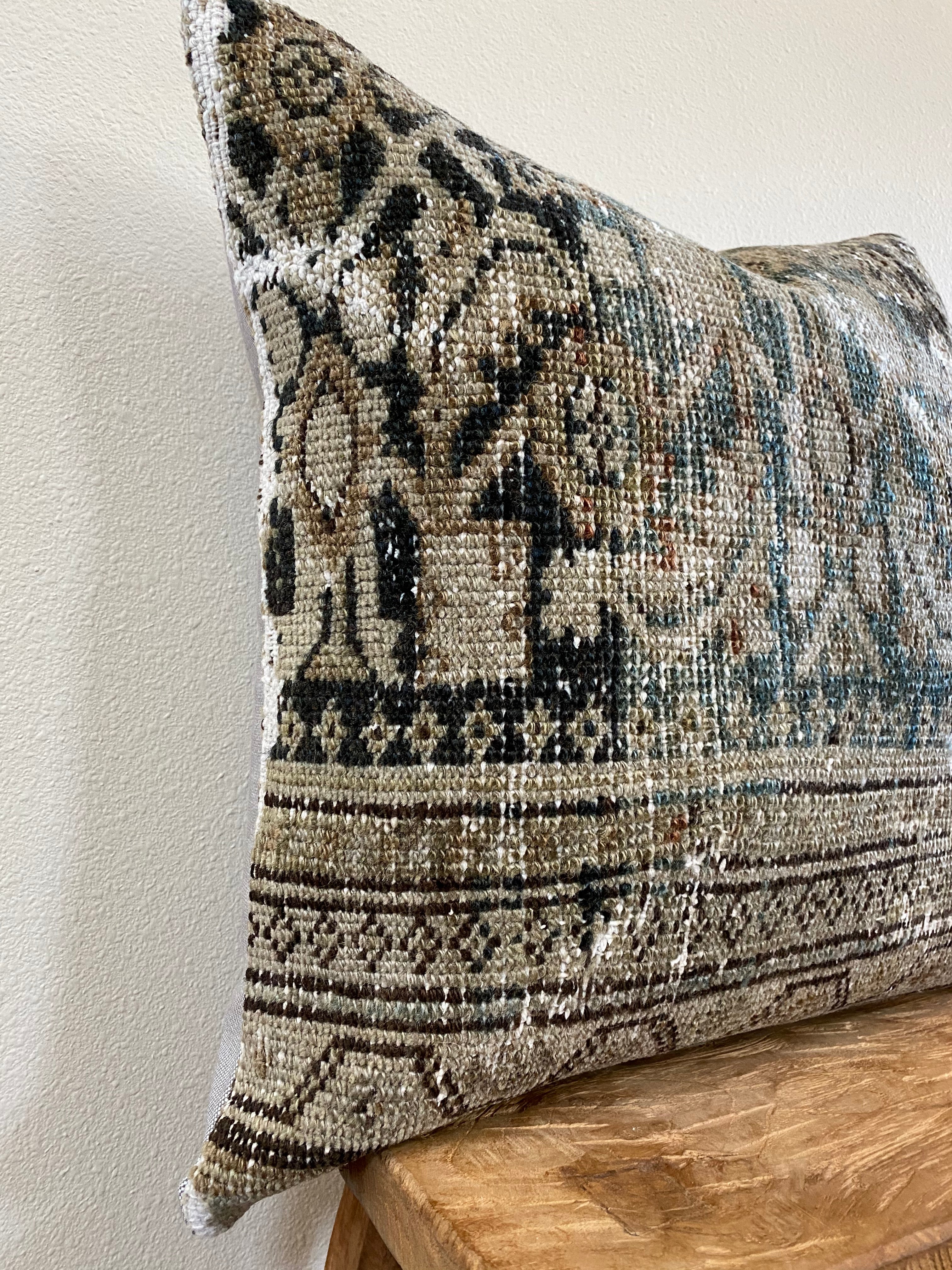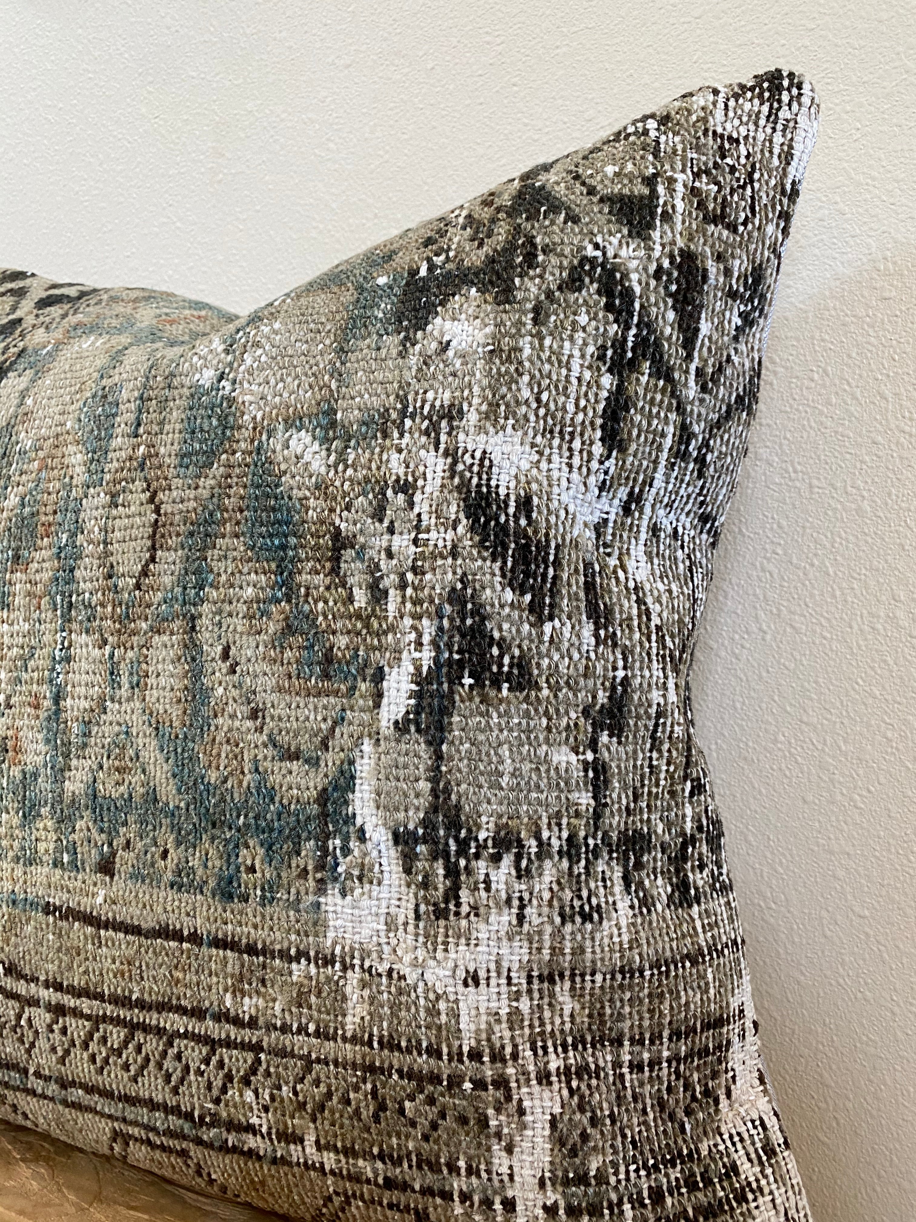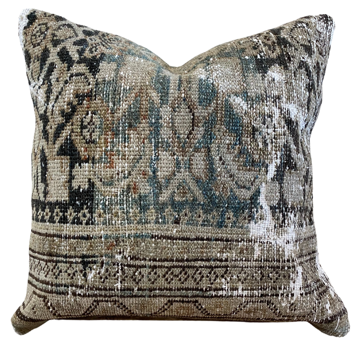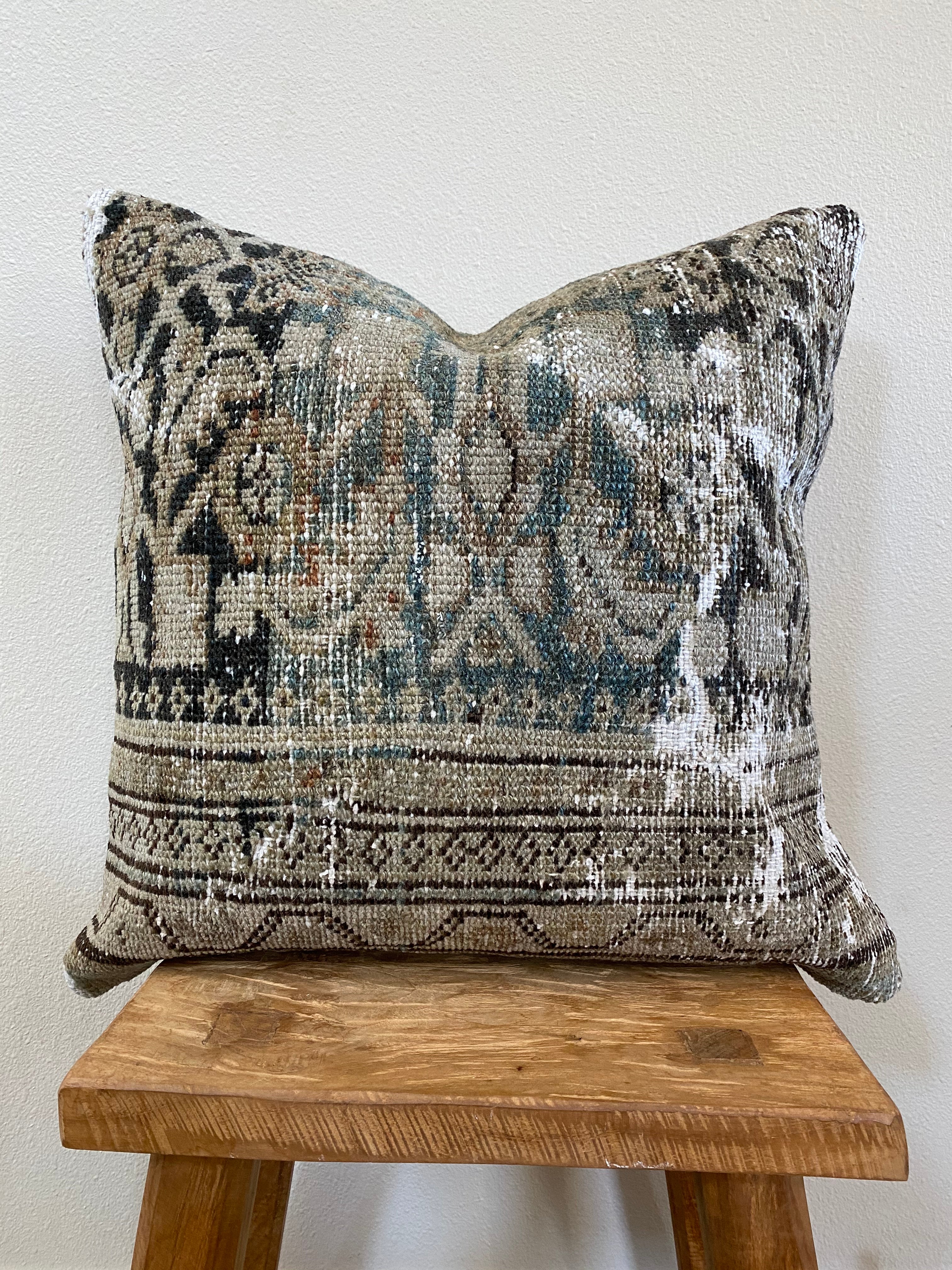 Front side of pillow is made from a vintage Persian rug that is 80-90 years old.