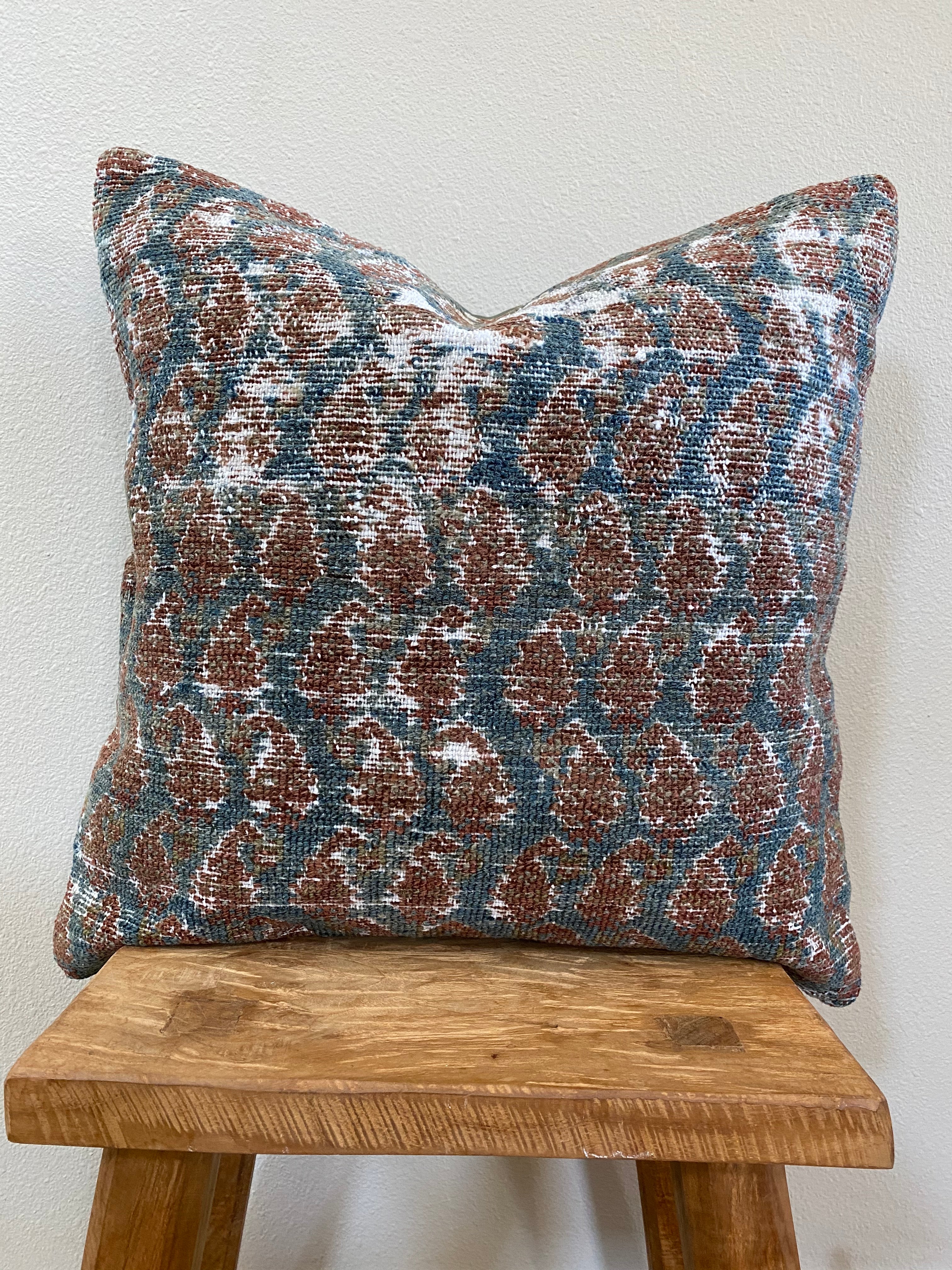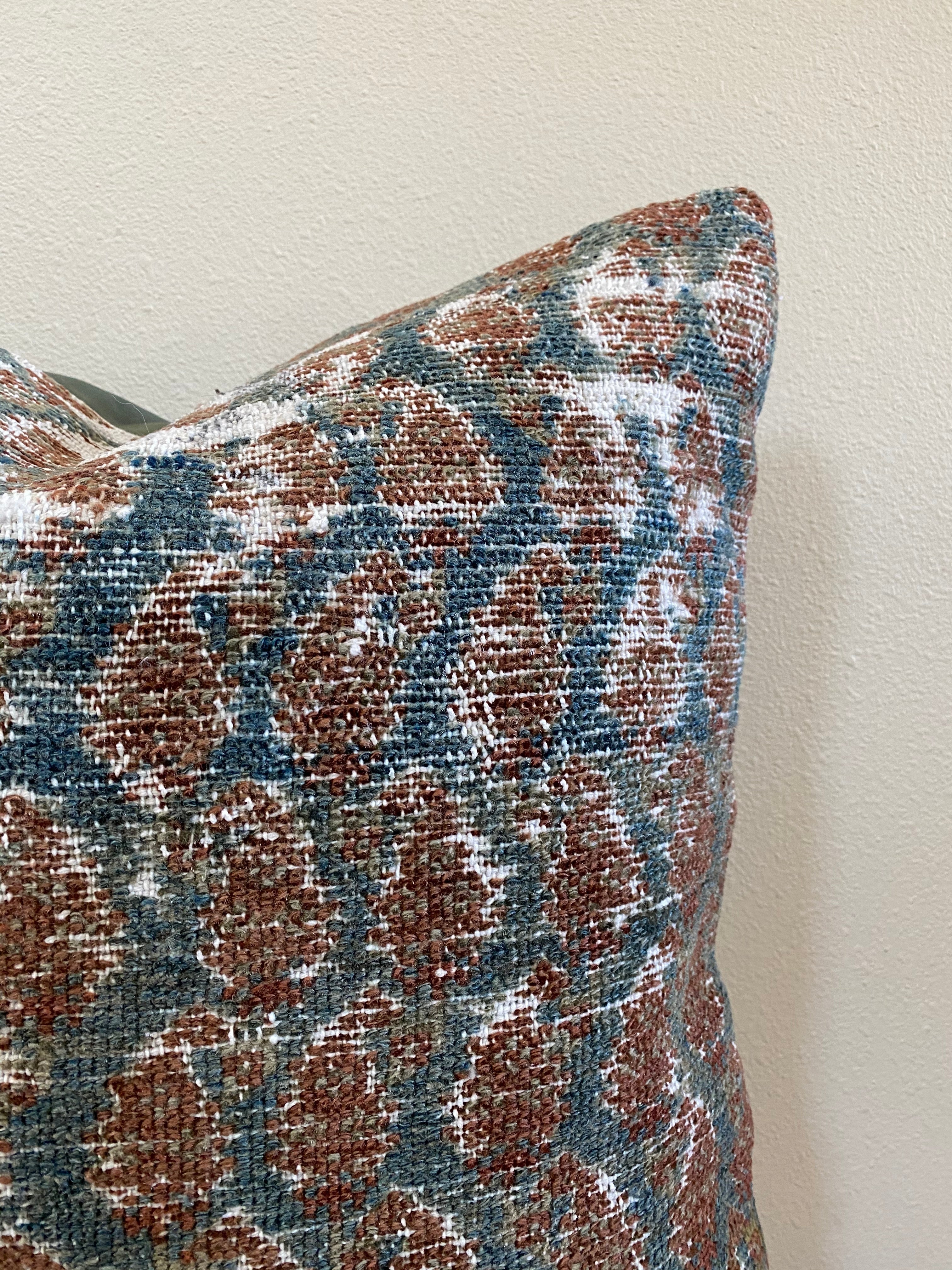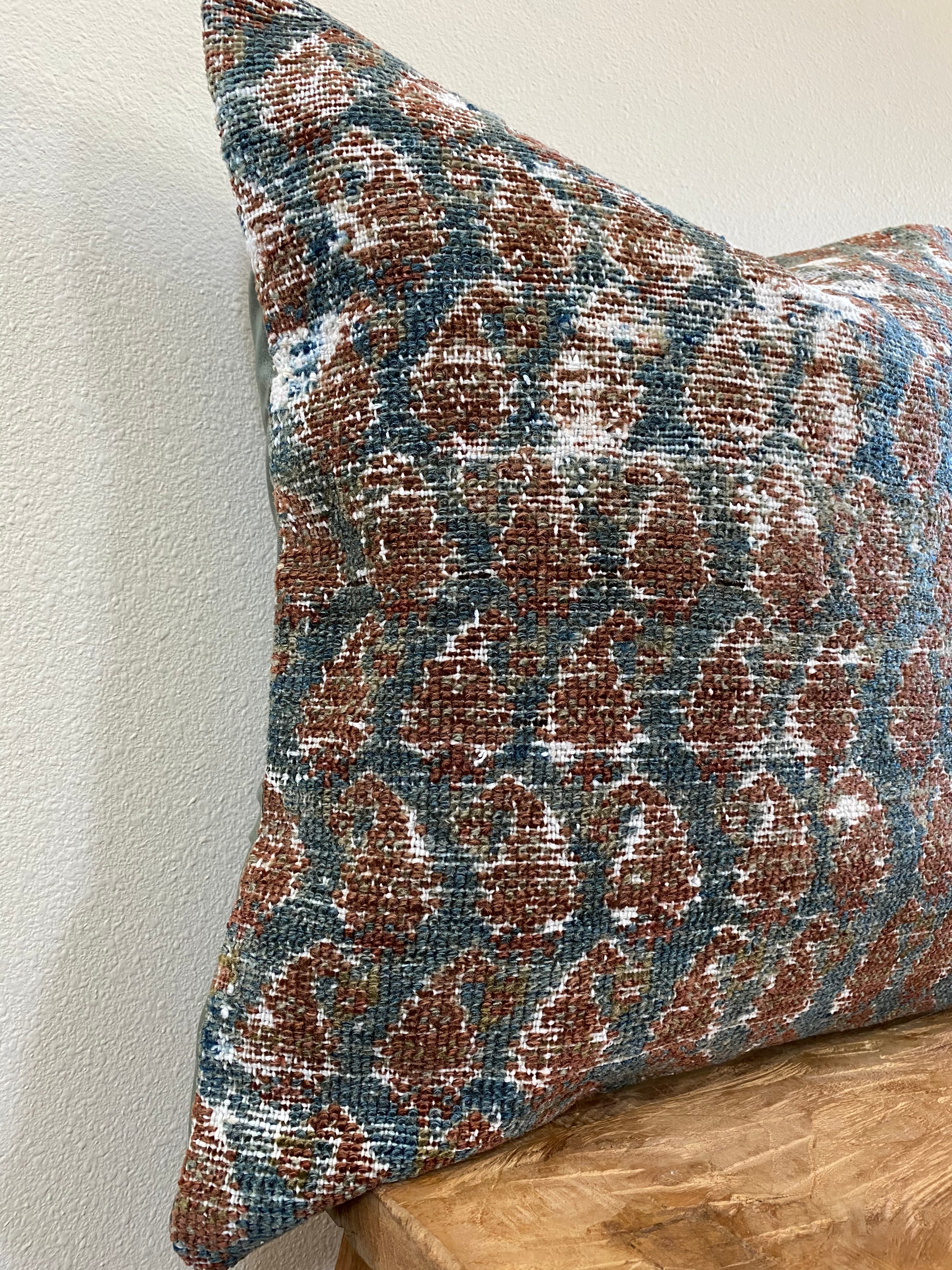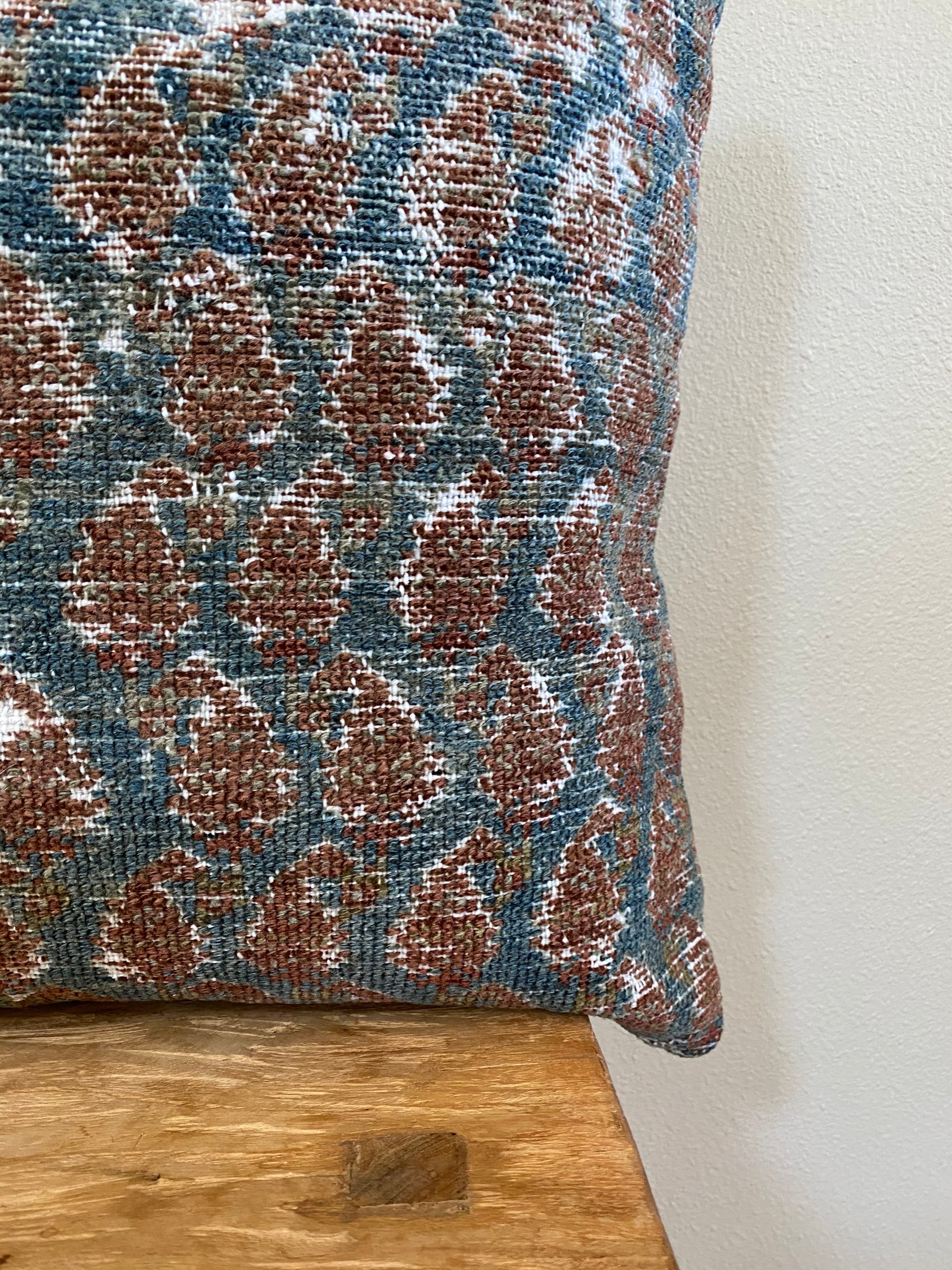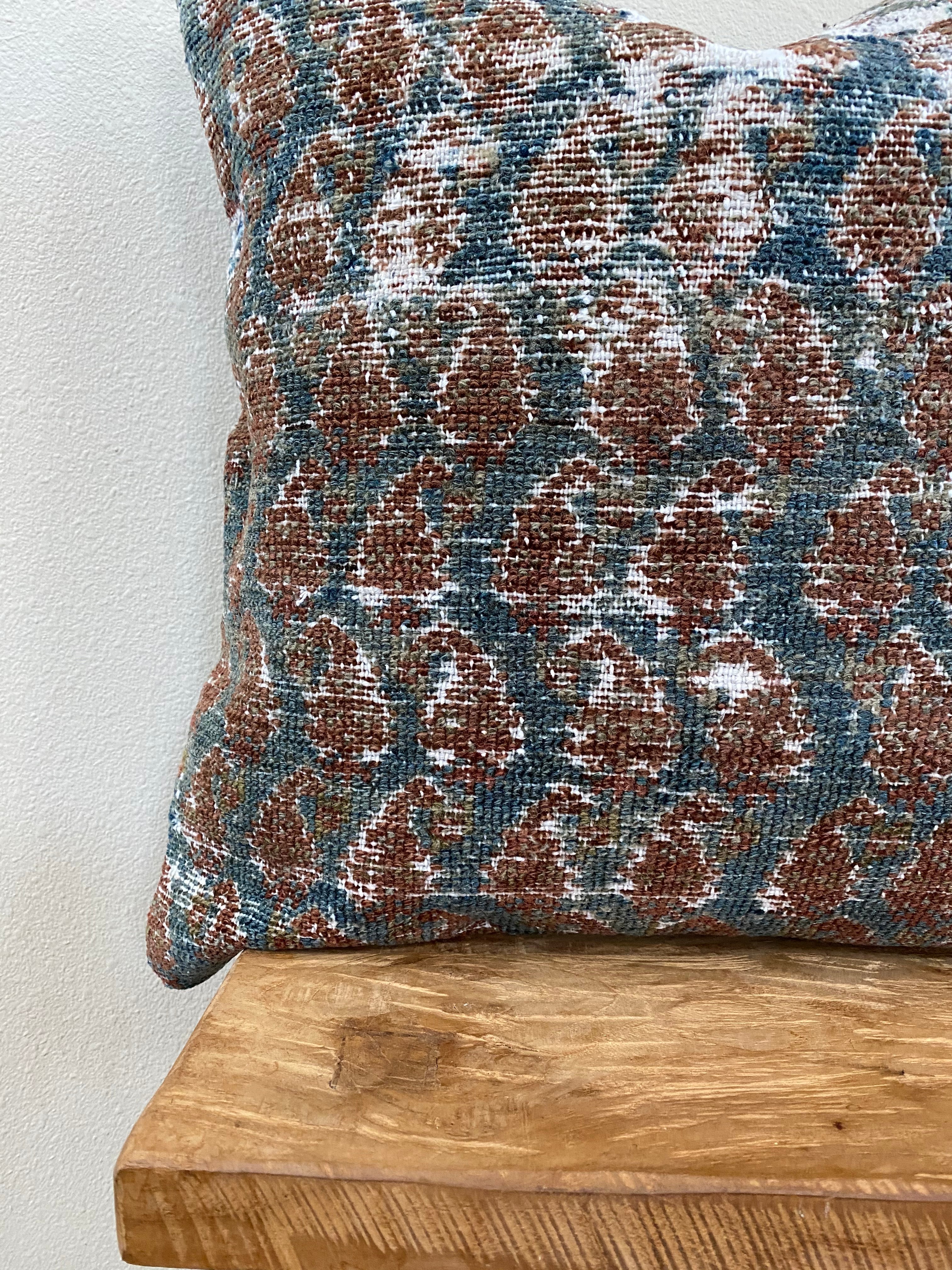 Front side of pillow is made from a vintage Persian rug that is 80-90 years old.