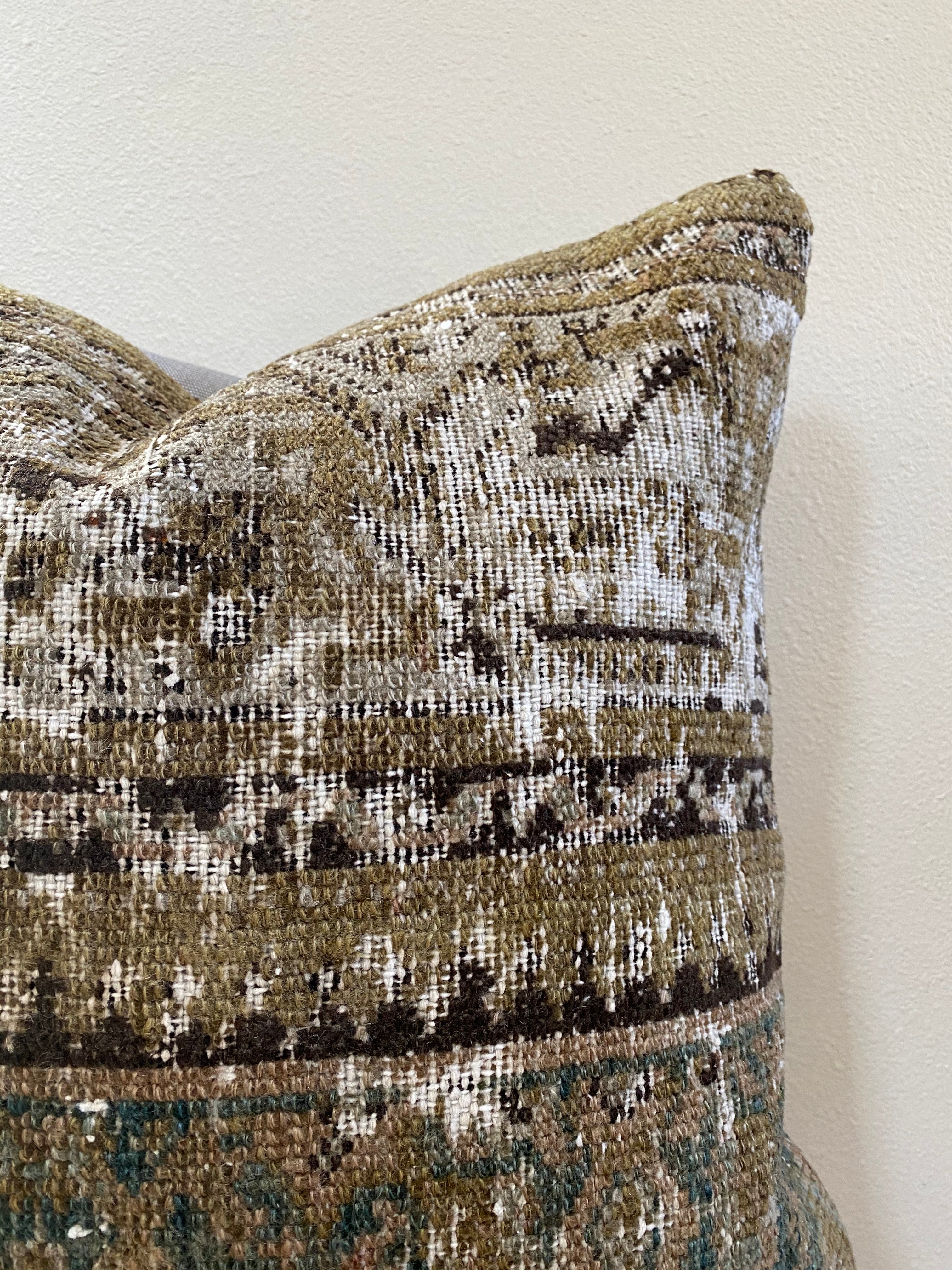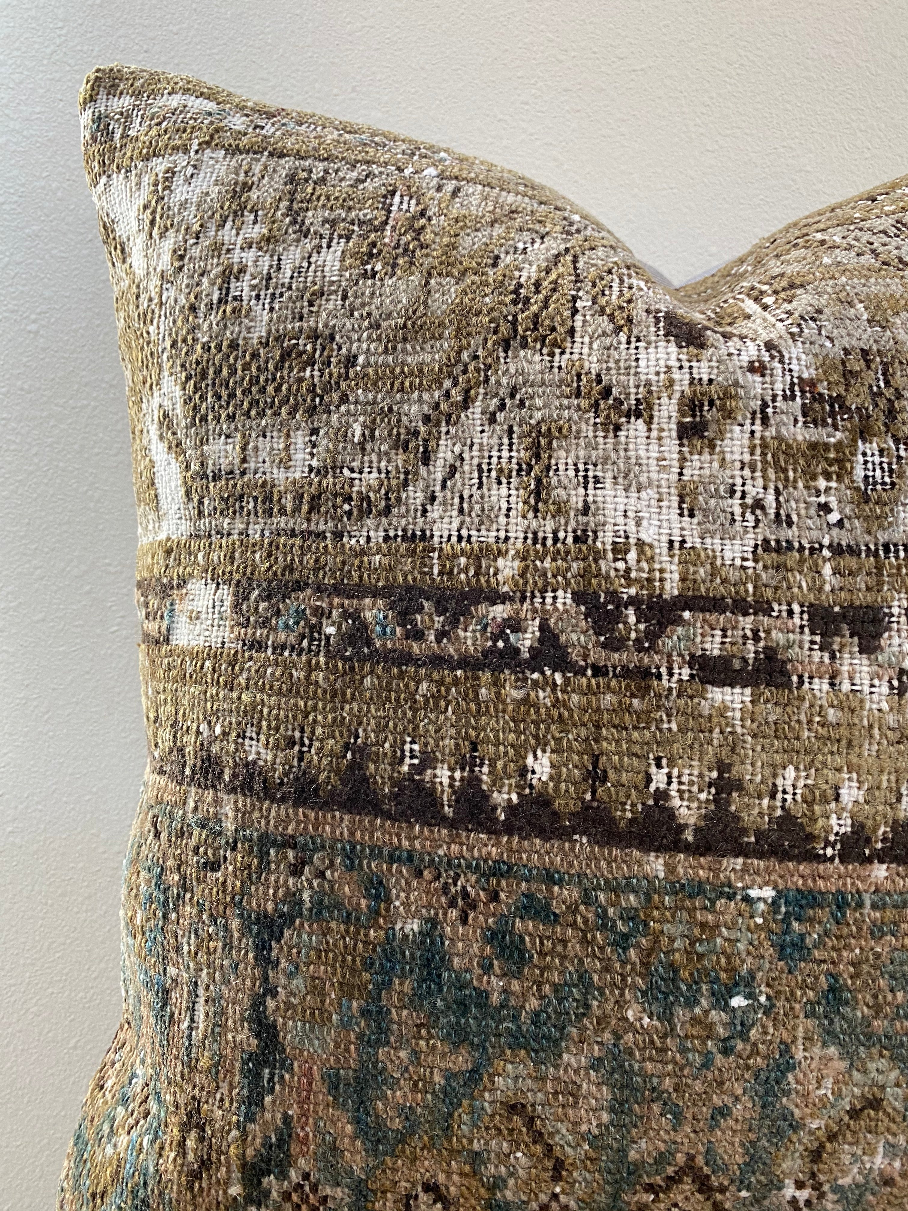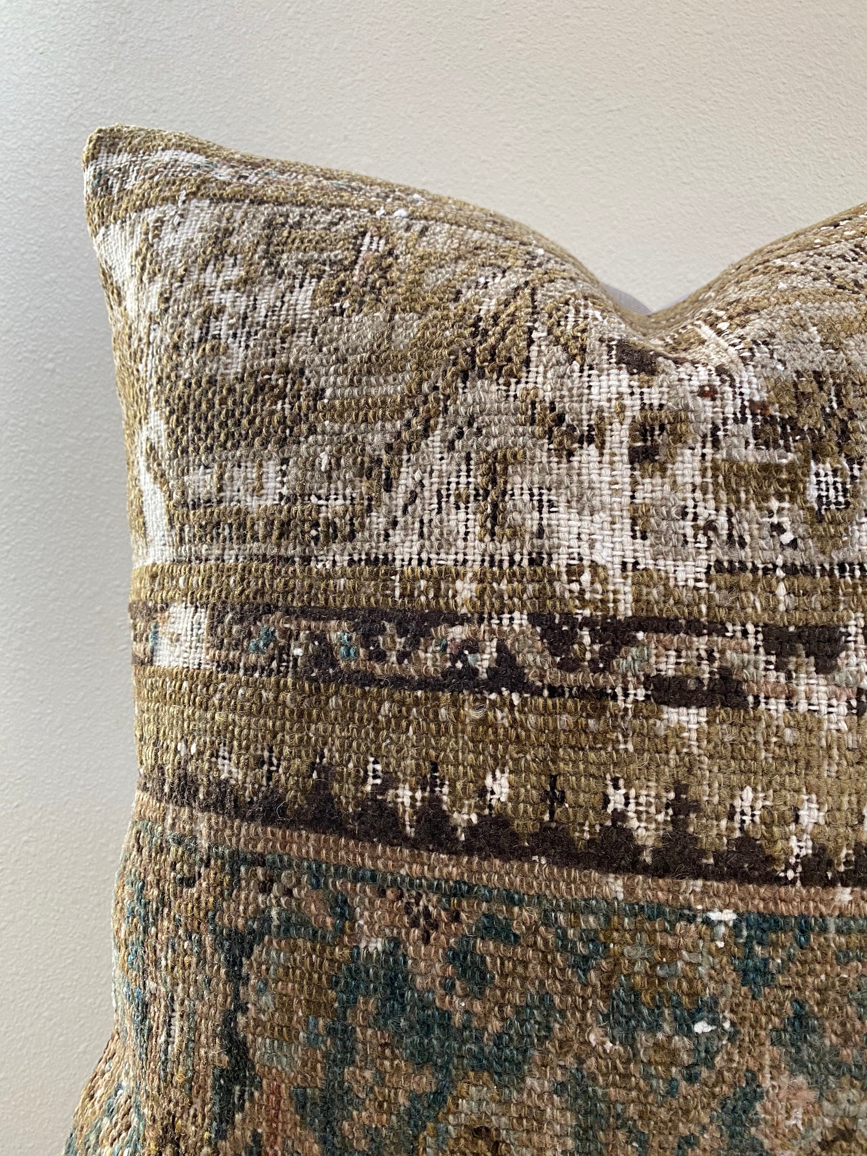 Front side of pillow is made from a vintage Persian rug that is 80-90 years old.