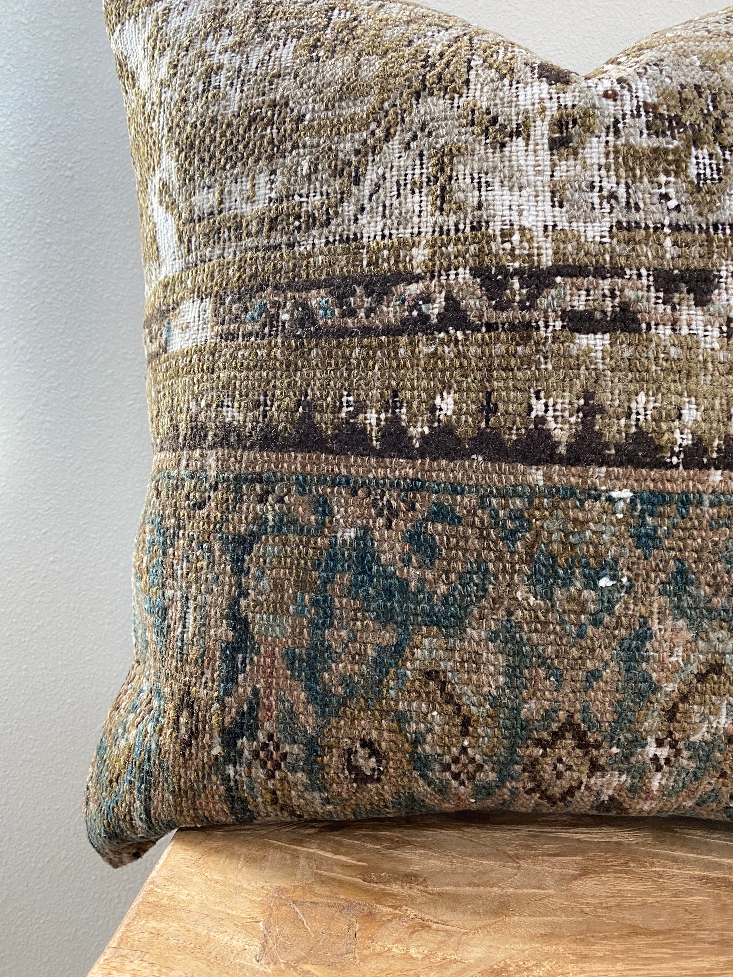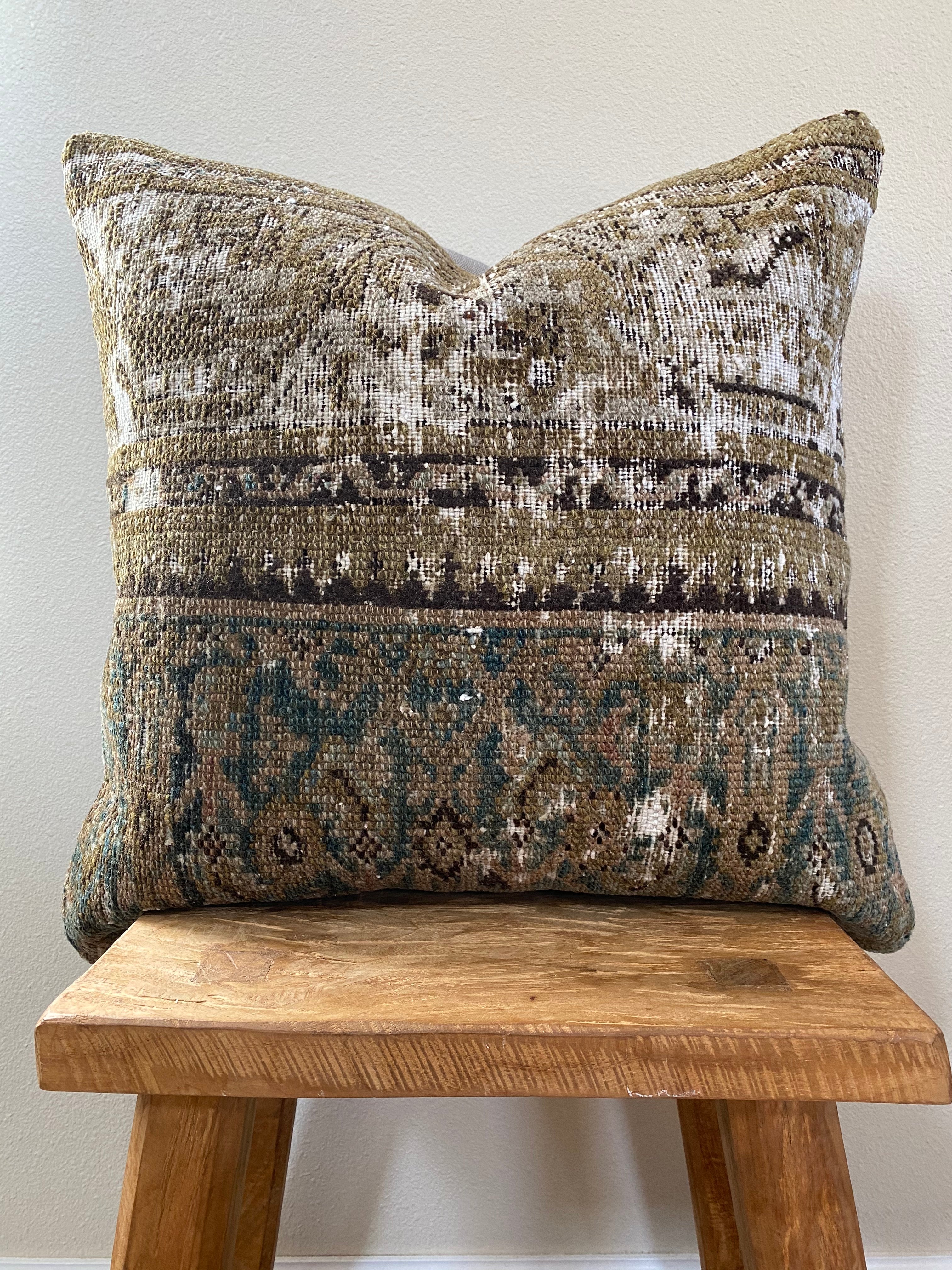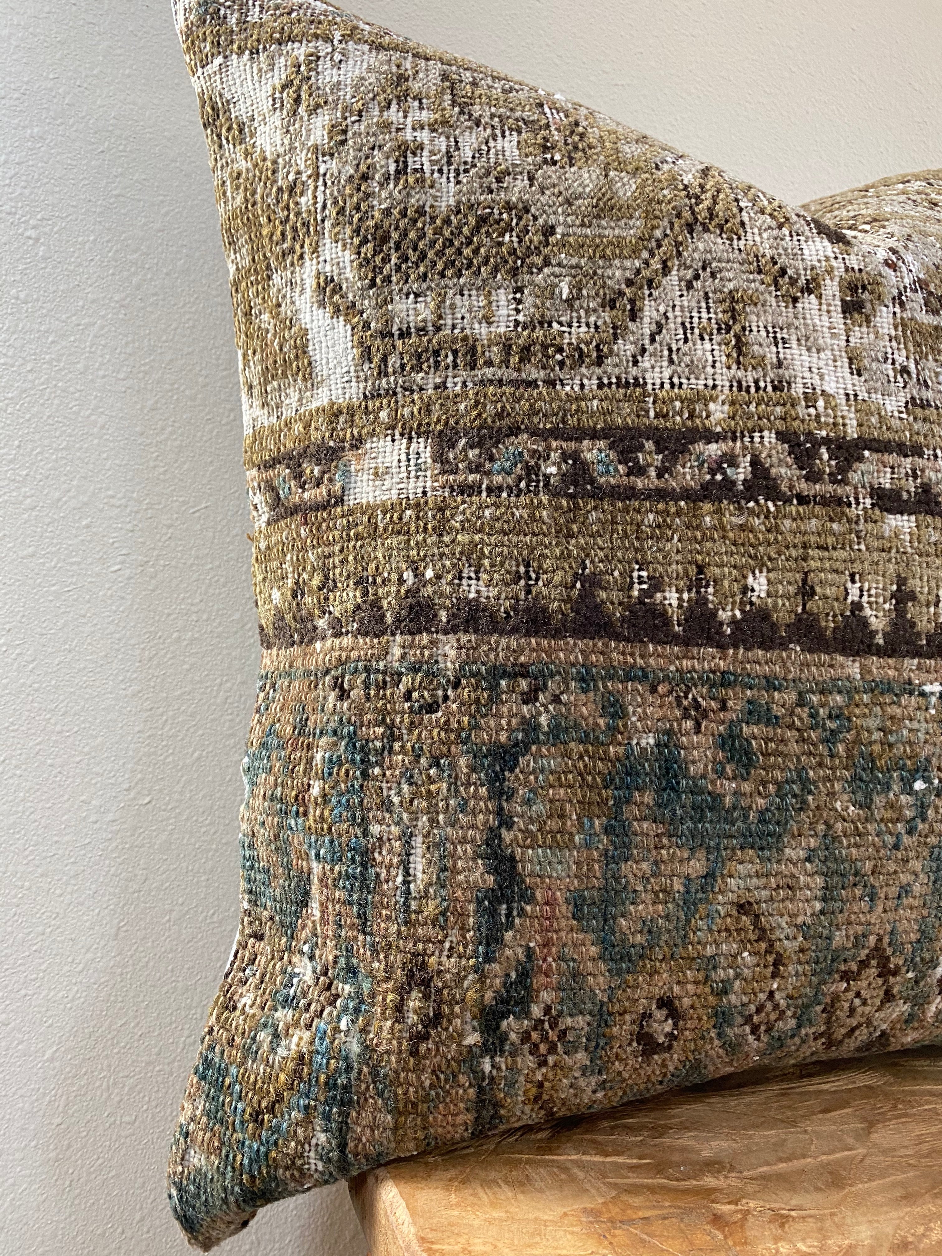 Front side of pillow is made from a vintage Persian rug that is 80-90 years old.