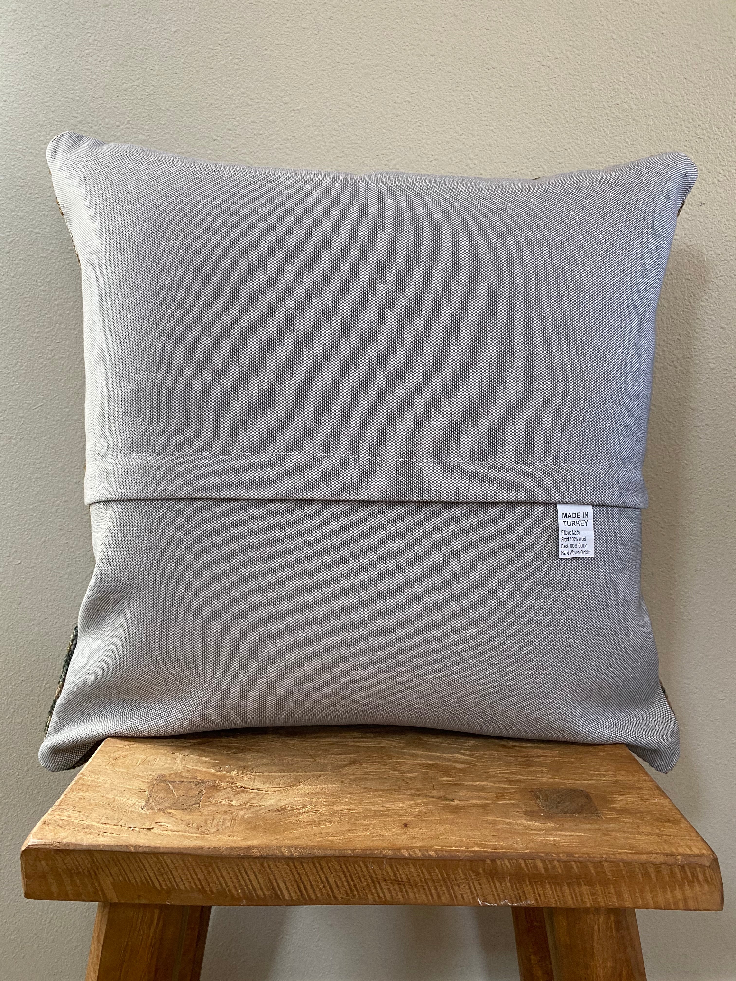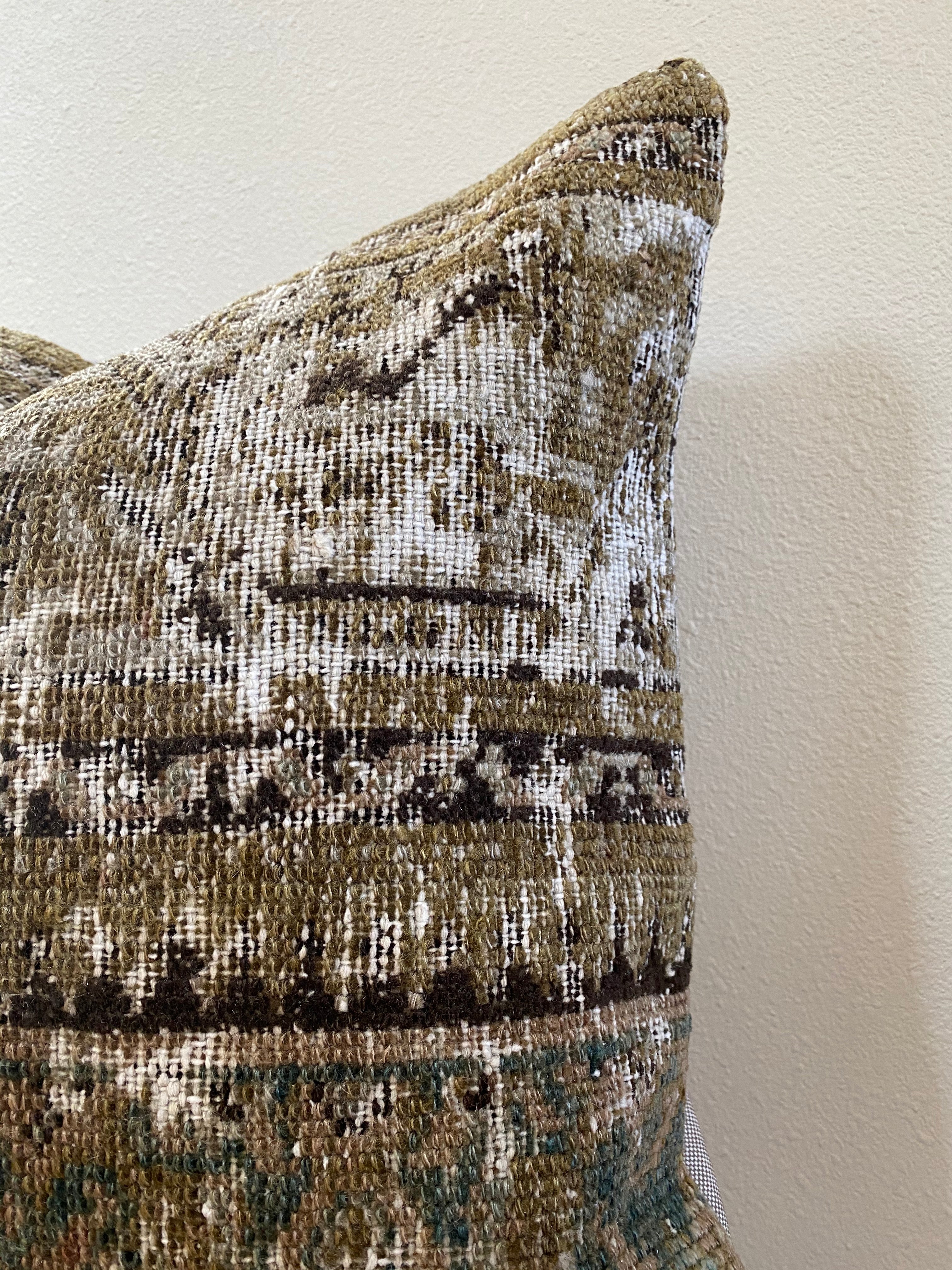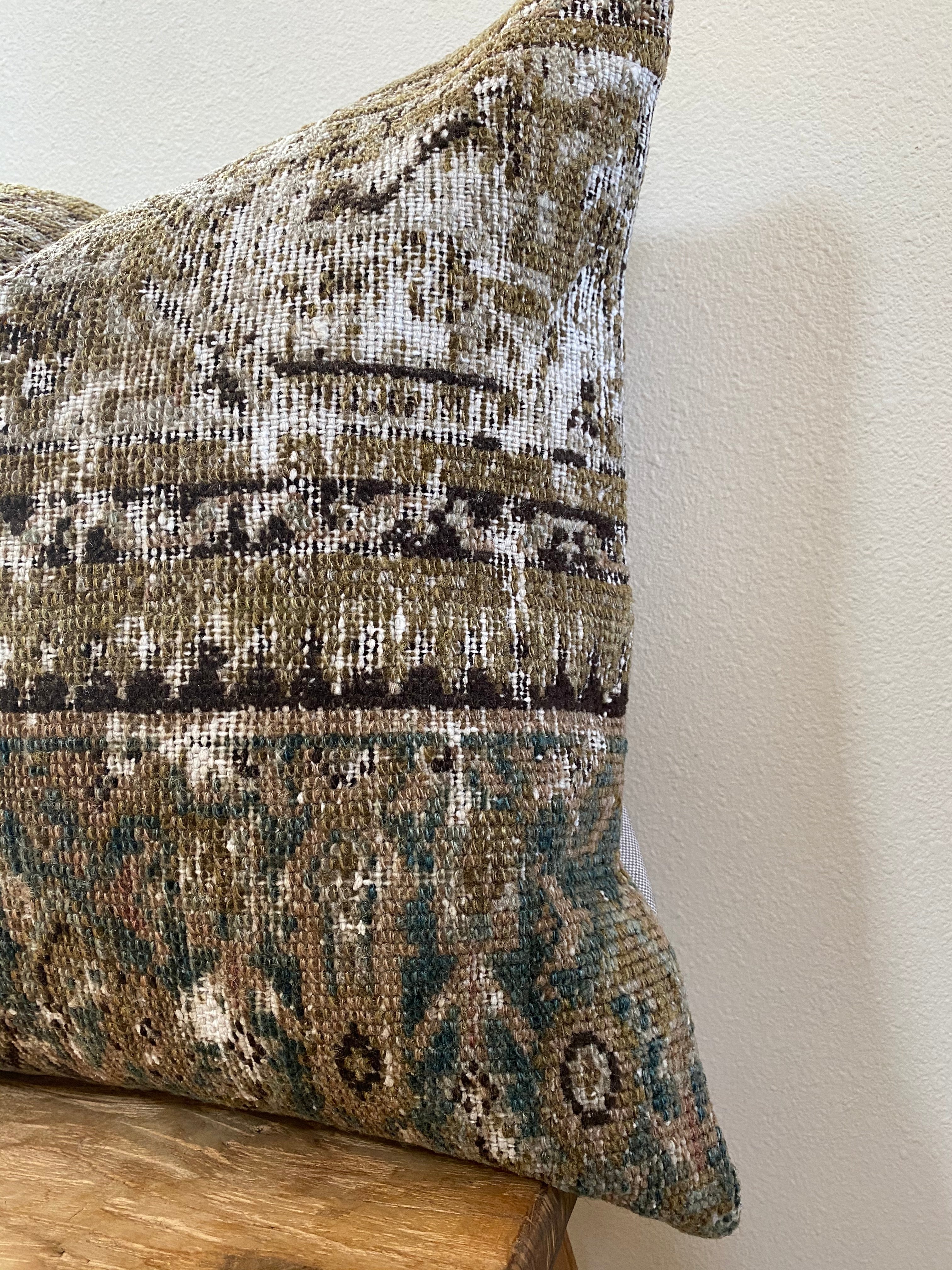 Photos were taken in natural daylight. Please note that the colors of the pillow cover may appear differently depending on the lighting in your home. Due to the nature of vintage rugs, there may be slight imperfections in its wear, dimensions, and color.