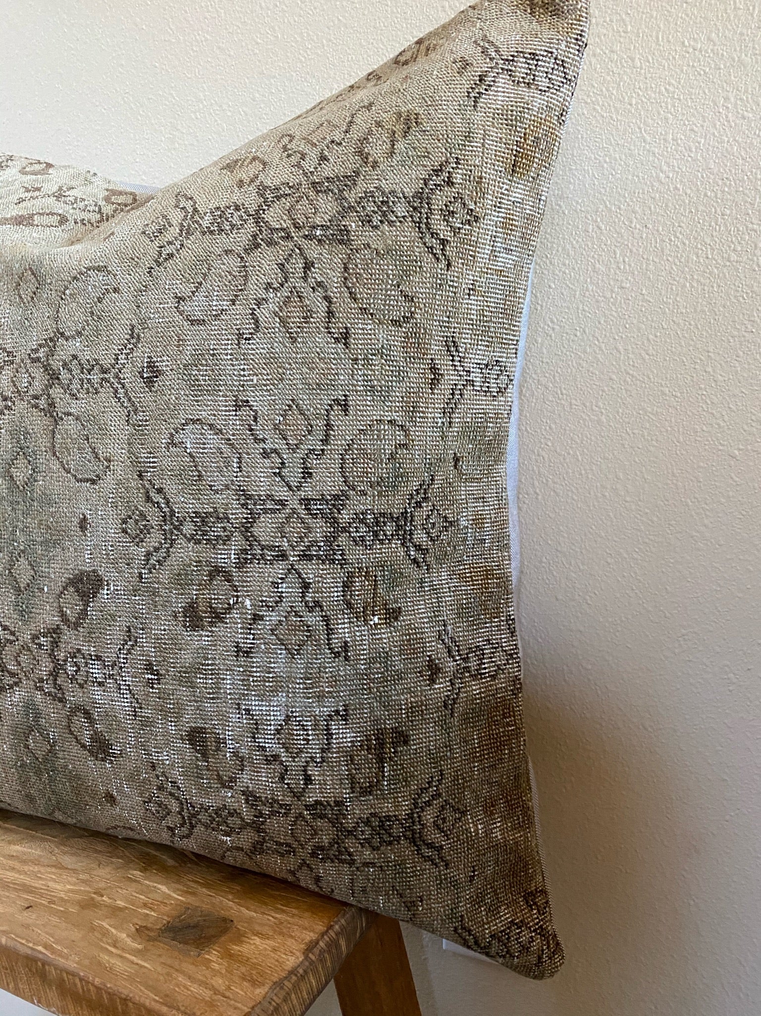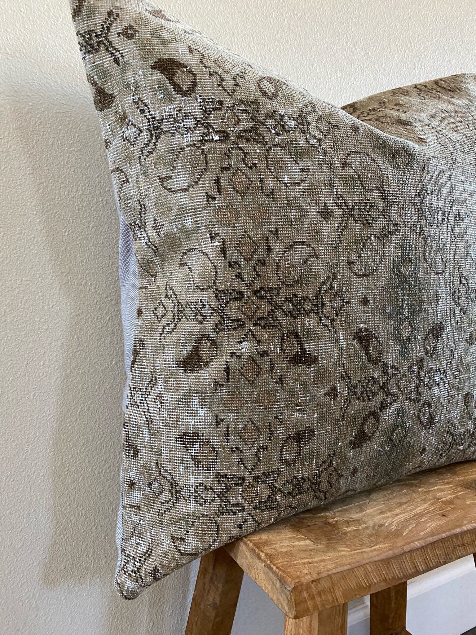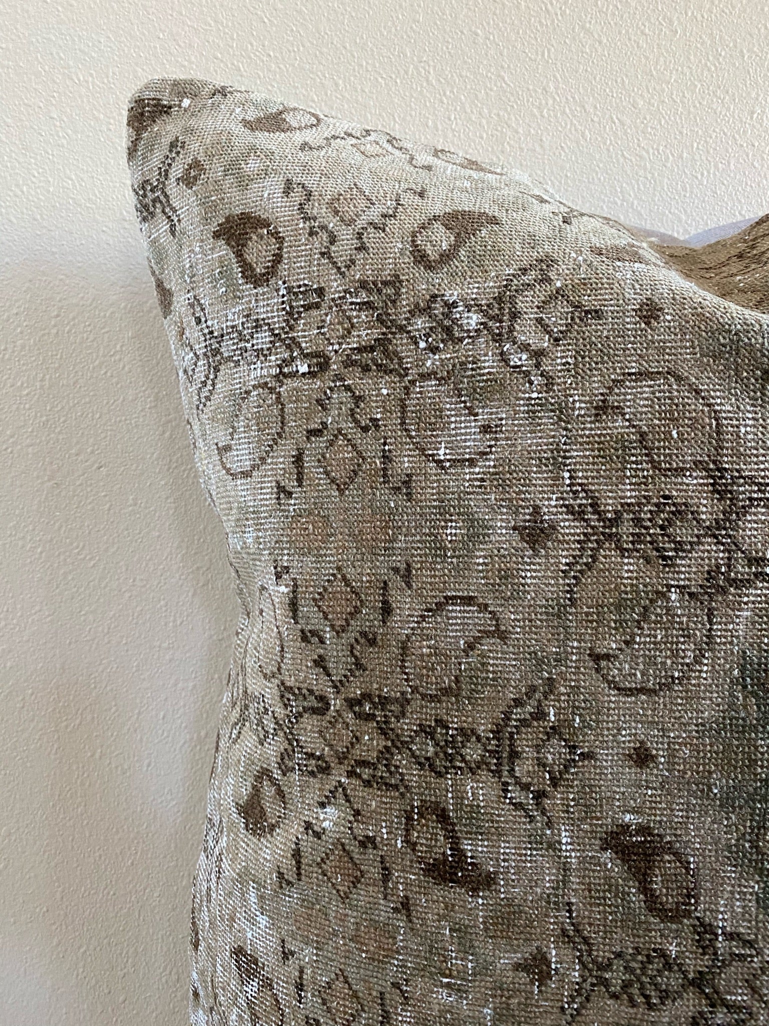 Photos were taken in natural daylight. Please note that the colors of the pillow cover may appear differently depending on the lighting in your home. Due to the nature of vintage rugs, there may be slight imperfections in its wear, dimensions, and color.