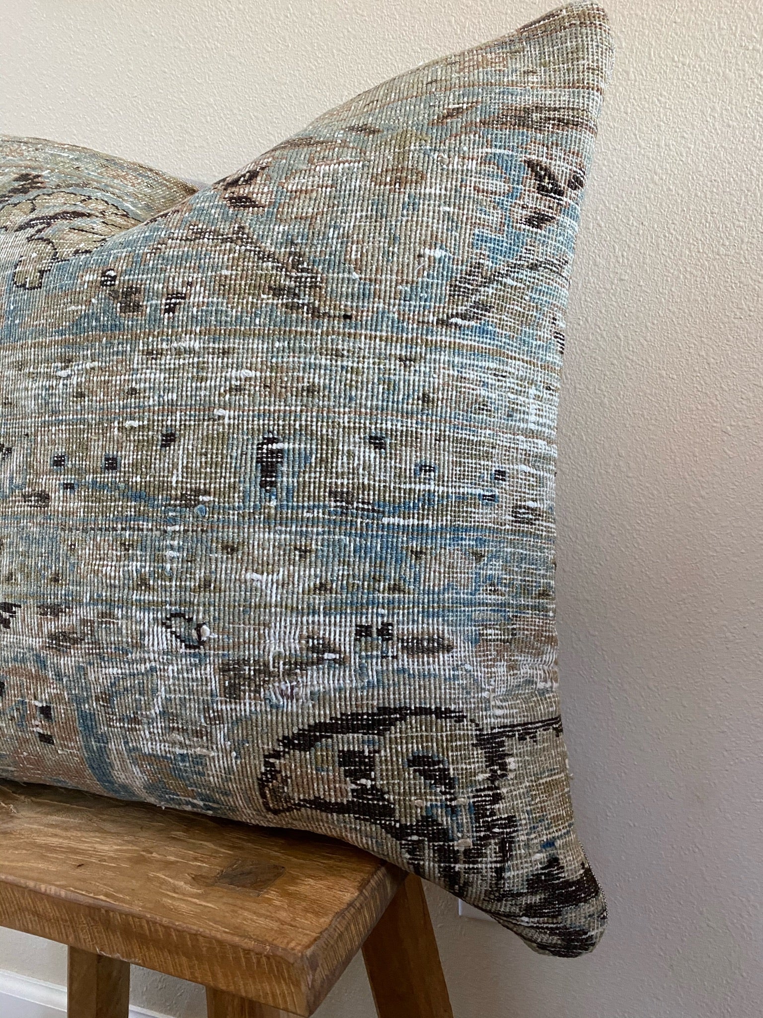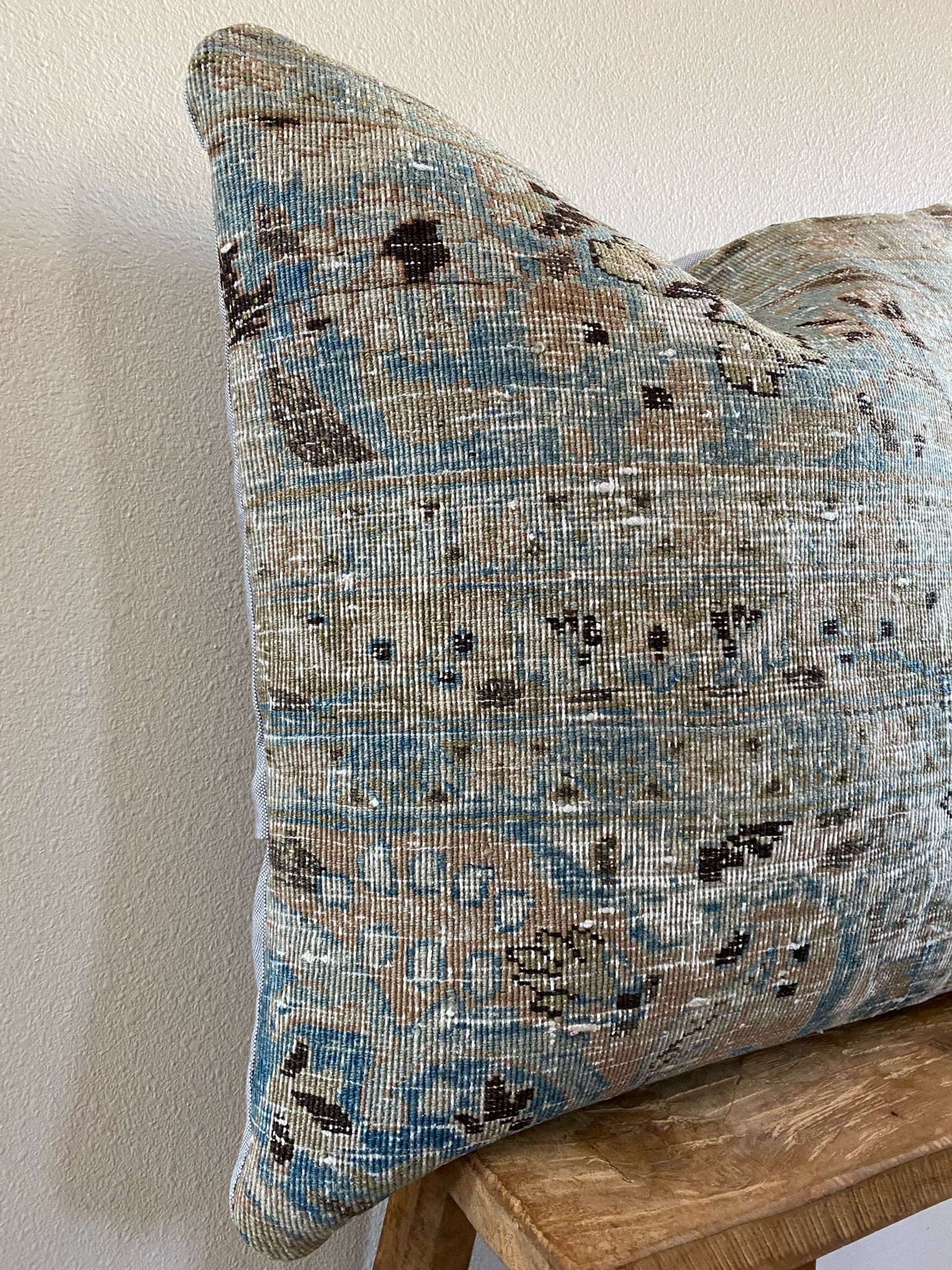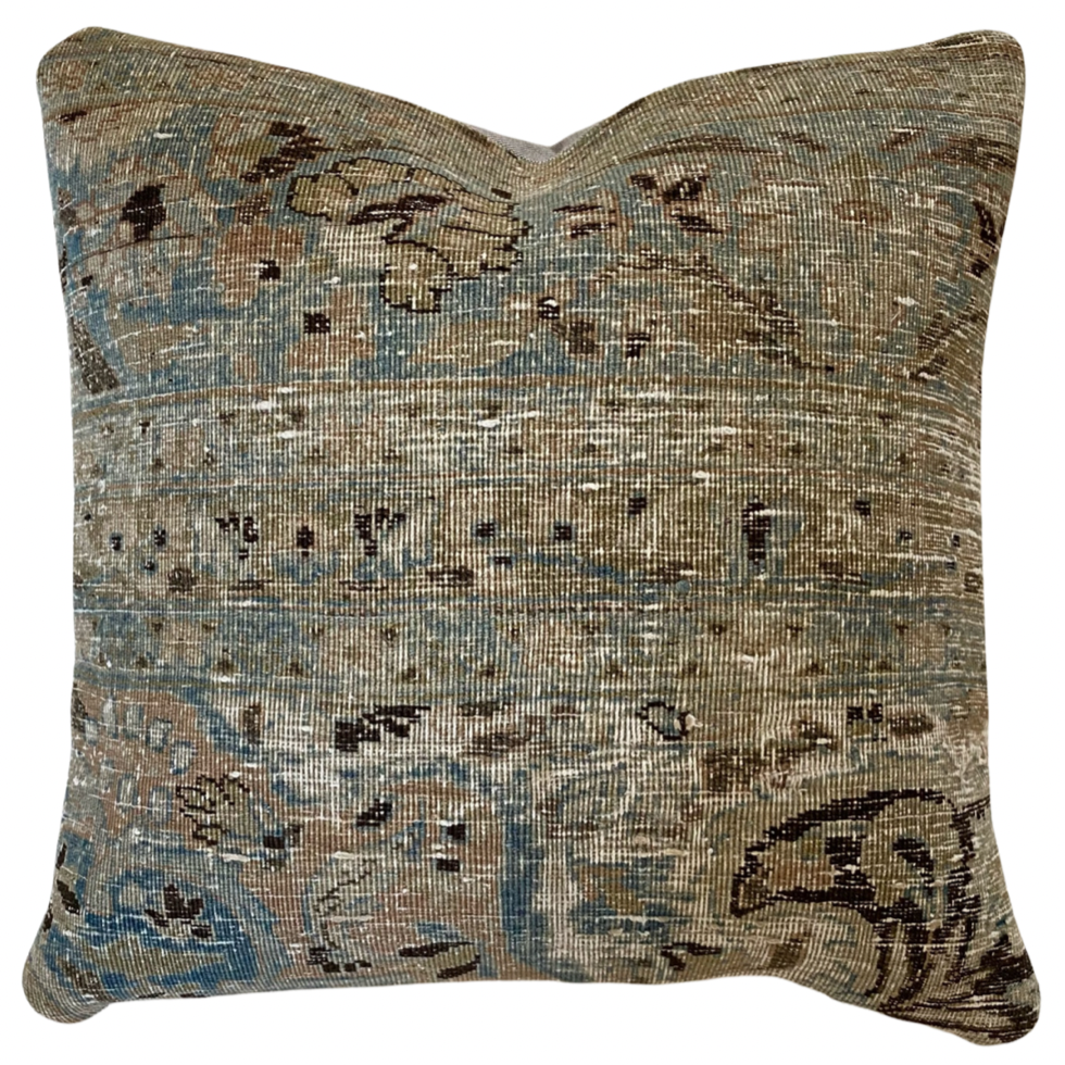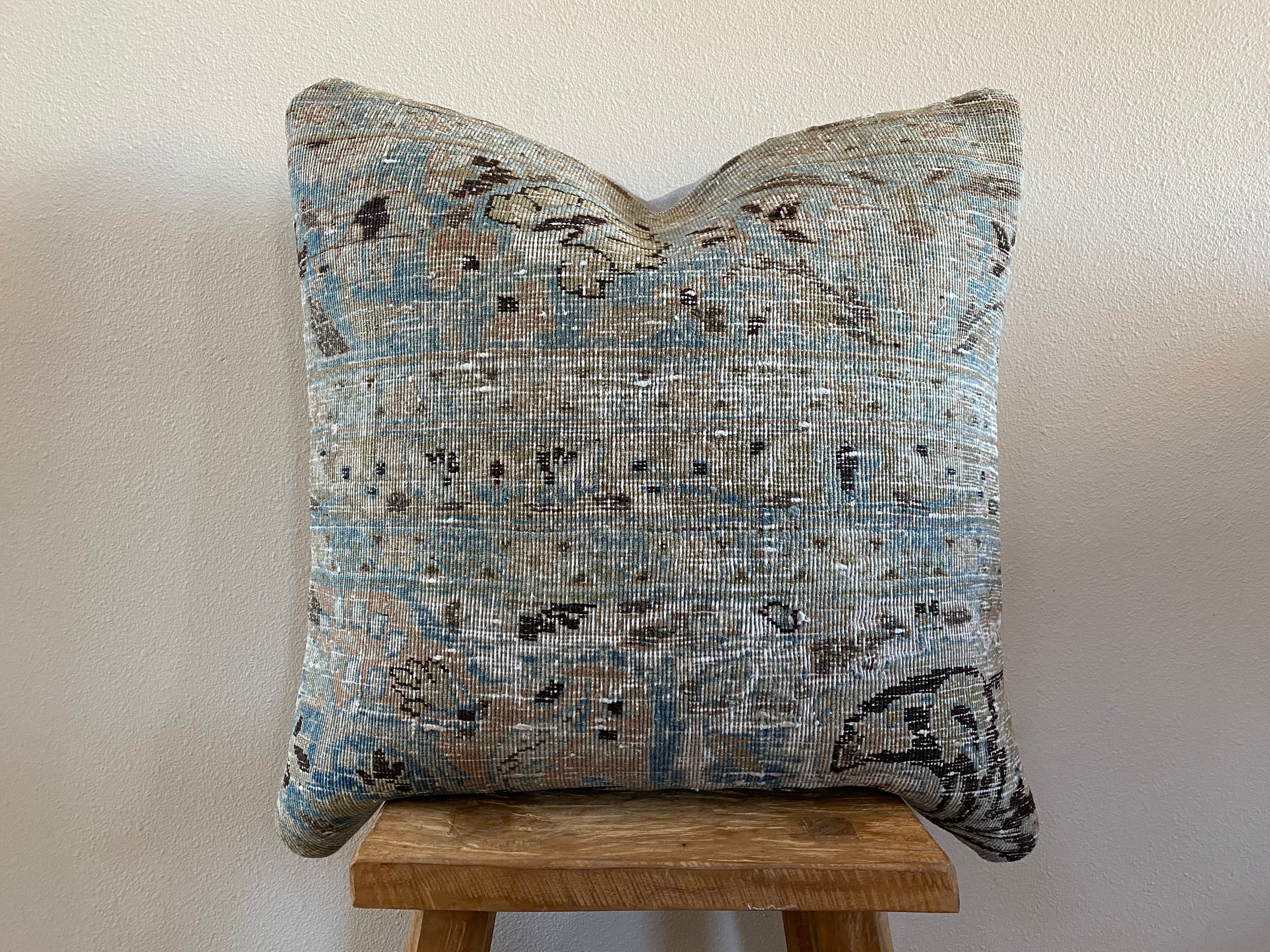 Front side of pillow is made from a vintage Persian rug that is 80-90 years old.