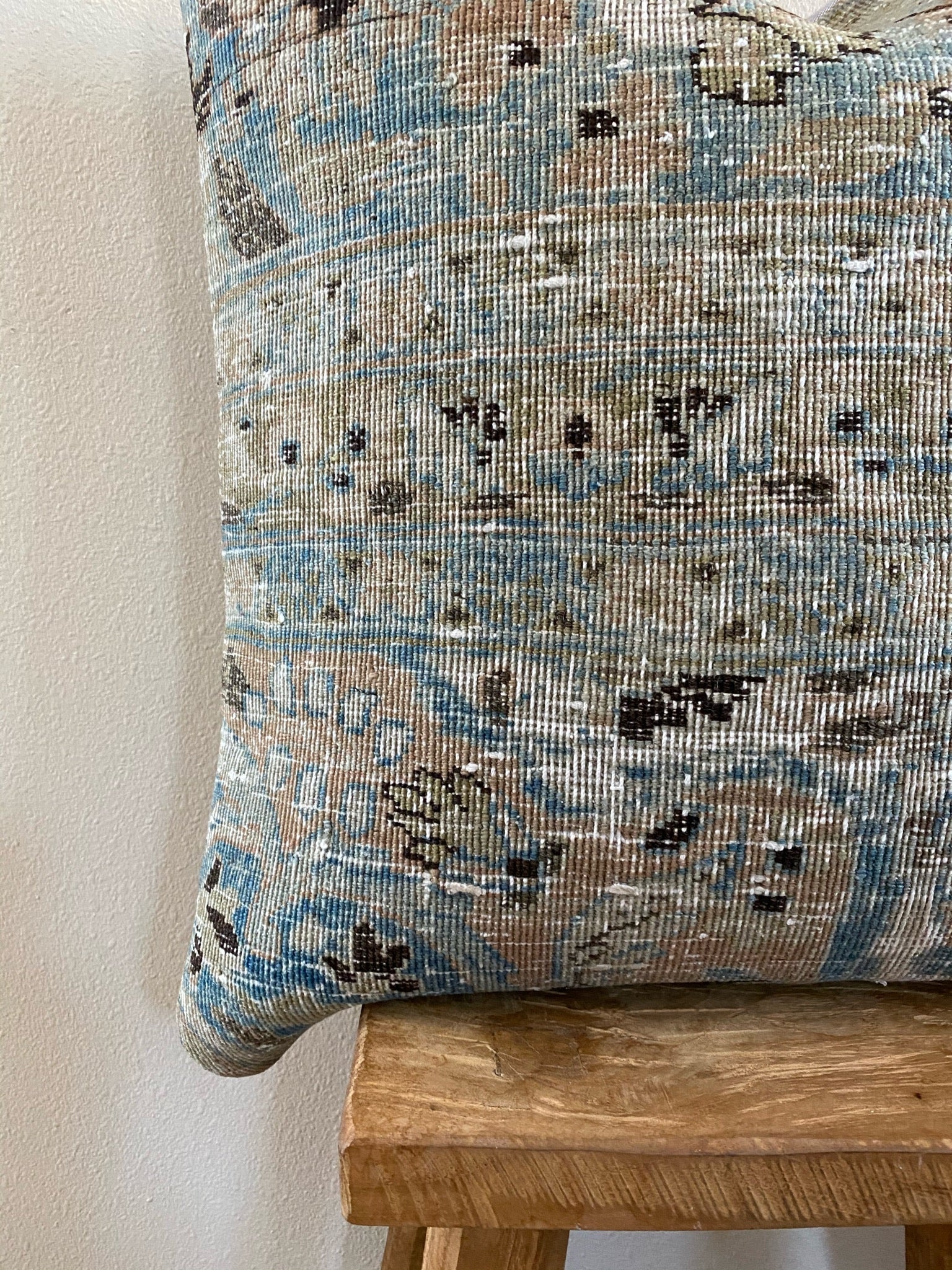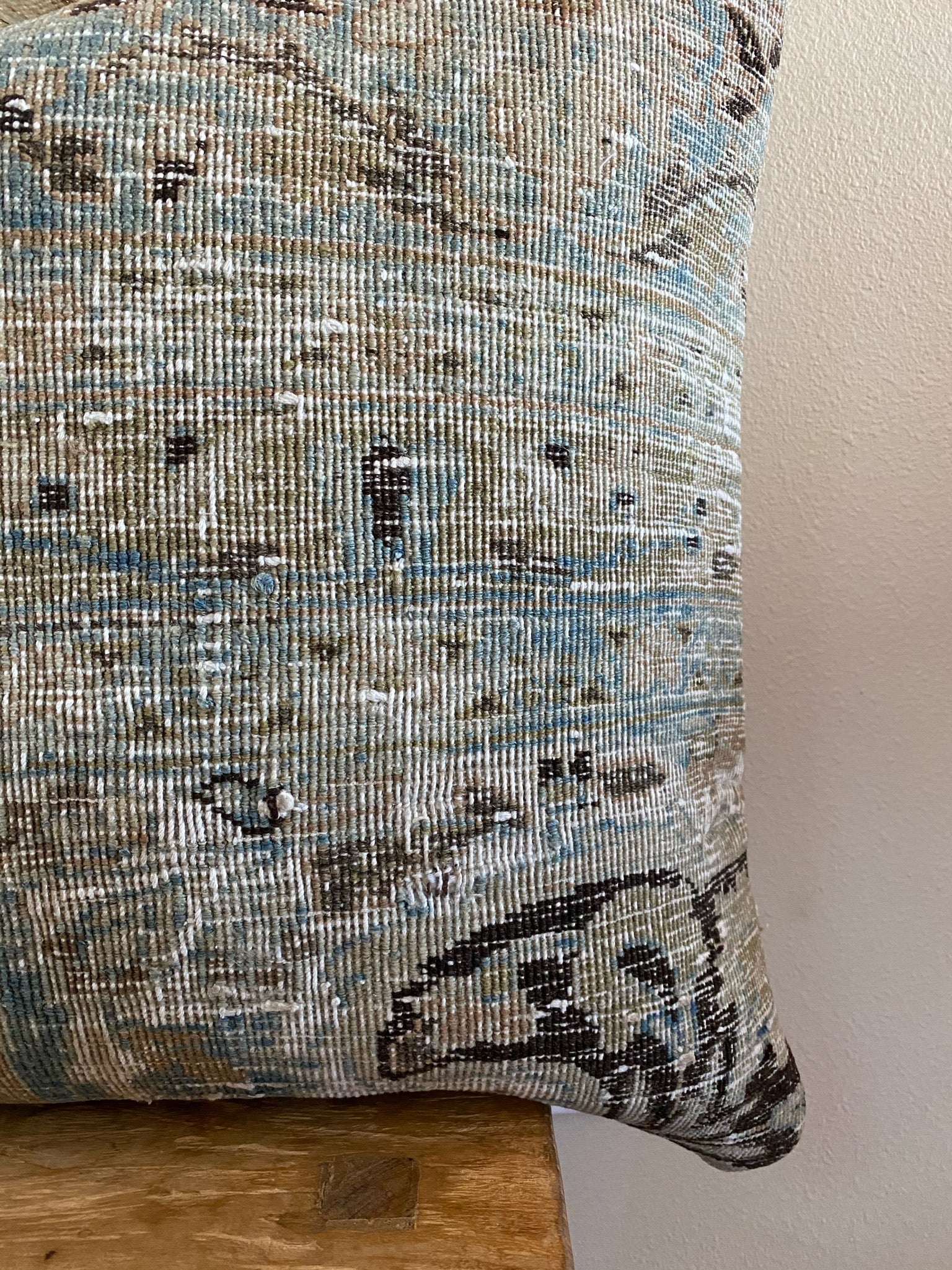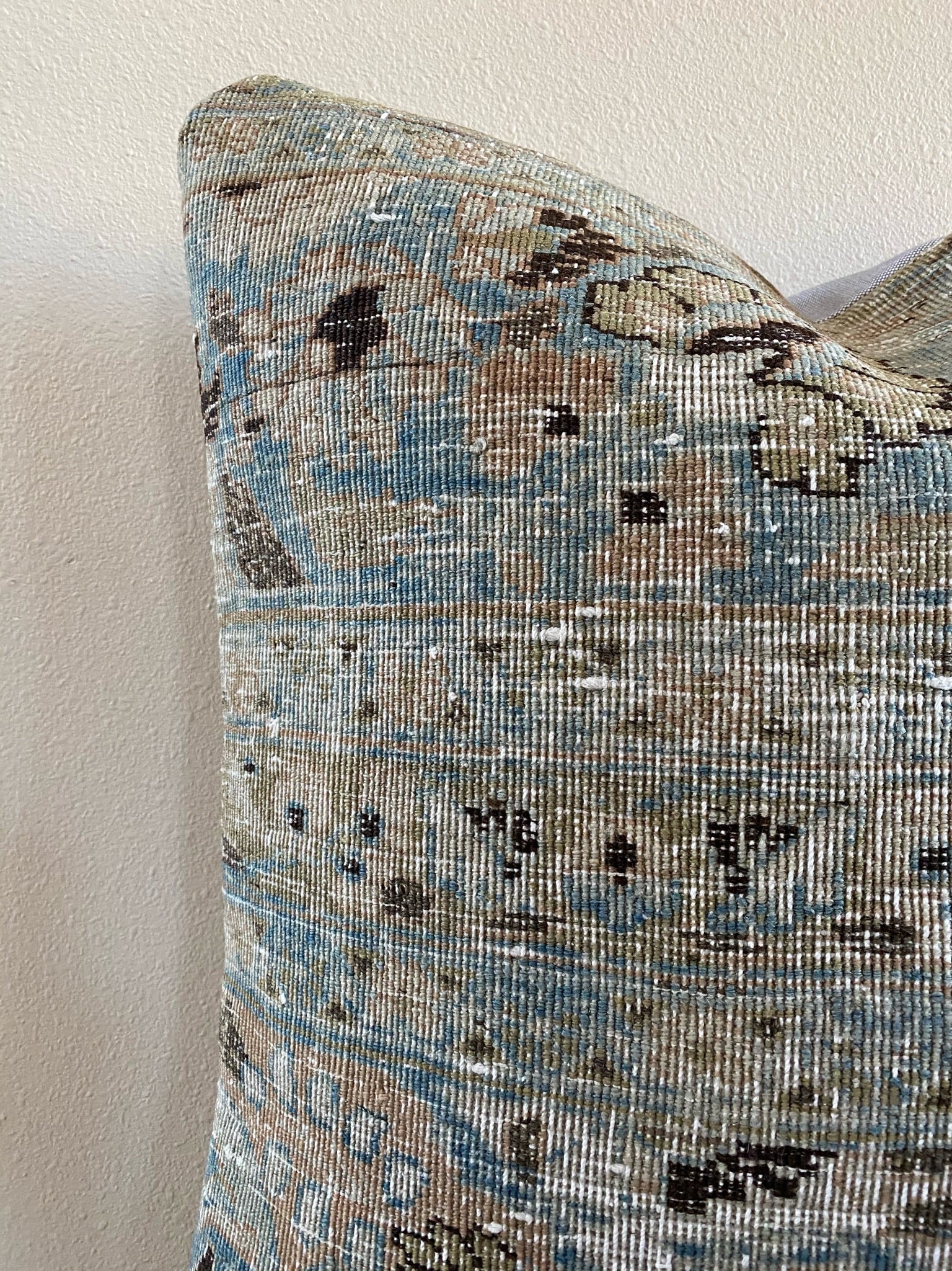 Front side of pillow is made from a vintage Persian rug that is 80-90 years old.