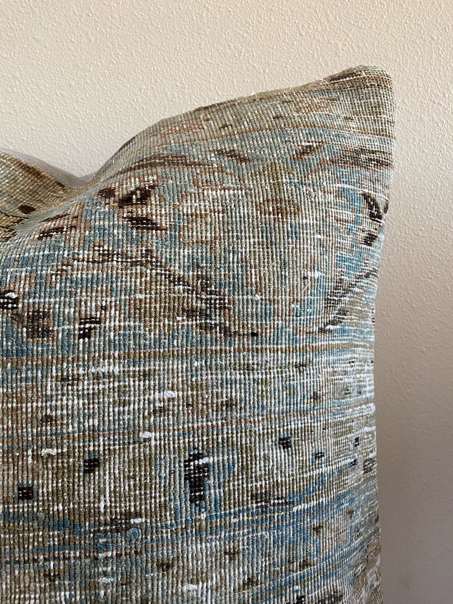 Photos were taken in natural daylight. Please note that the colors of the pillow cover may appear differently depending on the lighting in your home. Due to the nature of vintage rugs, there may be slight imperfections in its wear, dimensions, and color.